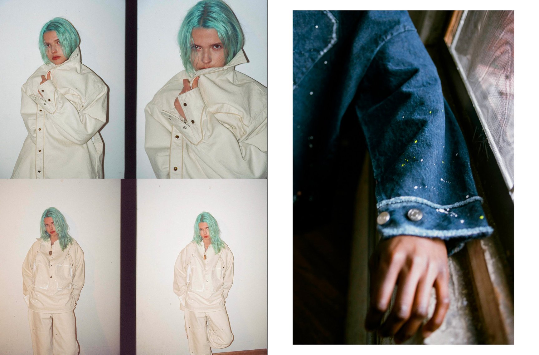 伝統的なセルビッチデニムの織機とリサイクルコットンを使用して織り上げられているため、セルビッチのディテールがふんだんに使われているのも特徴のひとつ。「一見ベーシックなデニムも、耳使いを意識したデザインや、着ていく事で色や表情が変わることも楽しんでもらえたら」とコメントしている。