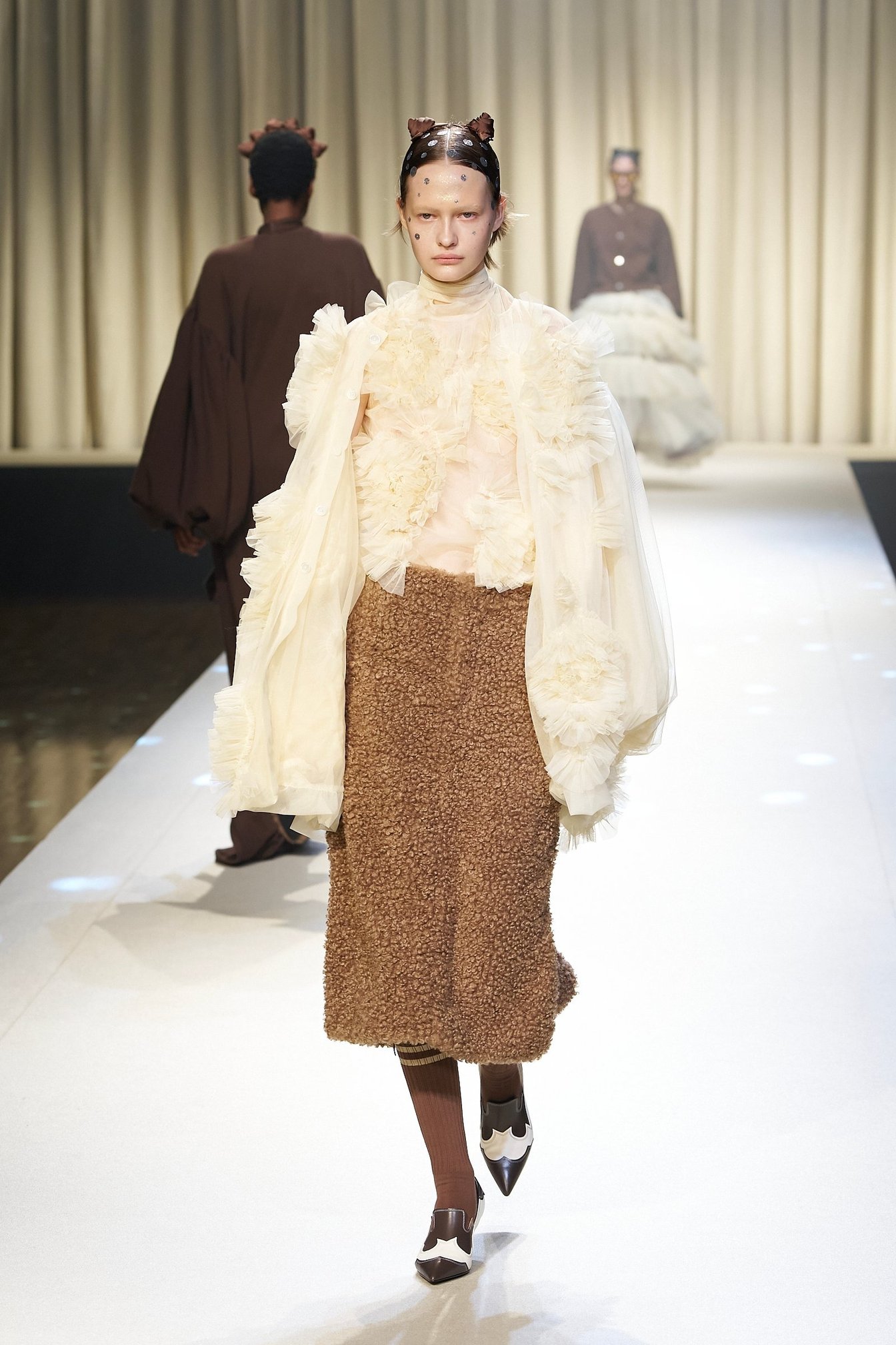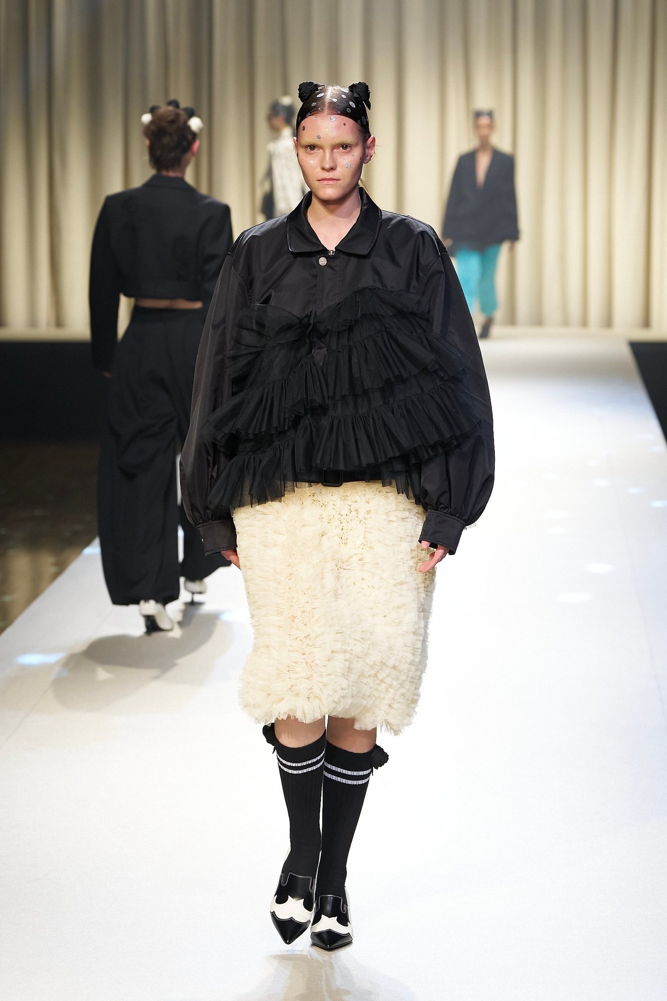 “秩序の花々の間からほのかにゆらめくカオス”をコンセプトに掲げ、コレクションを展開。デザイナーが敬愛するピアニストであるアルフレッド・ブレンデル(Alfred Brendel)が好んだという詩人ノヴァーリス(Novalis)の言葉をヒントにコンセプトを設定。このようなコンセプトを掲げた理由について「一見すると派手なことをしているブランドと思われがちだが、洋服として成立させることを特に意識している。一着の洋服としてデザインやパターンが成り立っていることを前提に、その上で輝くものを表現したいという思いから、このコンセプトにした」と説明。デザイナー自ら全てのアイテムのパターンを描き、製図に落とし込み、工場に依頼する。アバンギャルドでカオスに見える洋服の裏側には、地道でありながら秩序に基づいた工程が存在しており、「ファッションはアートではない」という川久保玲の思想にも由来しているという。