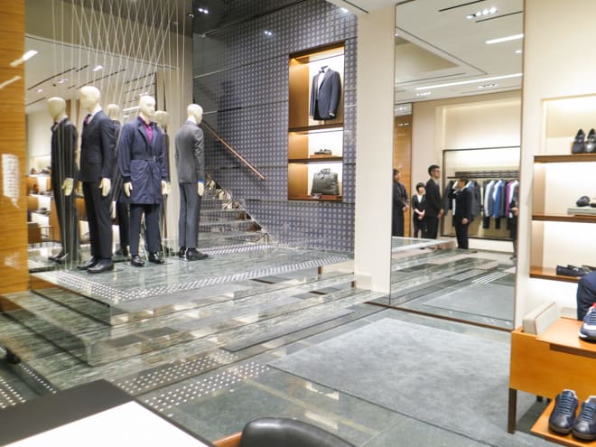 国内でアウトレット・ポップアップ含め28店舗を展開。旗艦店は、アジア最大となるグローバルストアである銀座店。ミラノに次ぐ店舗面積を誇る4層構造で、スーツからアクセサリーまでフルラインを揃える。4階には同店限定ファブリックも取り扱うオーダースペースも完備。
