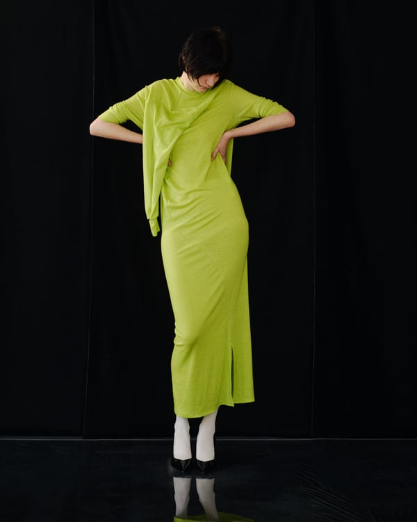 2014年に青木明子が立ち上げたウィメンズブランド。ファッションを生きる行為そのものとして捉え、それを纏う人の生き方や姿勢が感じられる装いを提案している。2020年からは、オンタイムで販売する新レーベル「ヌーン(noon)」をスタート。アキコアオキの服に袖を通したことがない人や、ファッションが身近ではない人も楽しめるよう、オンタイムで着用できるアイテムを販売している。