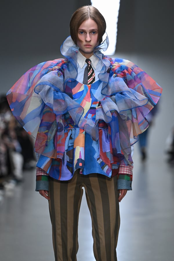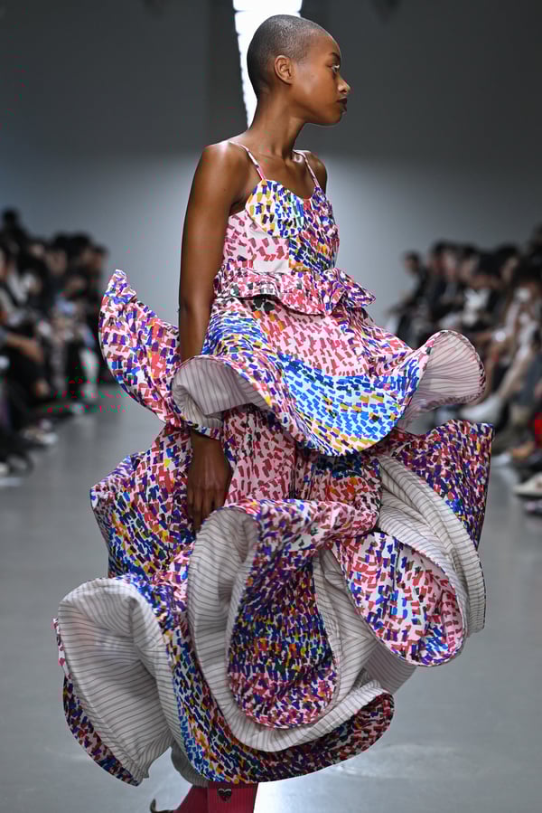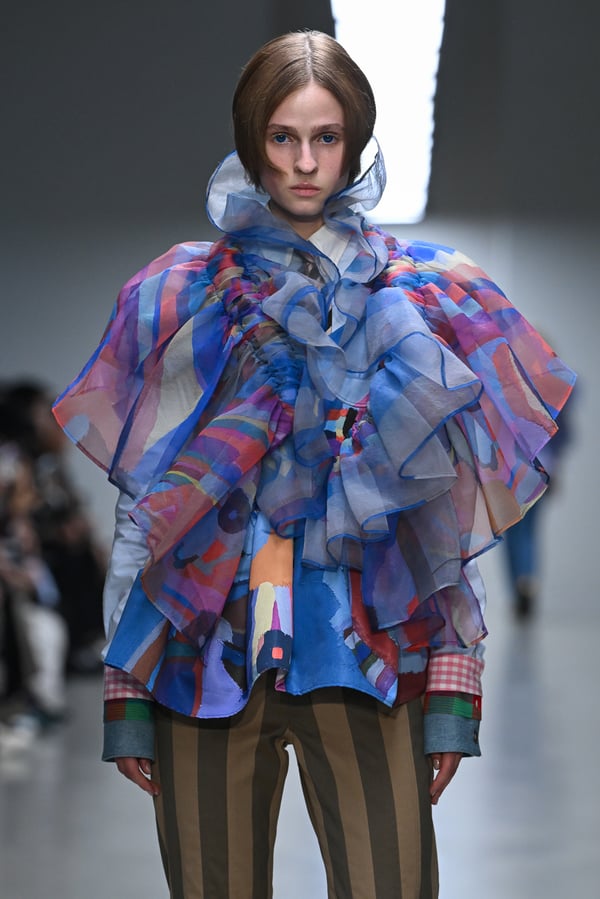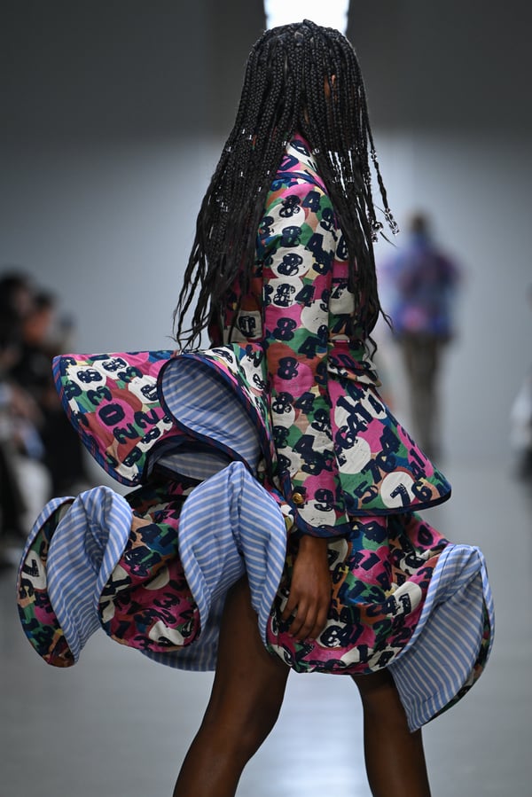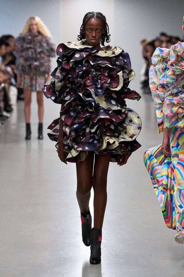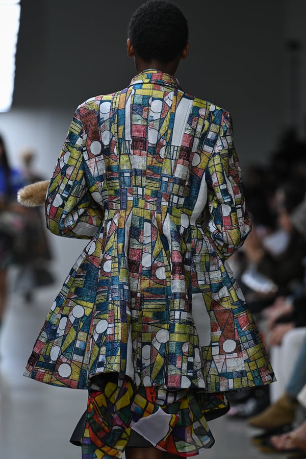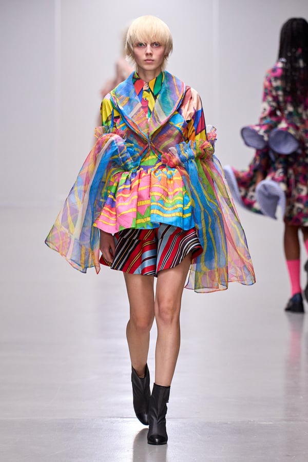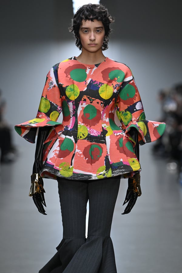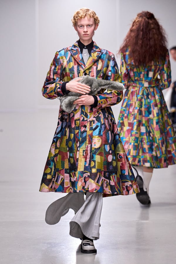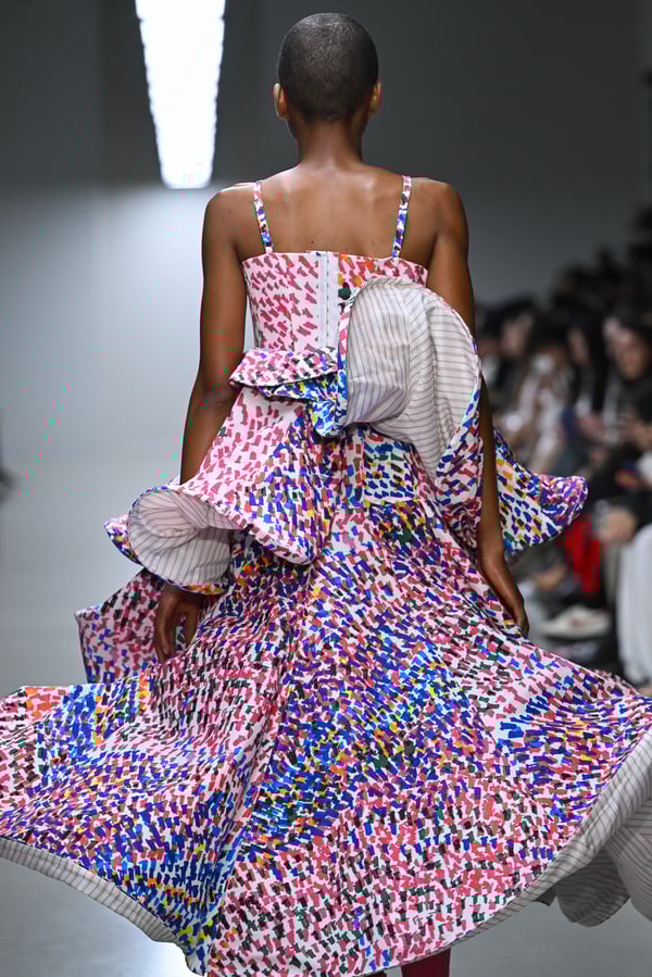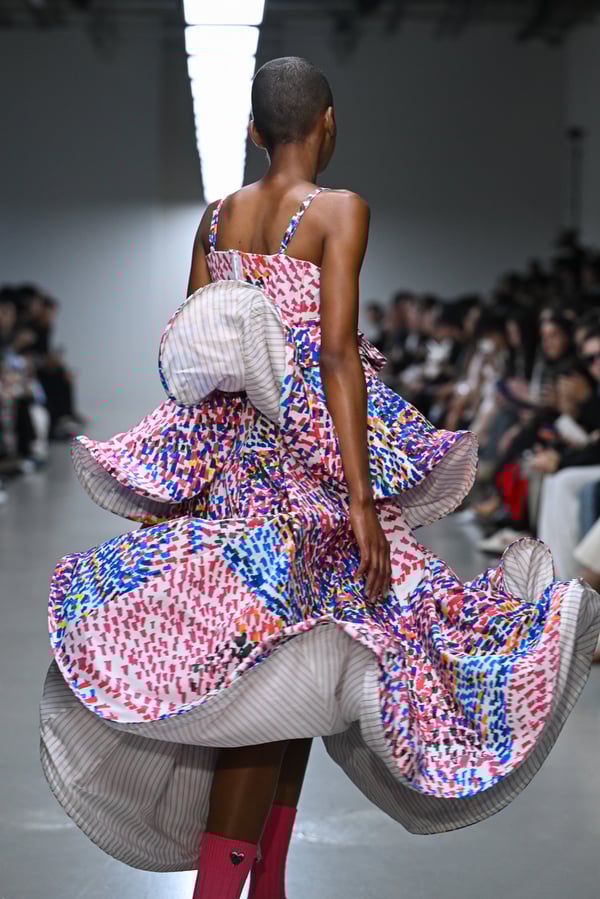 コレクションでは、「ヘラルボニー(HERALBONY)」の契約作家18名によるアートとコラボレーション。KYOCERAの持続可能な繊維プリンターFOREARTHによって鮮やかにプリントされた作品が、大胆なボリュームを持つコレクションピースを彩った。