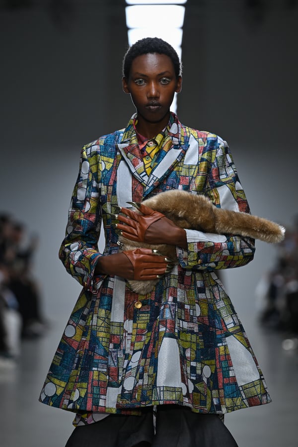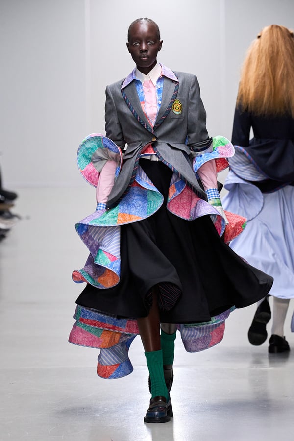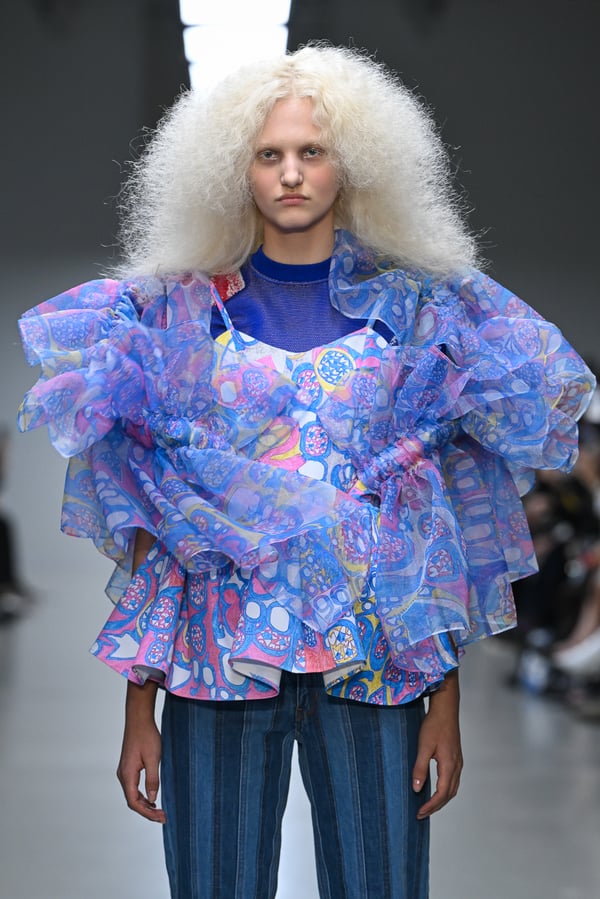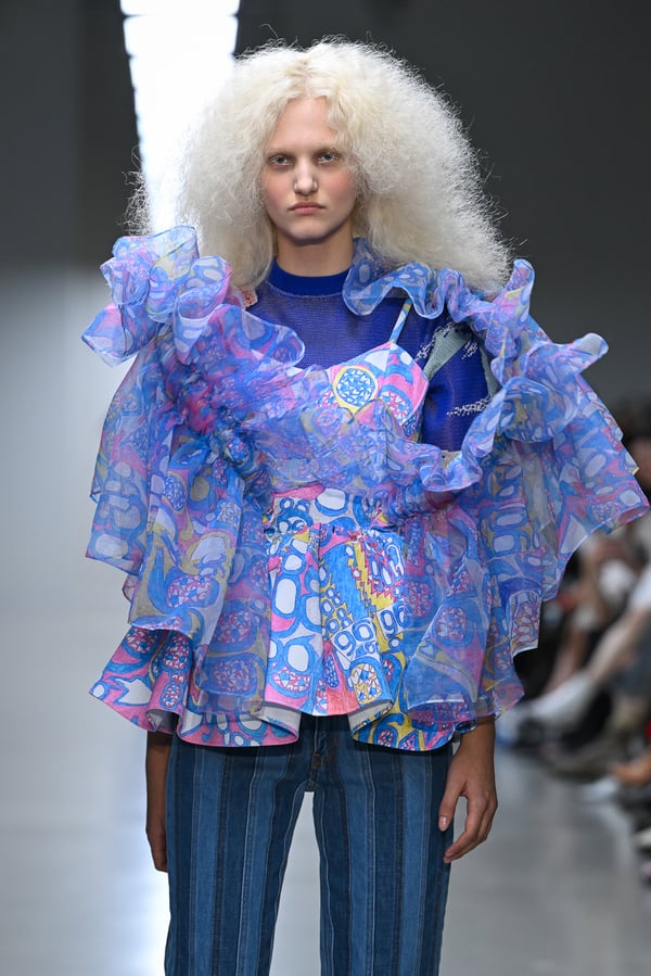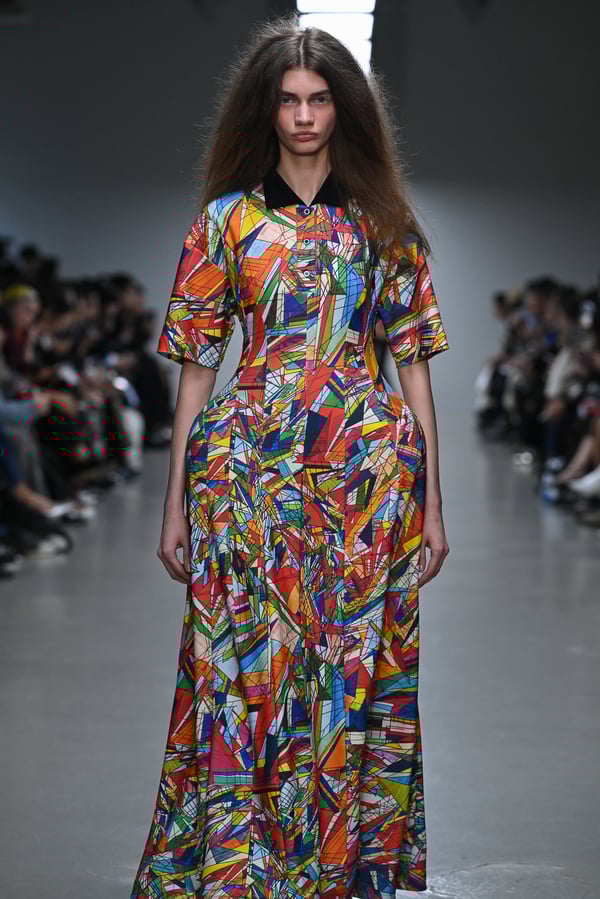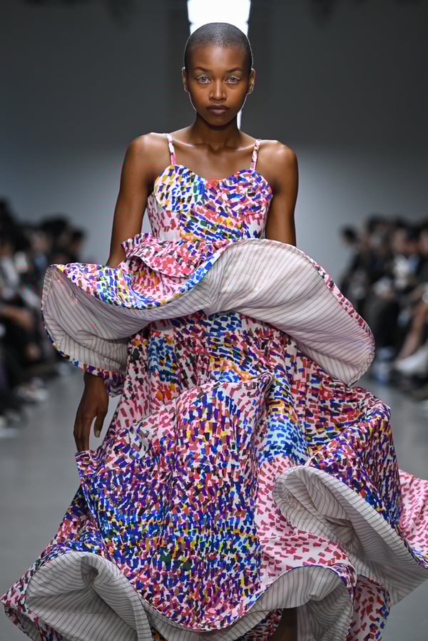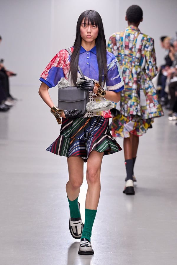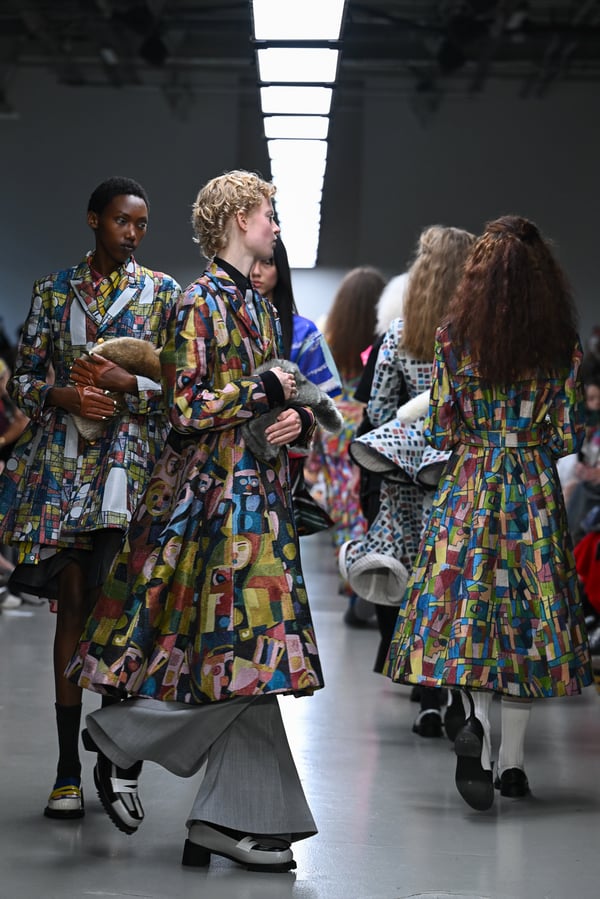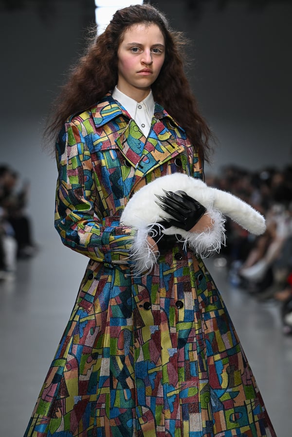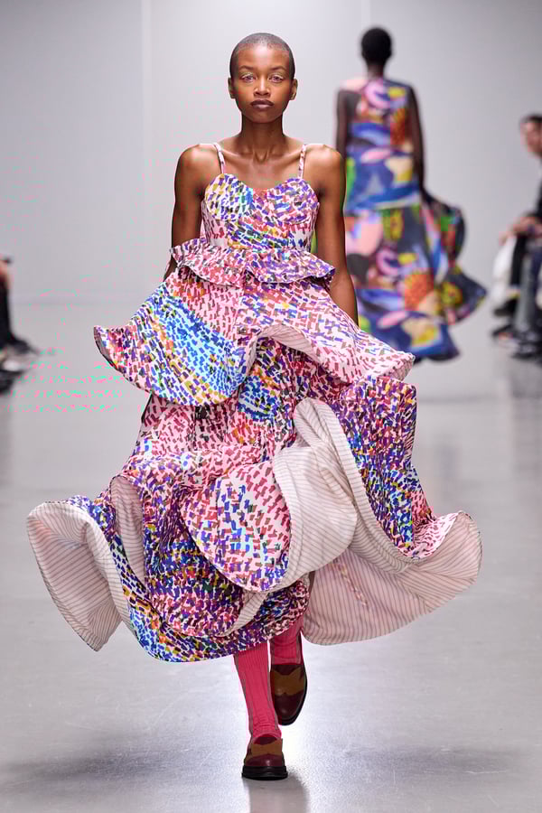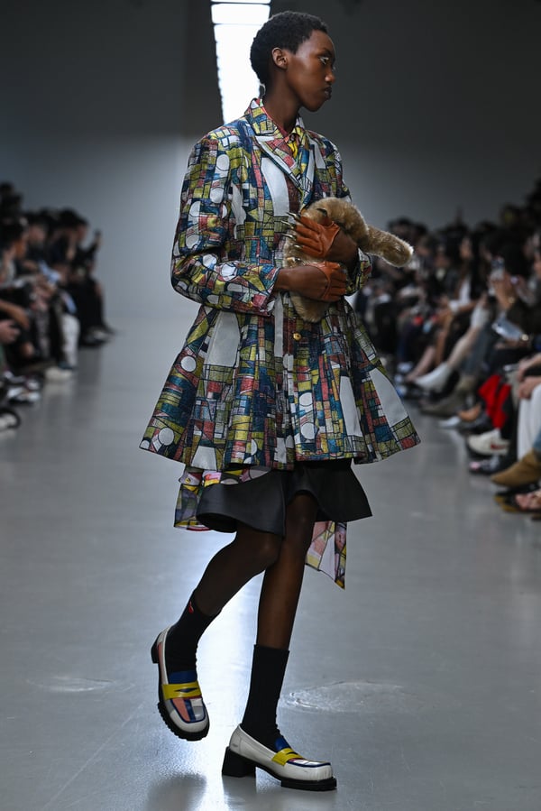 コレクションでは、「ヘラルボニー(HERALBONY)」の契約作家18名によるアートとコラボレーション。KYOCERAの持続可能な繊維プリンターFOREARTHによって鮮やかにプリントされた作品が、大胆なボリュームを持つコレクションピースを彩った。