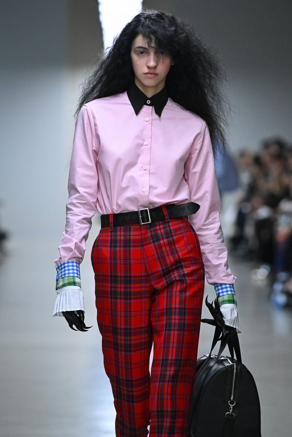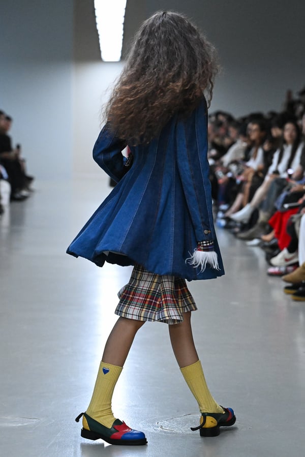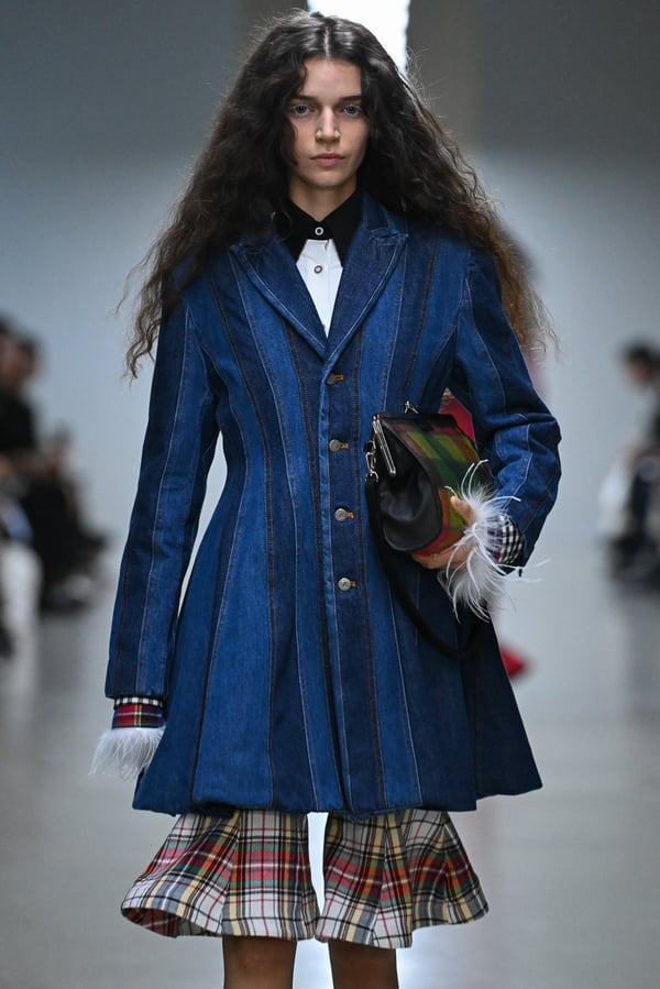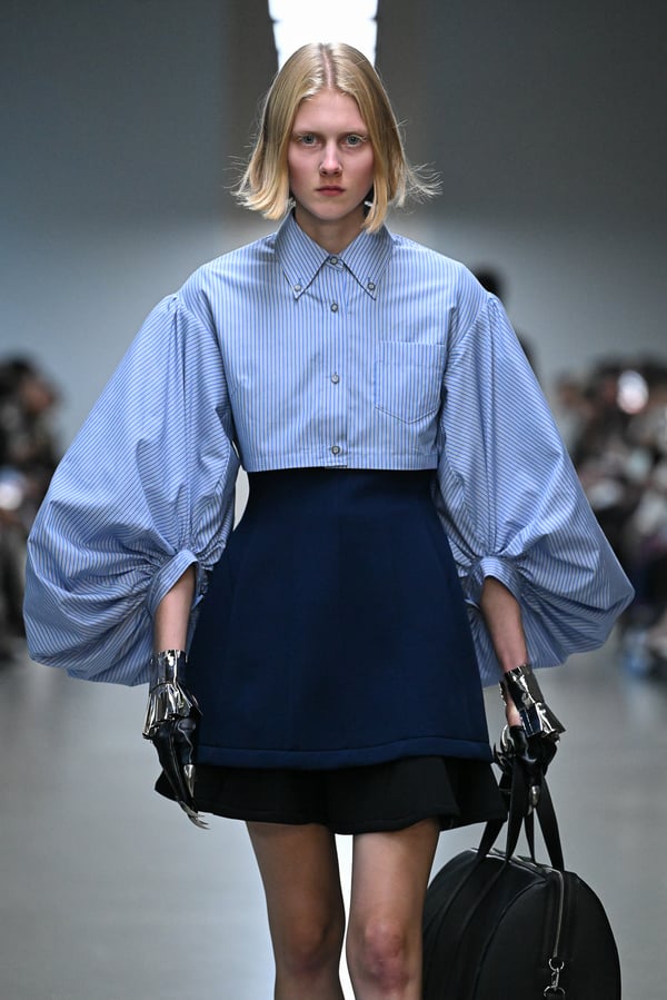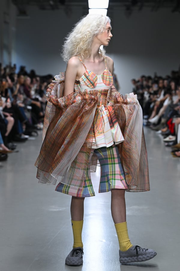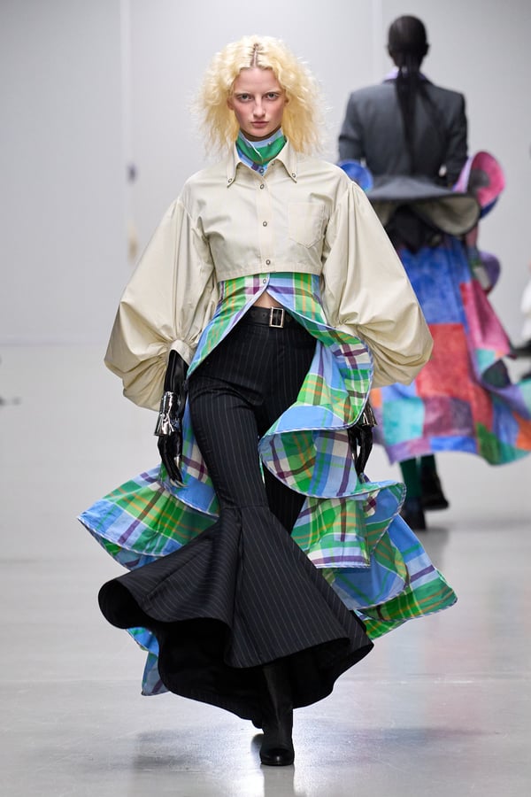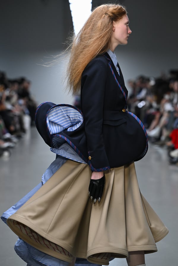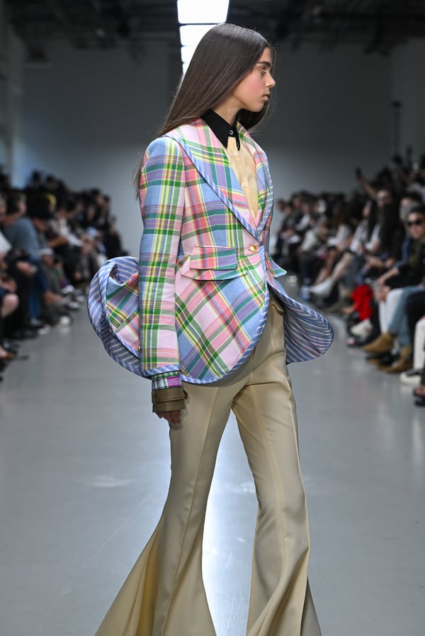 デザインにも生命のテーマを表現。フリルが鼓動するかのように揺れ動き、ラッフルやスカートのヘムラインは有機的な動きを見せた。クッション型セラピーロボットQooboを制作しているYukai Engineering Inc.と共同開発されたバッグは、撫でるとファーの尻尾が揺れる。服に命を吹き込み、生命の尊さと多様性をたたえた。