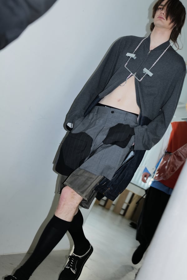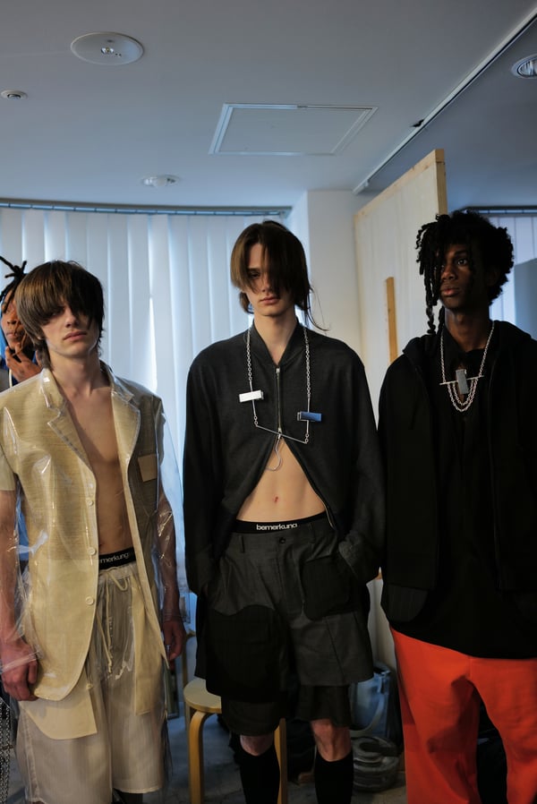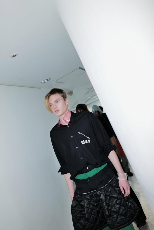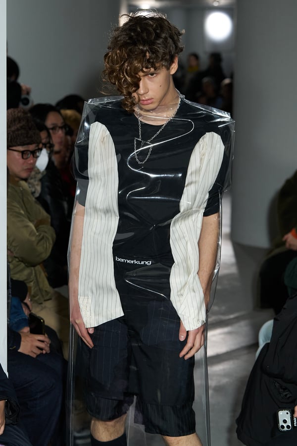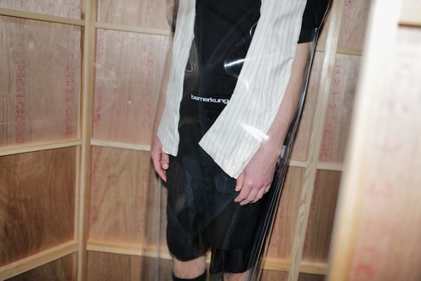 デザイナーの池田は、「コム デ ギャルソン オム プリュス(COMME des GARÇONS HOMME PLUS)」で約8年間パタンナーとして経験を積み、2025年秋冬シーズンに自身のブランドであるべメルクングをスタート。従来の服作りの手法を踏襲せず、「衣服のパターンの構造、機能性を再解釈して作業的にデザインしていく」をテーマに服作りを行っている。デビューコレクションでは大量生産品の「Tシャツ」を、セカンドコレクションでは古着や既製品の「シャツ」を解体・再構築するというアプローチを採用したクリエイションを展開してきた。