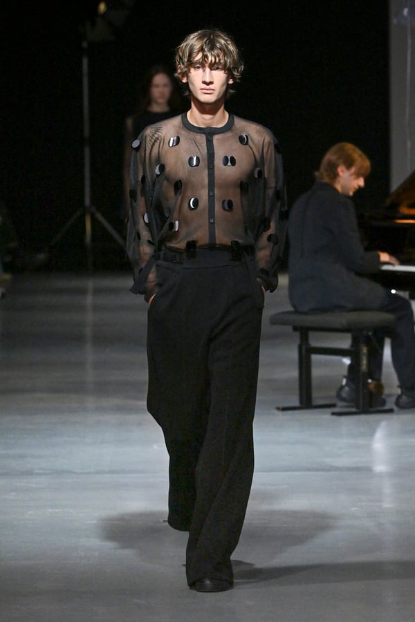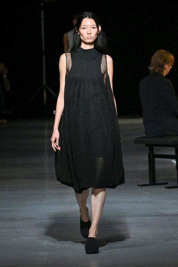 高橋悠介が手掛ける「シーエフシーエル(CFCL)」が、パリ3区のLa Gaîté LyriqueでVOL.11コレクションを発表した。ショーは、室内楽アンサンブルTLF Trioの生演奏が演出。道具としての衣服のあり方を刷新し、透明感と柔らかさ、そしてマチュアな女性のリアリティを重ねたという。