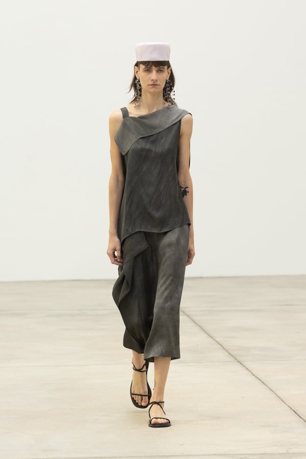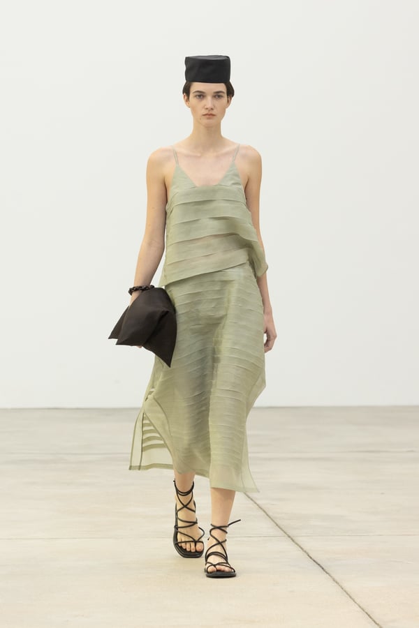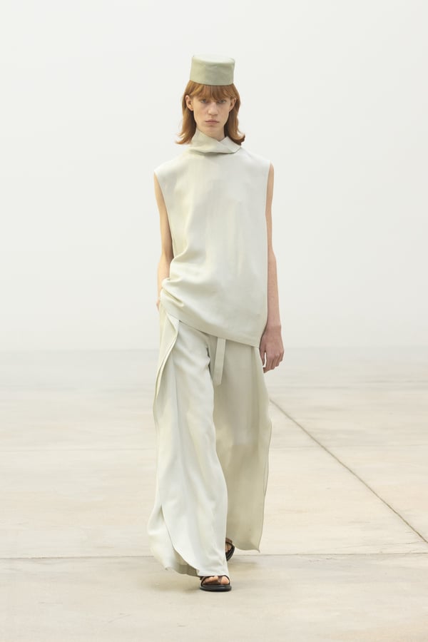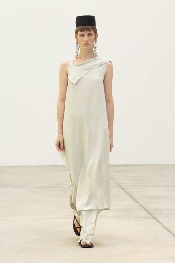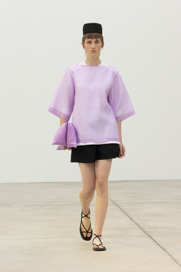 「クリスチャン ワイナンツ(Christian Wijnants)」の2026年春夏コレクションは、マリ出身の黒人写真家Seydou Keitaのポートレイト作品「The Gentlemen of Bamako」から着想を得た。同氏の写真に見られる、格式ある佇まいと自然体の優雅さの両立をコレクション全体で表現したという。オーガンザや高密度に織られたタイプライターコットンは彫刻的なシルエットに仕立てられ、ヴィスコースのドレスやシャツ、トラウザーと重ね合わせることで精緻さと軽やかさを演出。シャツやケープ風ドレス、オーバーサイズTシャツにキルティングのショーツを組み合わせてボーイッシュな要素とフェミニンさを共存させた。