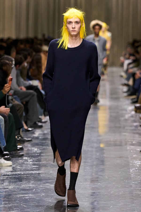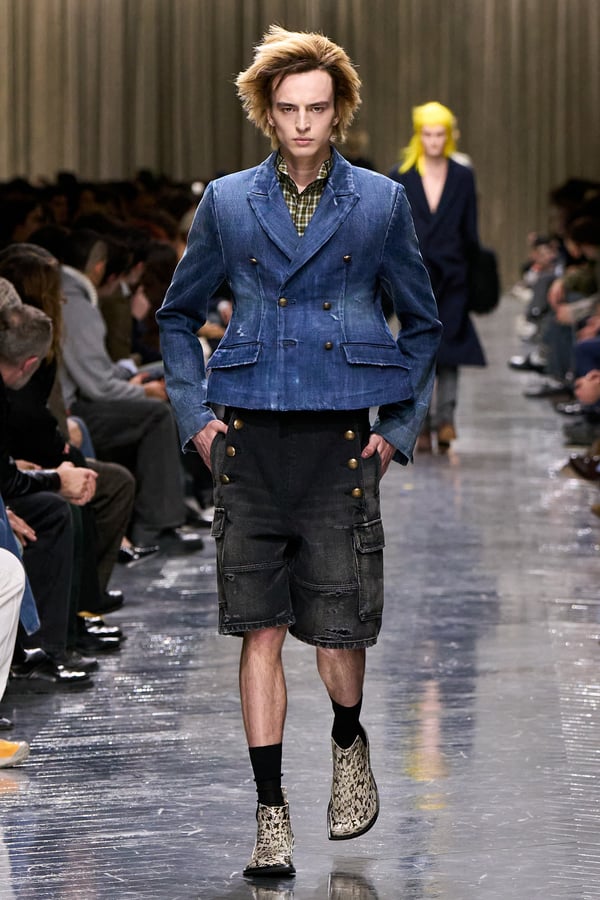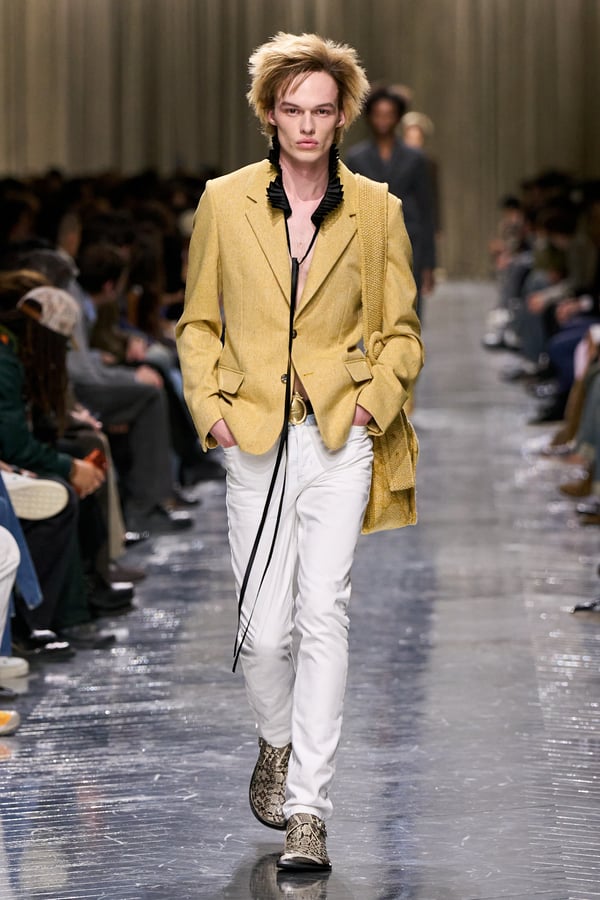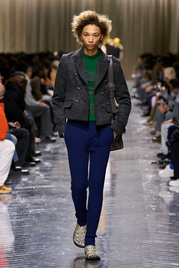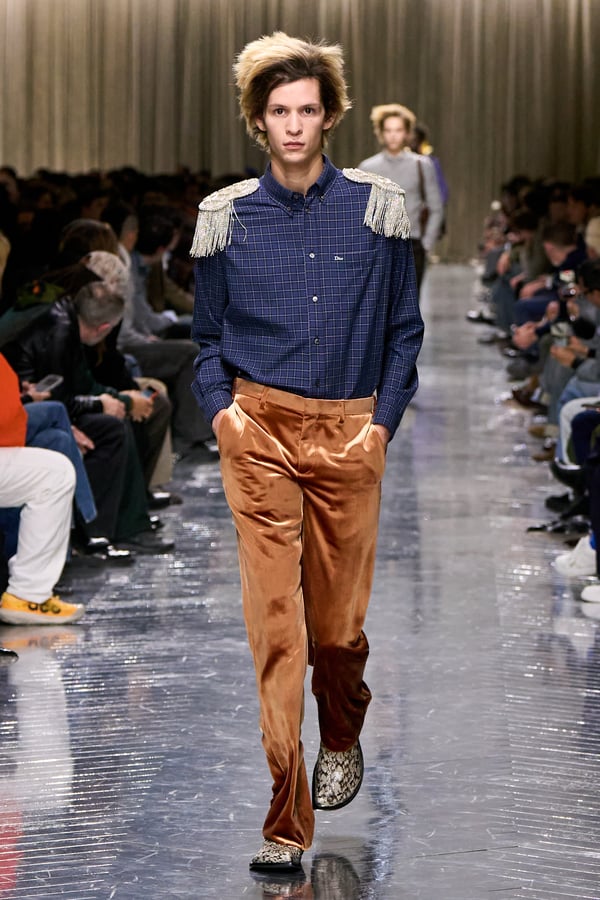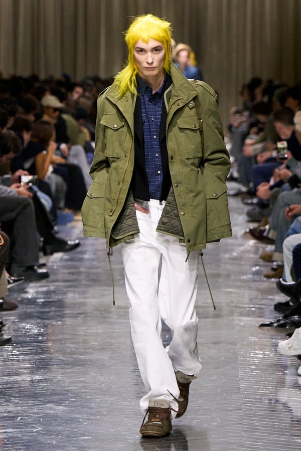 ラグジュアリー・ブランド「ディオール(DIOR)」のメンズウエアラインは、2001-02年秋冬に始動。当時「イブ・サンローラン」でメンズウエアのデザイナーだったエディ・スリマンがアーティスティック・ディレクターを務め、カリスマ的なヒットを飛ばした。メインアイテムは、ロックに着想した華奢なジャケットやスーパースキニーデニムなど。今でこそ主流となった「ノージェンダースタイル」を先駆けて打ち出し、熱狂的なファンを獲得した。2007年、エディが退任しクリス・ヴァン・アッシュがアーティスティック・ディレクターに就任。2019年春夏からは、キム・ジョーンズが手がけている。同年、ブランド名をウィメンズと同じ「ディオール」に統合した。