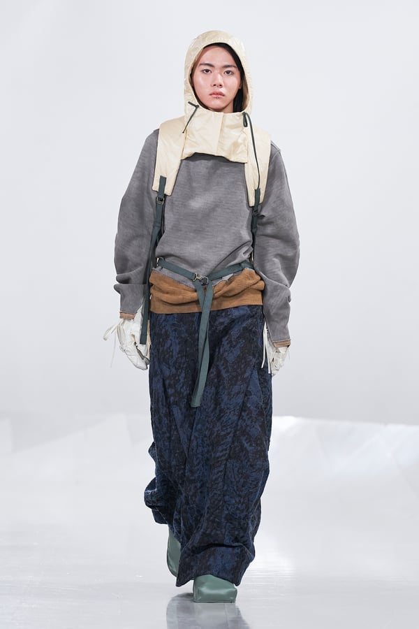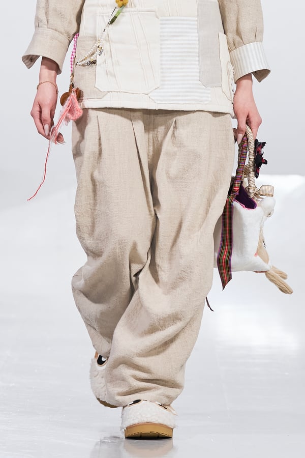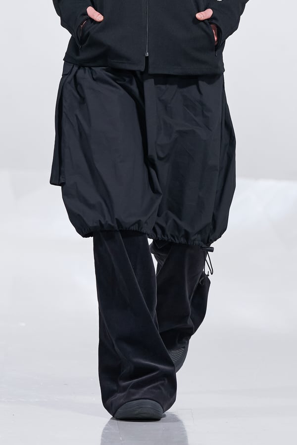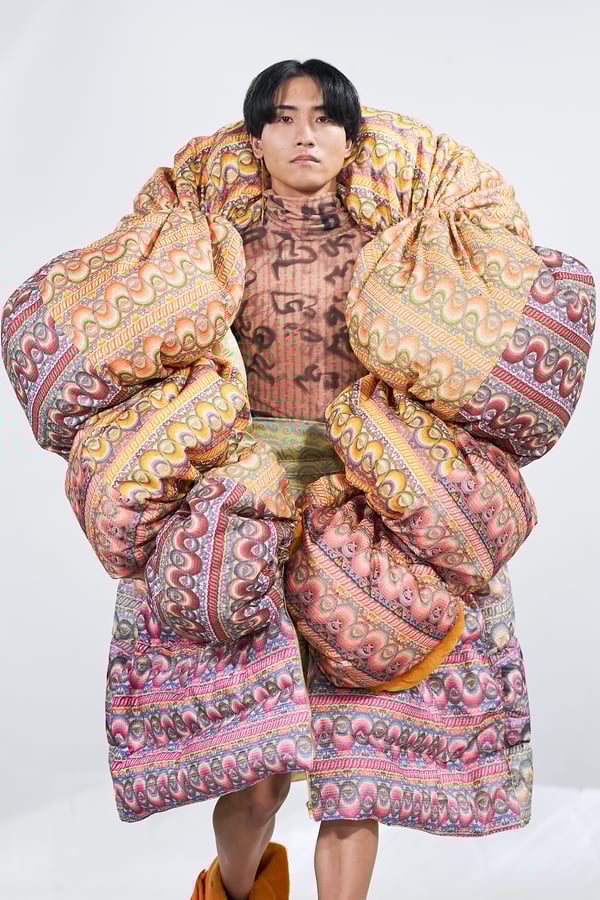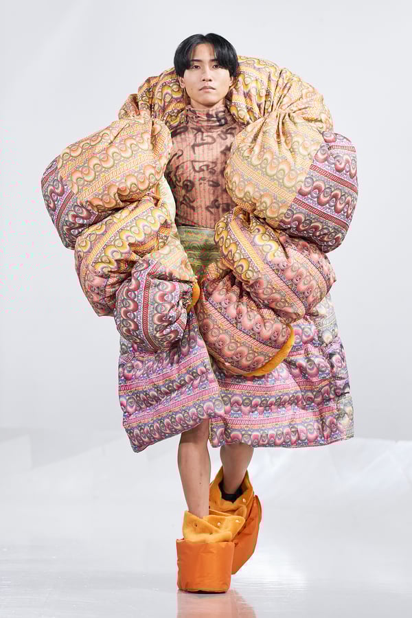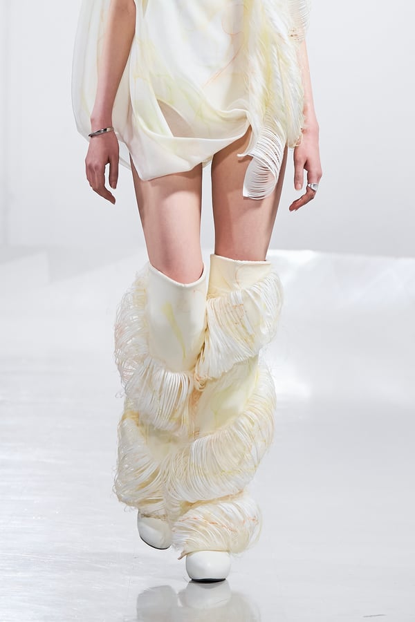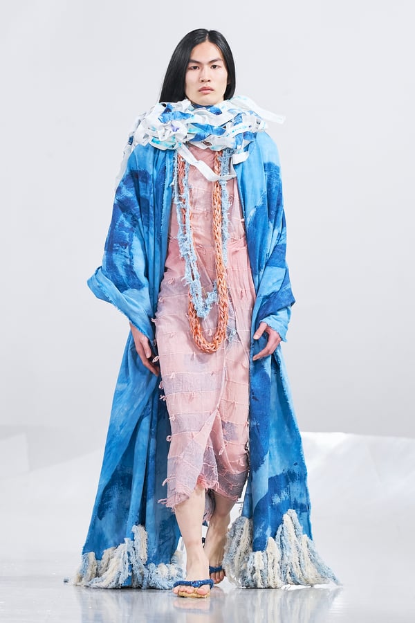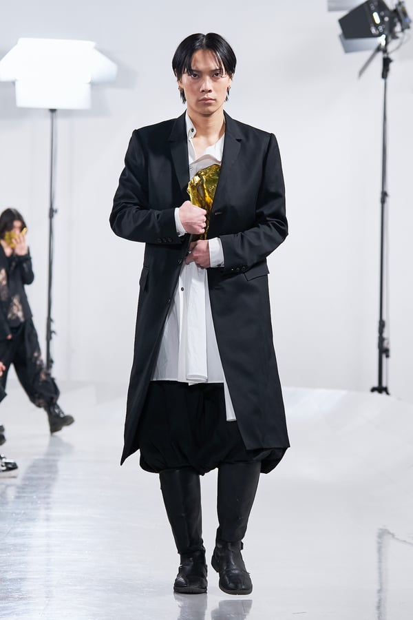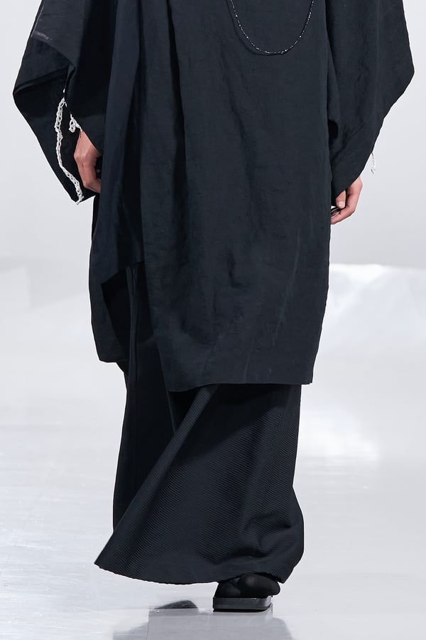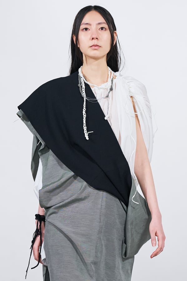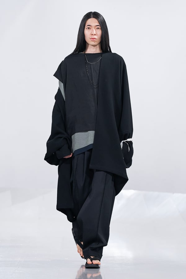 今年のコレクションのテーマは、白いキャンバスを意味する「ホワイトキャンバス(WHITE CANVAS)」。あらゆるクリエイションの始まりであり、不確かさと可能性の両方を内包する「白」を起点に、2026年3月卒業予定の31人の学生たちが、約1年間にわたるリサーチ・製作期間を経て完成させた作品の数々を披露した。同じテーマを起点としながらも、何気ない日常の儚さや、田舎での家族と過ごした時間や記憶、自然との侵されきらず拒まない共存の在り方、“女性らしさ”への違和感と反抗など、それぞれの学生が自身の経験や、感性、思想を反映して製作した多彩な作品が登場。またショーでは、パリ校からの留学生が作品のテーマを表現したパネルを手に持ち、各作品の先頭を歩く演出も行われた。