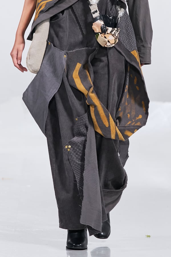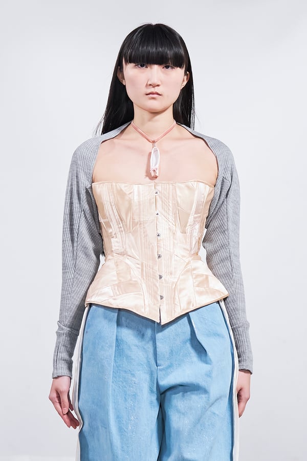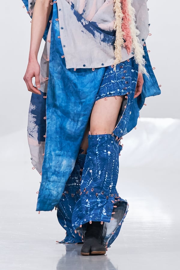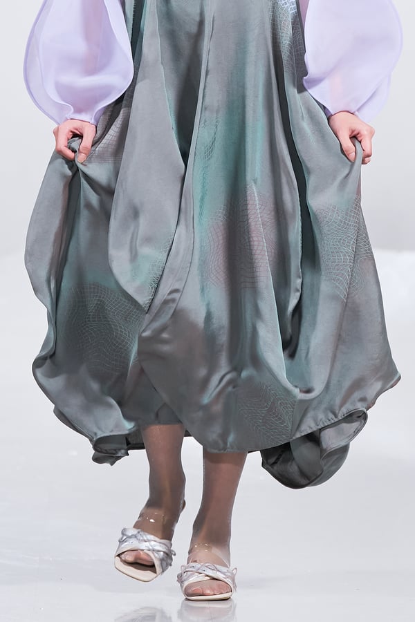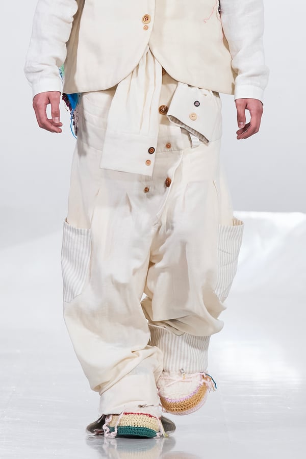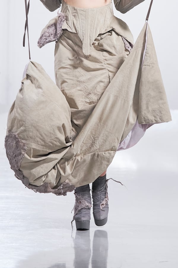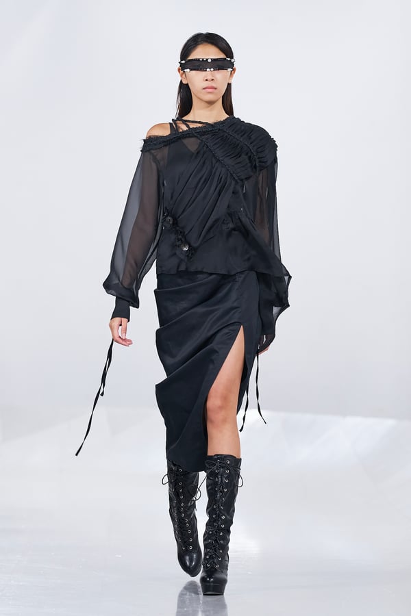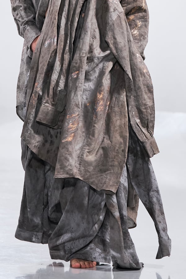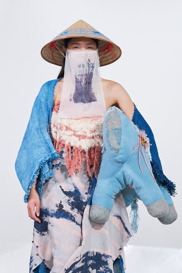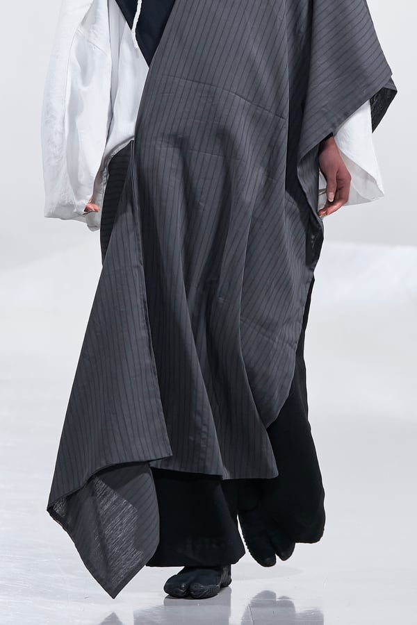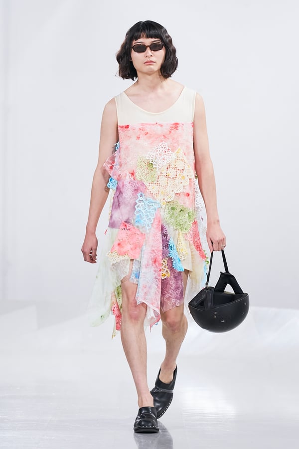 今年のコレクションのテーマは、白いキャンバスを意味する「ホワイトキャンバス(WHITE CANVAS)」。あらゆるクリエイションの始まりであり、不確かさと可能性の両方を内包する「白」を起点に、2026年3月卒業予定の31人の学生たちが、約1年間にわたるリサーチ・製作期間を経て完成させた作品の数々を披露した。同じテーマを起点としながらも、何気ない日常の儚さや、田舎での家族と過ごした時間や記憶、自然との侵されきらず拒まない共存の在り方、“女性らしさ”への違和感と反抗など、それぞれの学生が自身の経験や、感性、思想を反映して製作した多彩な作品が登場。またショーでは、パリ校からの留学生が作品のテーマを表現したパネルを手に持ち、各作品の先頭を歩く演出も行われた。