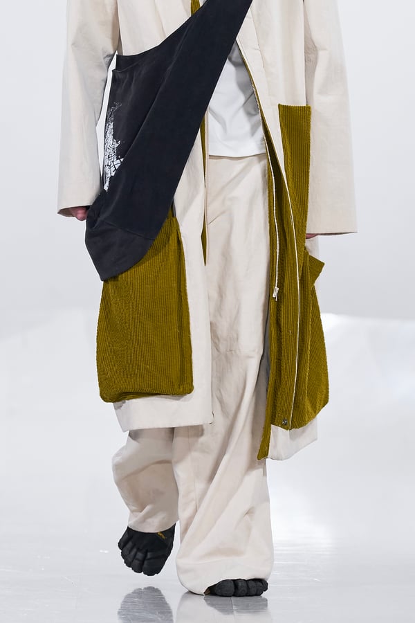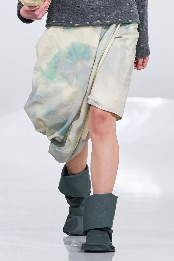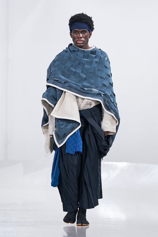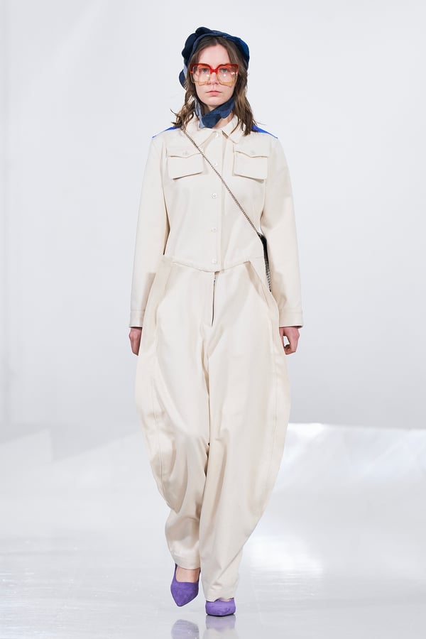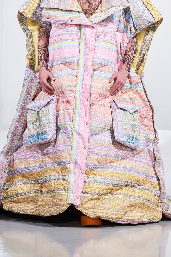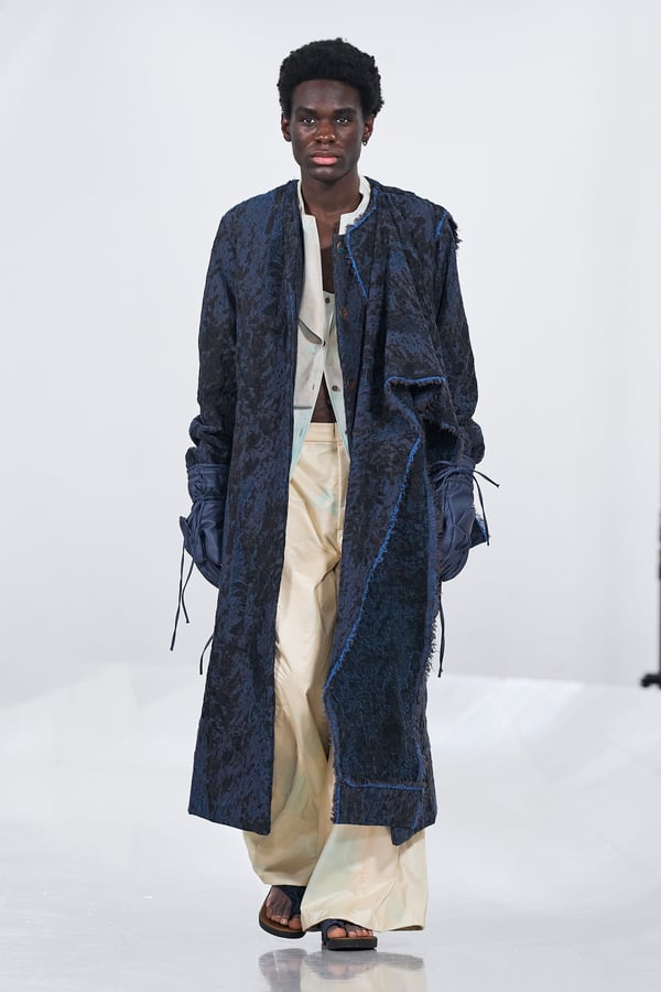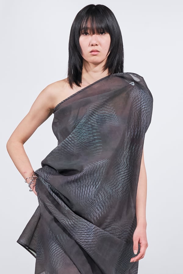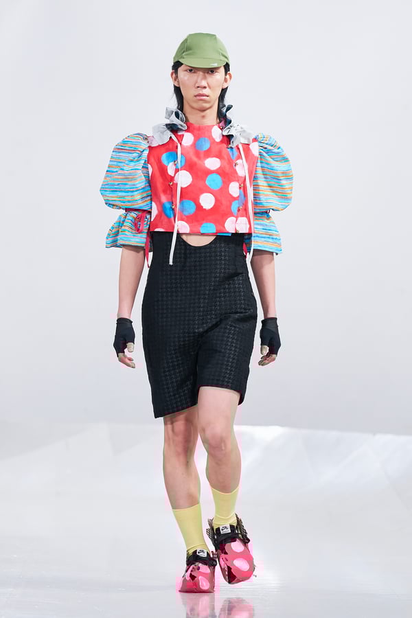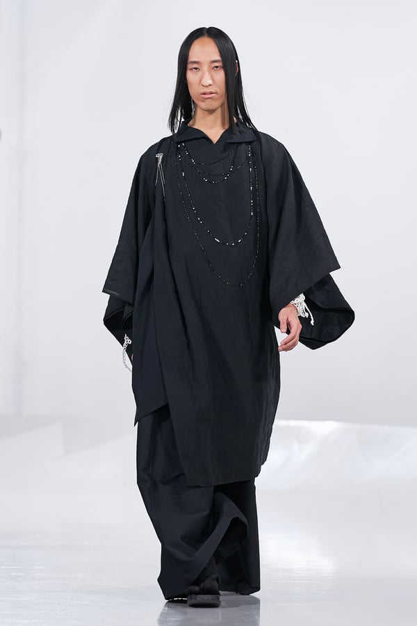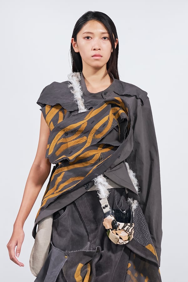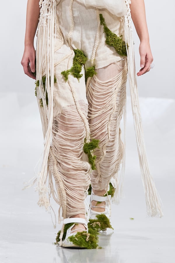 今年のコレクションのテーマは、白いキャンバスを意味する「ホワイトキャンバス(WHITE CANVAS)」。あらゆるクリエイションの始まりであり、不確かさと可能性の両方を内包する「白」を起点に、2026年3月卒業予定の31人の学生たちが、約1年間にわたるリサーチ・製作期間を経て完成させた作品の数々を披露した。同じテーマを起点としながらも、何気ない日常の儚さや、田舎での家族と過ごした時間や記憶、自然との侵されきらず拒まない共存の在り方、“女性らしさ”への違和感と反抗など、それぞれの学生が自身の経験や、感性、思想を反映して製作した多彩な作品が登場。またショーでは、パリ校からの留学生が作品のテーマを表現したパネルを手に持ち、各作品の先頭を歩く演出も行われた。