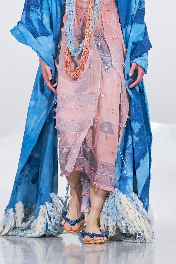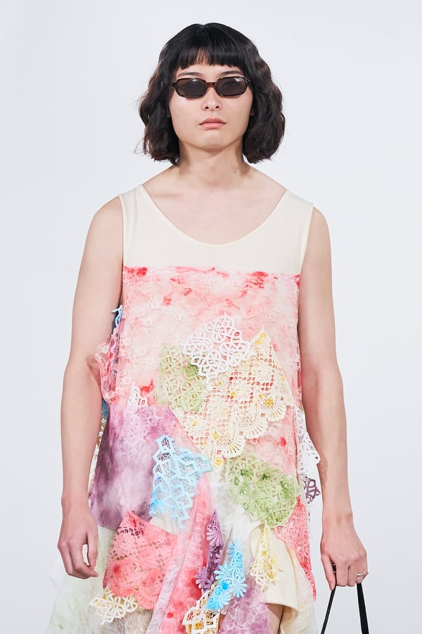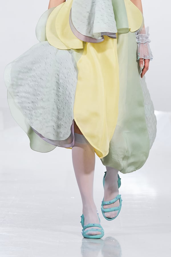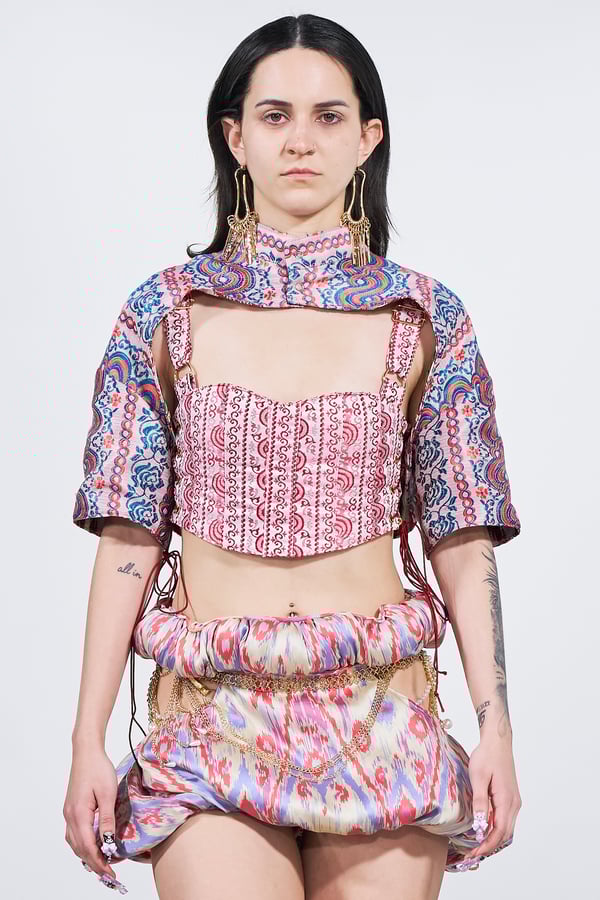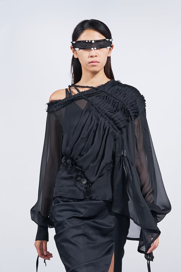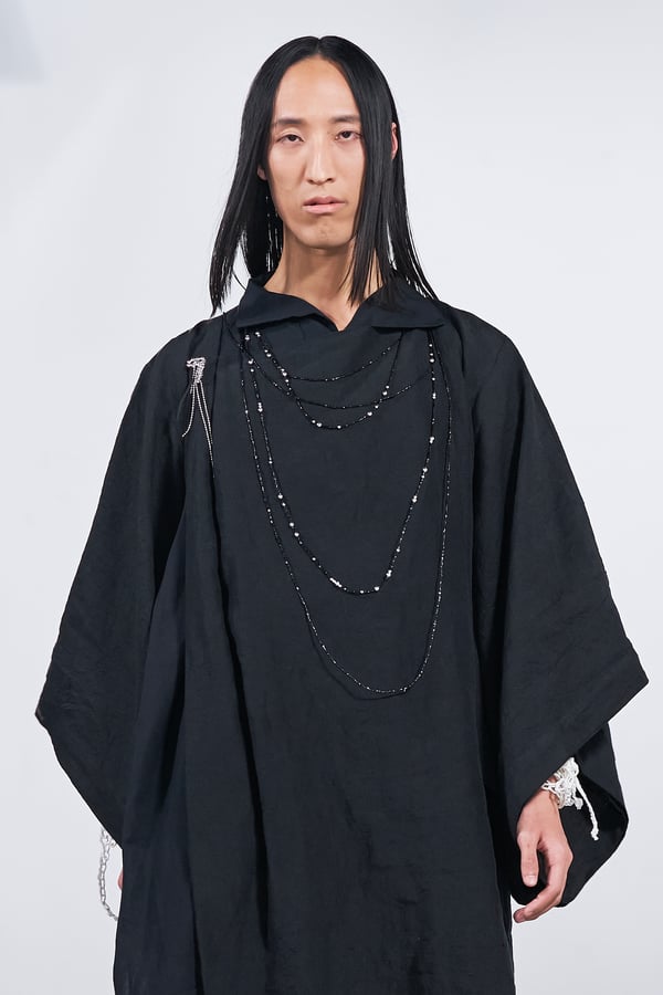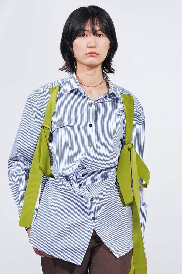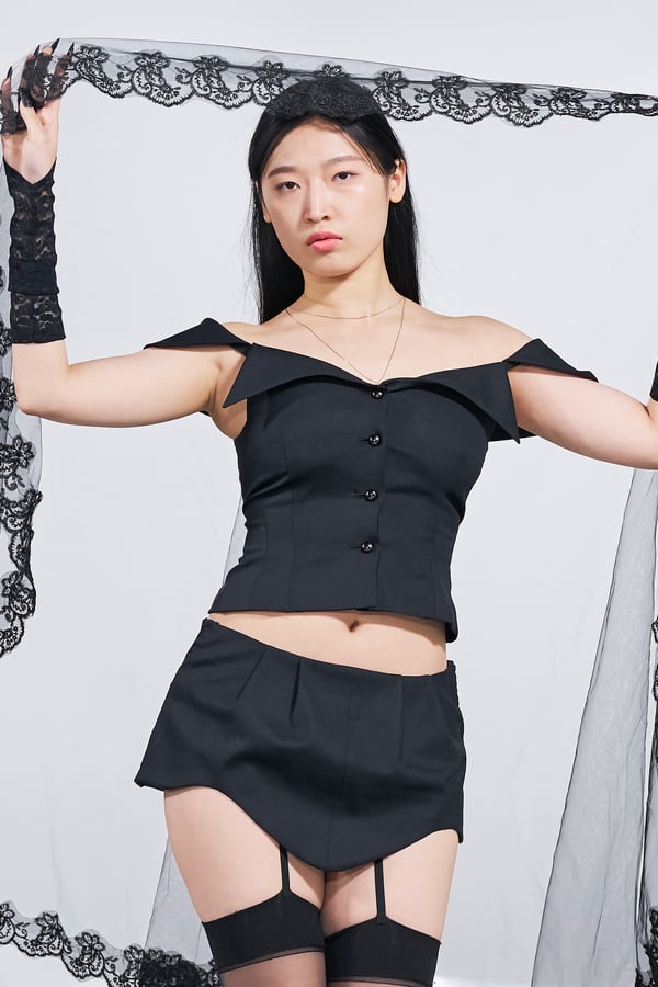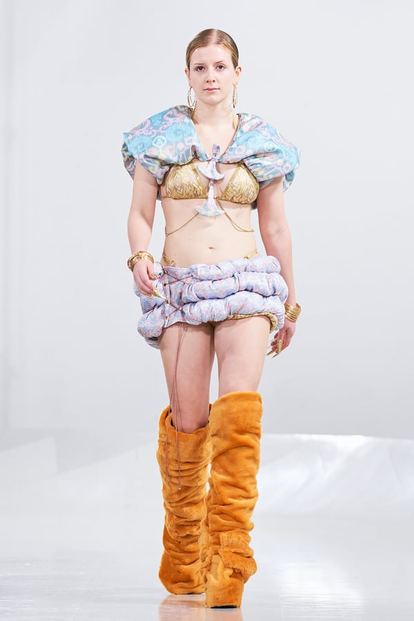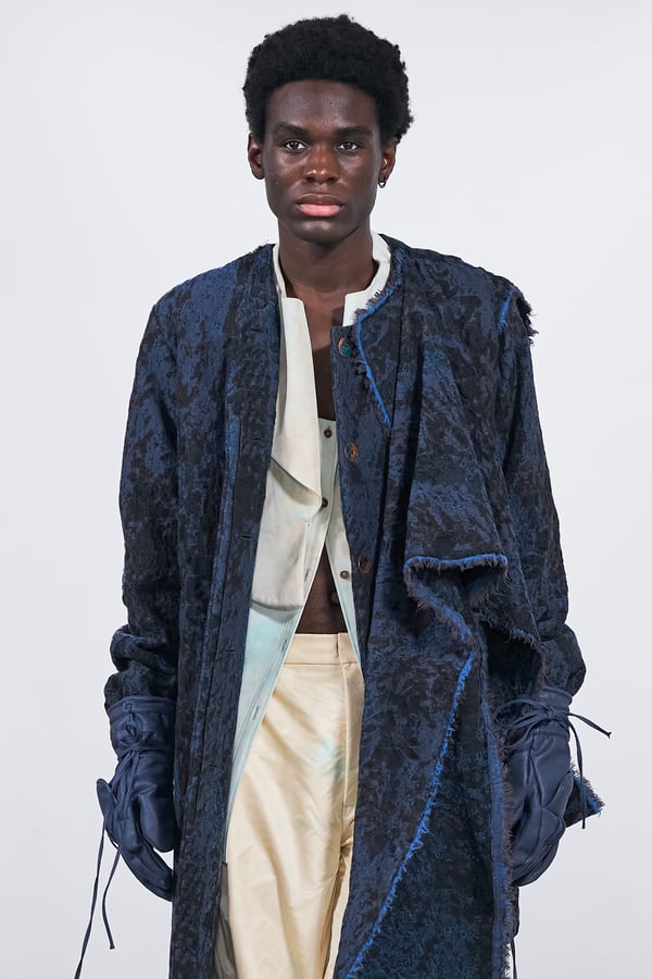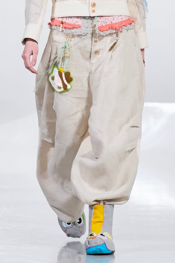 今年のコレクションのテーマは、白いキャンバスを意味する「ホワイトキャンバス(WHITE CANVAS)」。あらゆるクリエイションの始まりであり、不確かさと可能性の両方を内包する「白」を起点に、2026年3月卒業予定の31人の学生たちが、約1年間にわたるリサーチ・製作期間を経て完成させた作品の数々を披露した。同じテーマを起点としながらも、何気ない日常の儚さや、田舎での家族と過ごした時間や記憶、自然との侵されきらず拒まない共存の在り方、“女性らしさ”への違和感と反抗など、それぞれの学生が自身の経験や、感性、思想を反映して製作した多彩な作品が登場。またショーでは、パリ校からの留学生が作品のテーマを表現したパネルを手に持ち、各作品の先頭を歩く演出も行われた。