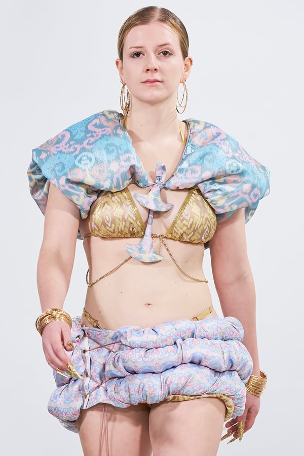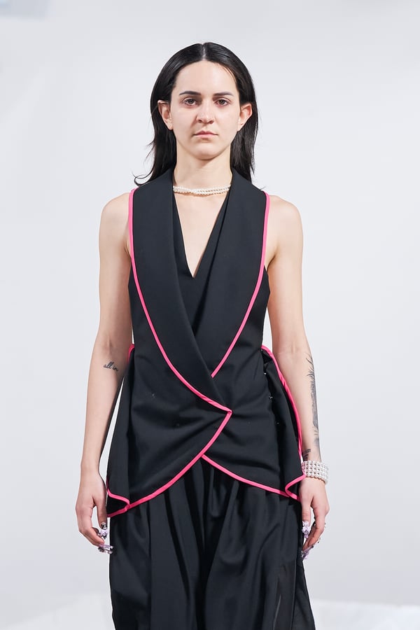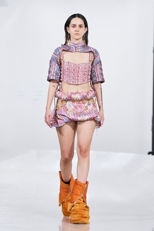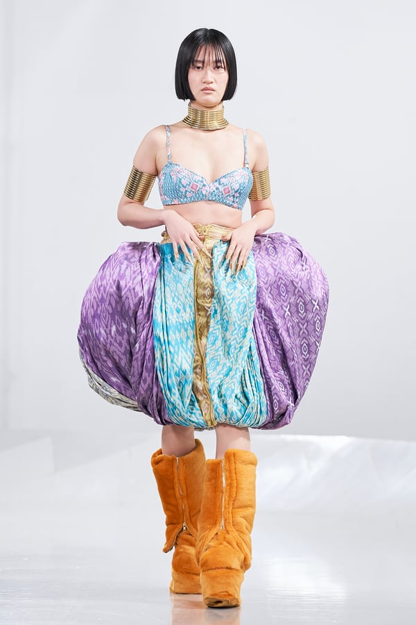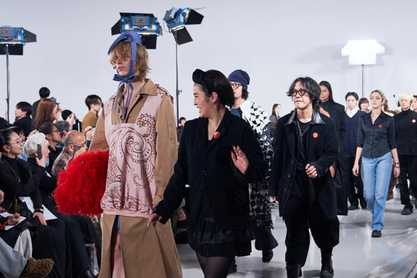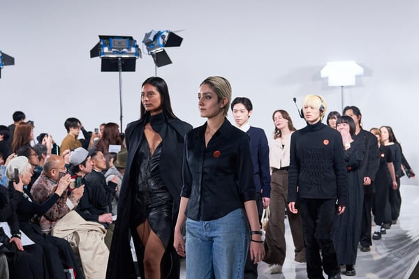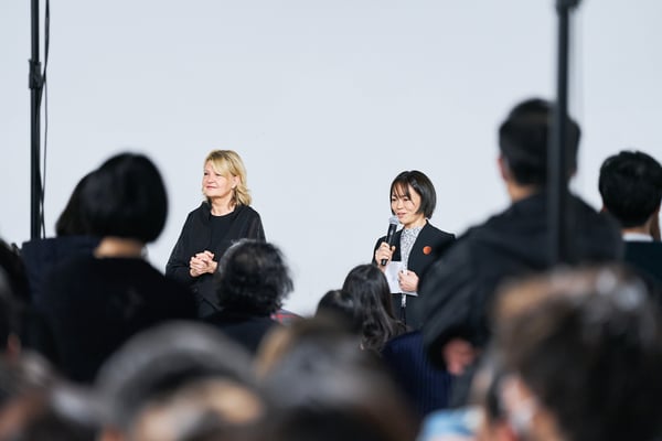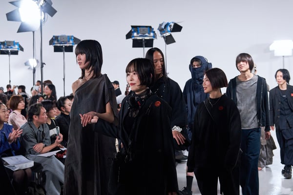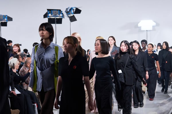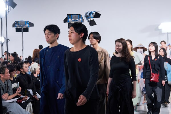 ショー後には、エスモード インターナショナルを総括するディレクター兼COOのヴェロニク・ボーモン(Véronique Beaumont)氏が登壇し、今期の学生の作品を「類を見ない卓越した学年」と高く評価。作品の背景にある深い研究と探究心への感動や、AIには代替できない「人間的な感情」や「知恵」が反映されたクリエイションの素晴らしさについて話し、ショーを締めくくった。