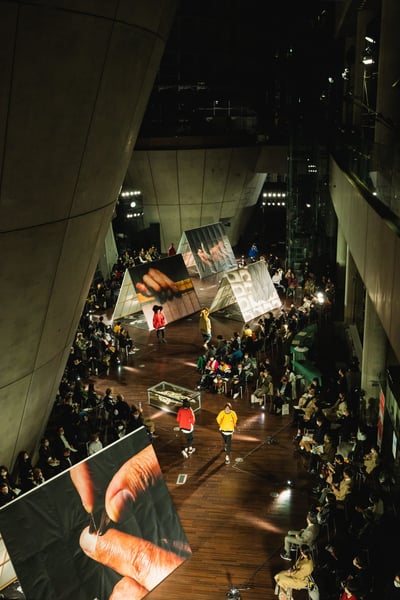 デザイナー丸龍文人が手掛けるブランド「フミト ガンリュウ(FUMITO GANRYU)」が大規模展「ファッション イン ジャパン 1945-2020―流行と社会」の関連イベントとして、「リトゥンアフターワーズ(writtenafterwards)」の山縣良和氏とのコラボショーを国立新美術館で披露。