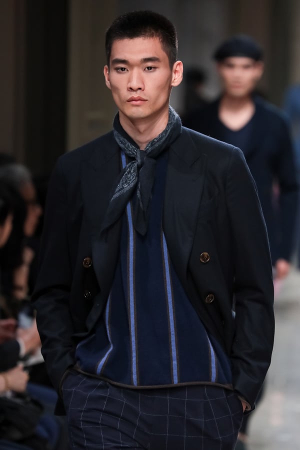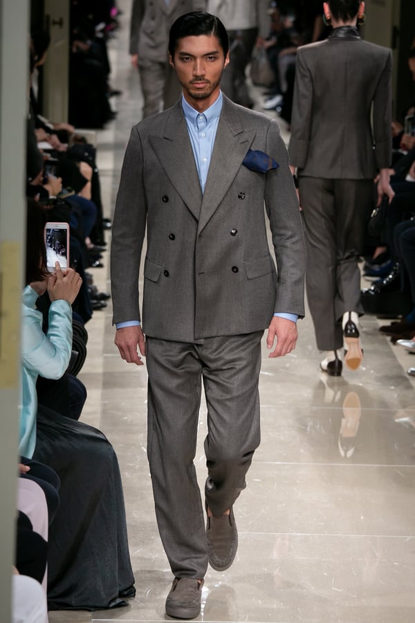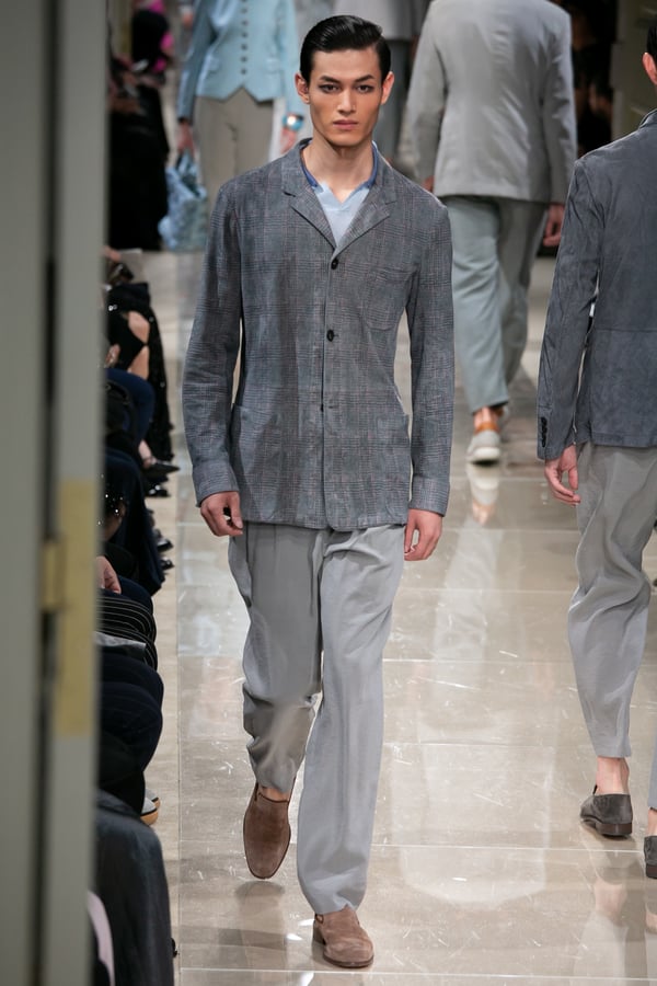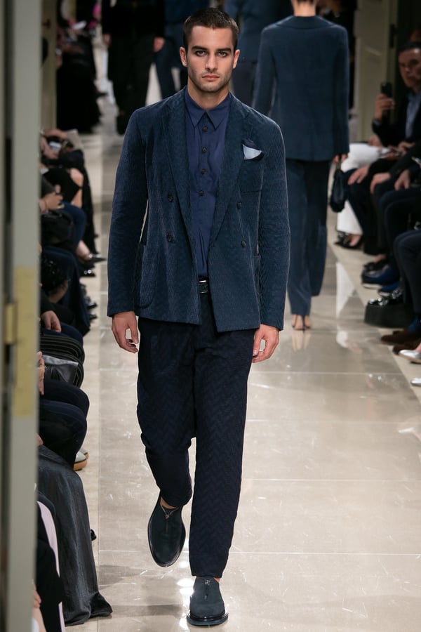 創業デザイナーのジョルジオ・アルマーニが手がける「アルマーニ(ARMANI)」ブランドのファーストライン。素材とシルエット、着心地の良さを追求したエフォートレス・ラグジュアリーを提案。装飾的なデザインや華美な配色は控えめで、洗練されたミニマルモダンなクリエイションが評価されている。体に優しくフィットするソフトな仕立てのスーツに定評があり、"アンコン革命"とも称されるアンコンストラクテッド(脱構築)ジャケットで知られる。レッドカーペットや映画の衣装提供、スポーツの公式ユニフォーム提供なども数多く行う。創業デザイナーがいまだに現役としてクリエーションを発揮している。