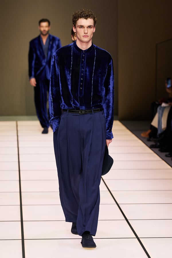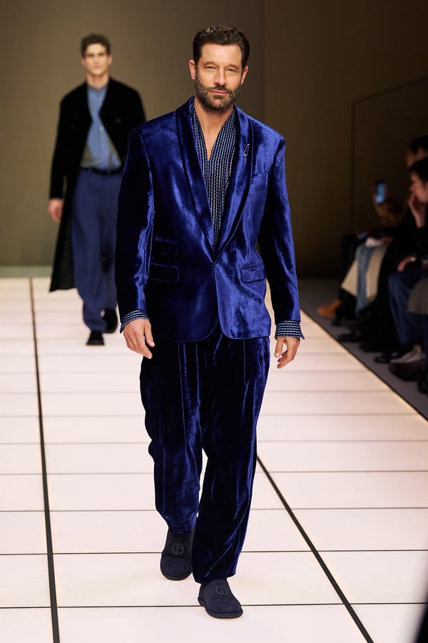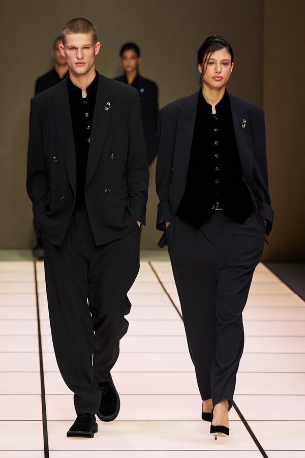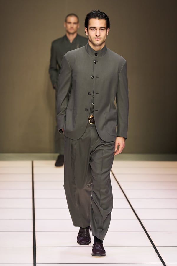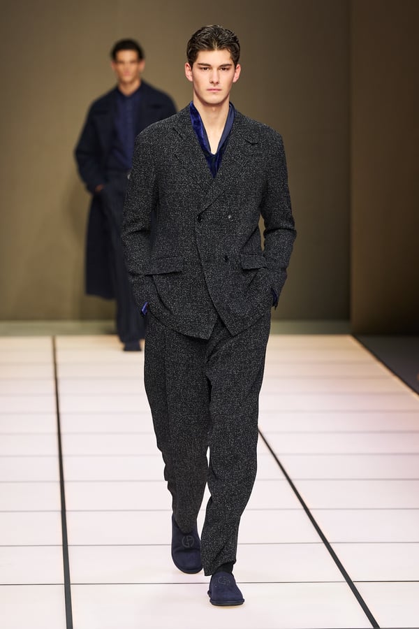 創業デザイナーのジョルジオ・アルマーニが手がける「アルマーニ(ARMANI)」ブランドのファーストライン。素材とシルエット、着心地の良さを追求したエフォートレス・ラグジュアリーを提案。装飾的なデザインや華美な配色は控えめで、洗練されたミニマルモダンなクリエイションが評価されている。体に優しくフィットするソフトな仕立てのスーツに定評があり、"アンコン革命"とも称されるアンコンストラクテッド(脱構築)ジャケットで知られる。レッドカーペットや映画の衣装提供、スポーツの公式ユニフォーム提供なども数多く行う。創業デザイナーがいまだに現役としてクリエーションを発揮している。