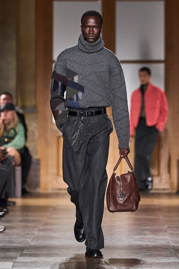 ヴェロニクの集大成とも言えるコレクションは、メゾンが培ってきたヘリテージとともに、見えない部分や細部へのこだわりを随所に散りばめた。刺繍やステッチでピンストライプを表現したり、ニットにレザーを編み込んだりといった高度な技術と、リバーシブル仕様やテクニカル素材といった実用性を融合している。