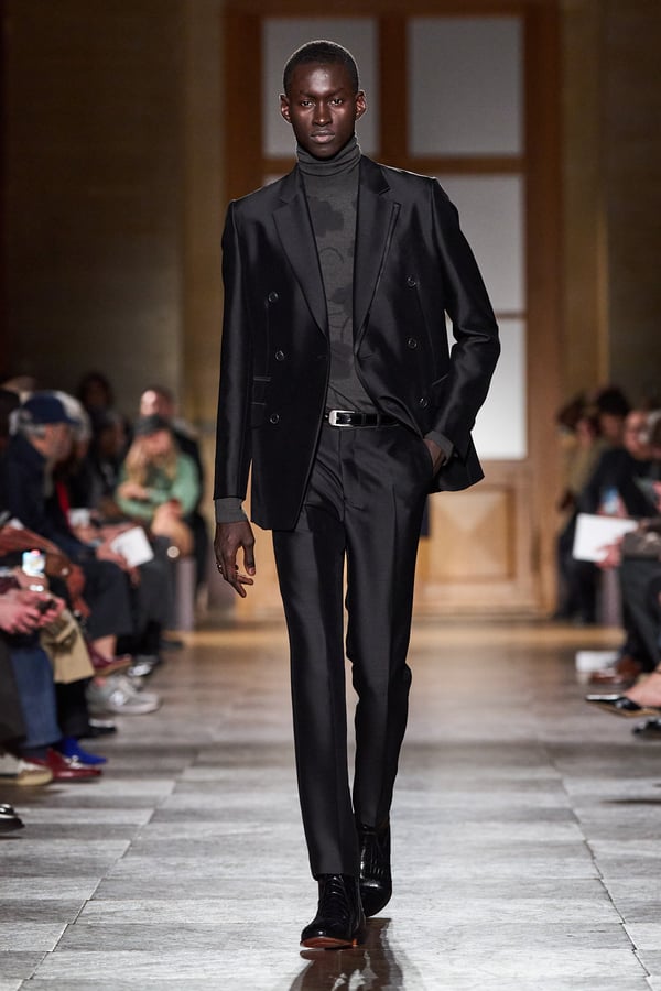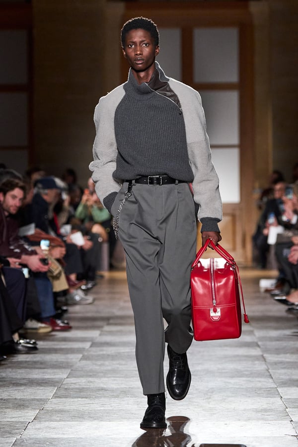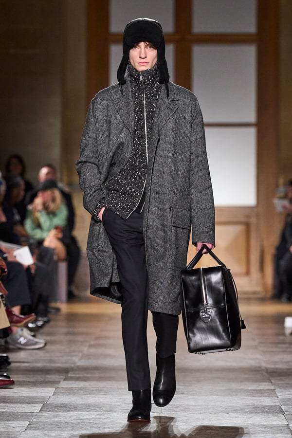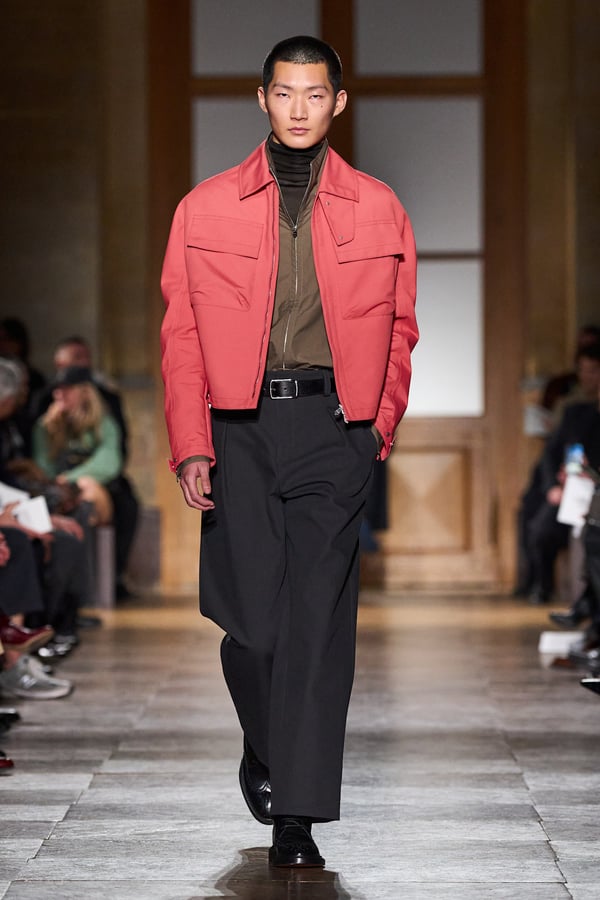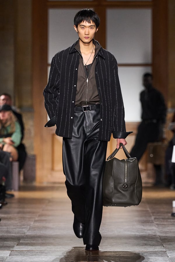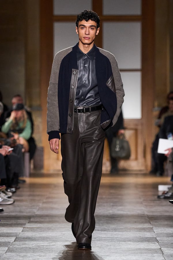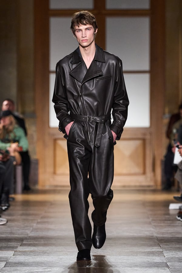 全59ルックのうち、1991年秋冬コレクションのカーフスキンのジャンプスーツなど、9型のアーカイヴデザインが登場。エルメスのメンズウェアは人生に寄り添い、時を経ても色褪せないというタイムレスな魅力を証明した。ヴェロニクが37年にわたり探求してきた"メンズ・ユニバース"の世界とともに、"今と永遠に続く服"を表現する。