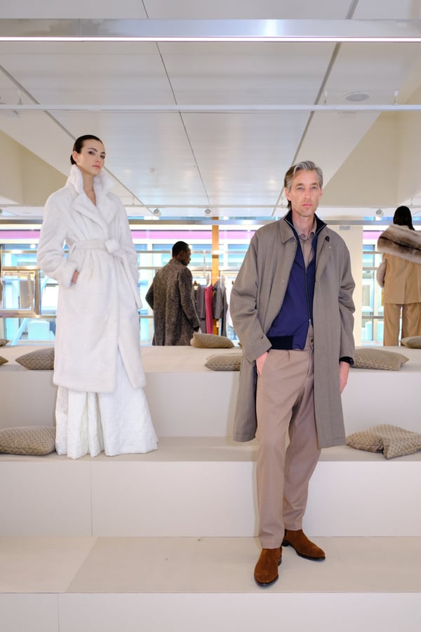「ヘルノ(HERNO)」が2026年秋冬ウィメンズコレクションをプレゼンテーション形式で発表した。会場には、エレガントでリラクシーな空気をまとったモデルが並び、アウターウェアにフォーカスしながら、服を通じたコミュニケーションを提案した。