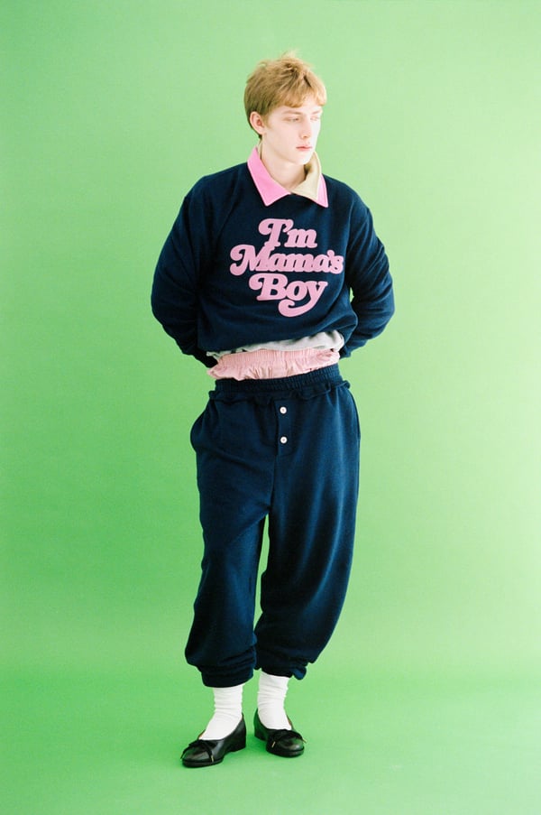 「オムナ(HOMMENA)」が発表した2026年秋冬コレクション。テーマは「I'm Mama's Boy」。