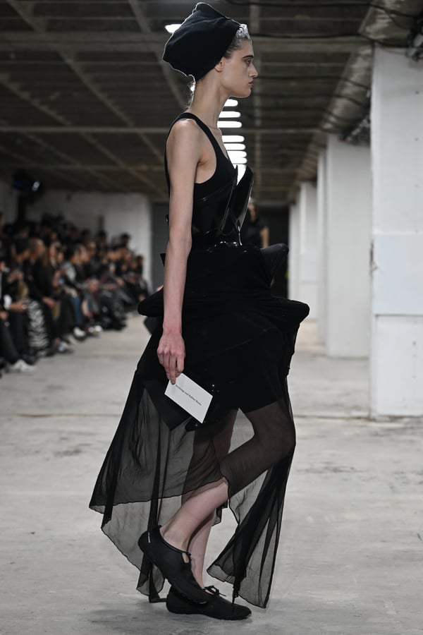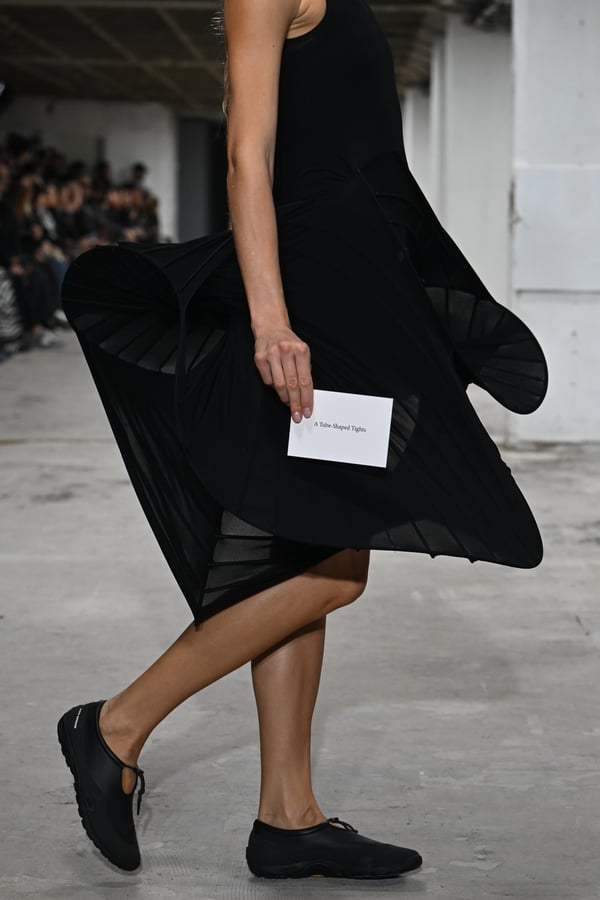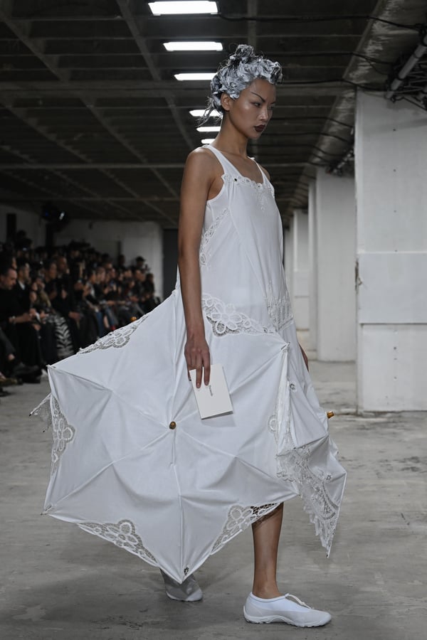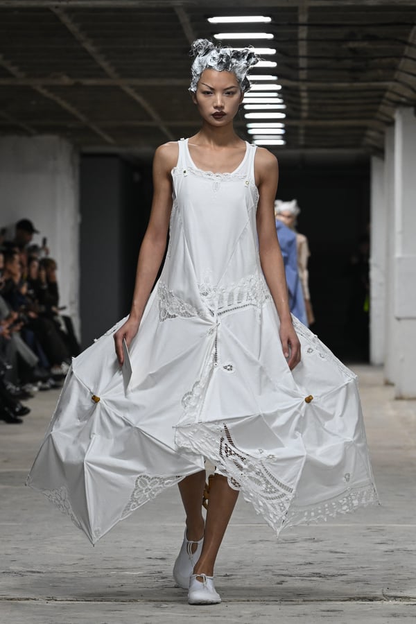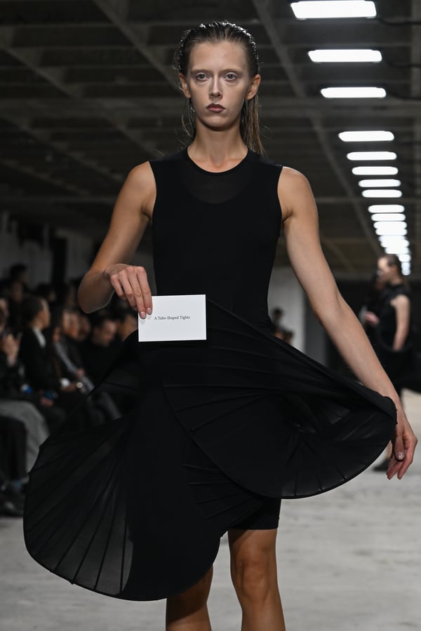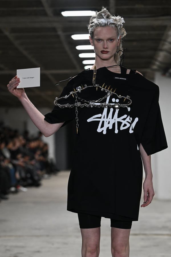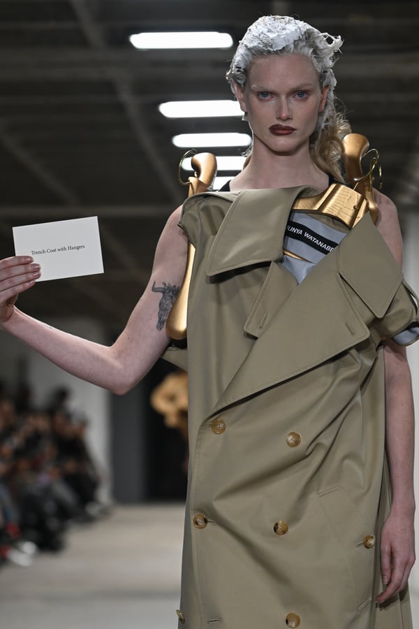 渡辺淳弥が手掛ける「ジュンヤ ワタナベ(JUNYA WATANABE)」の2026年春夏コレクションを発表した。ショーは、ランウェイで何度も立ち止まってポーズを取り、観客にルックを表す言葉が書かれたカードを見せる演出で、既製品やオブジェクトを素材として扱うコレクションを披露した。