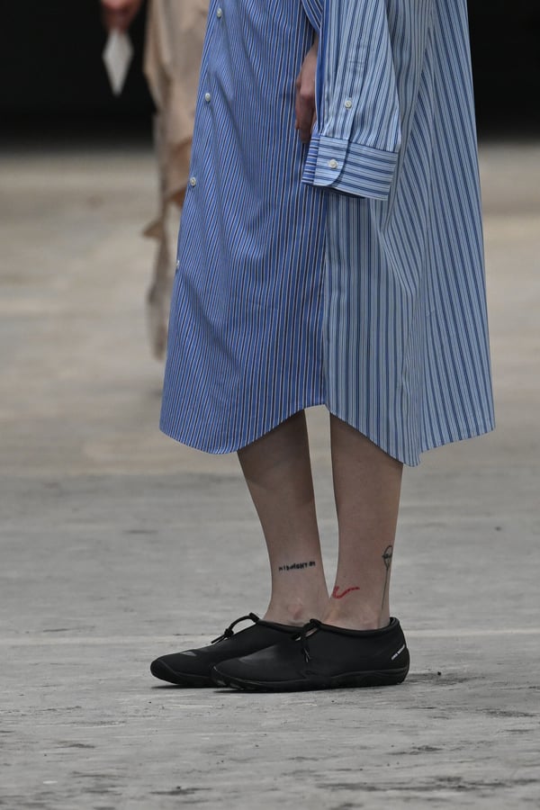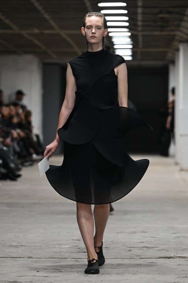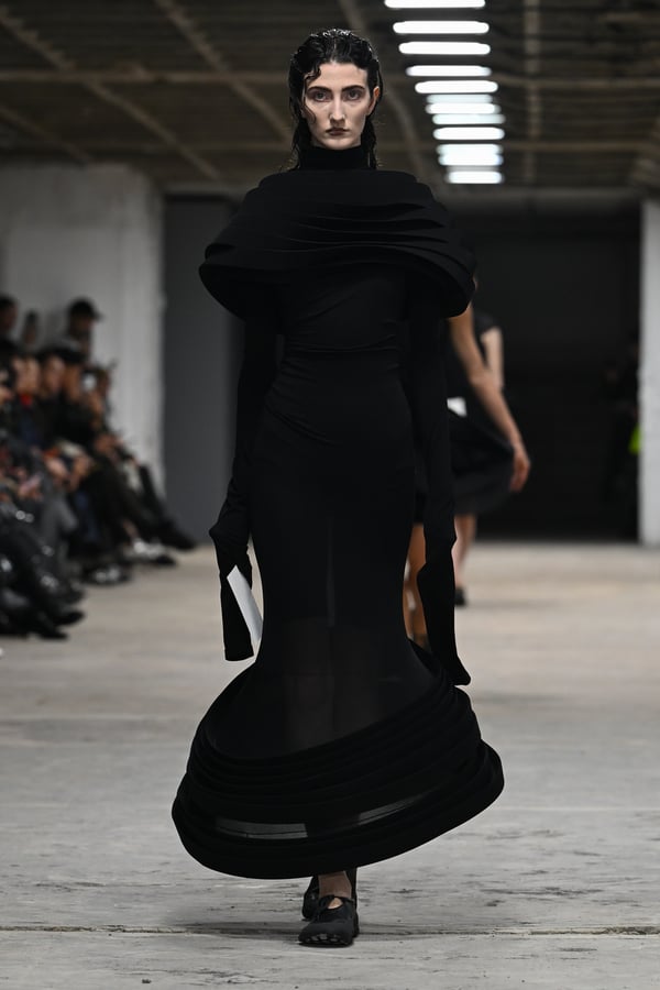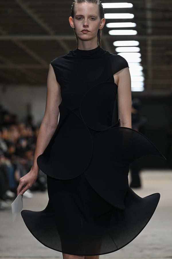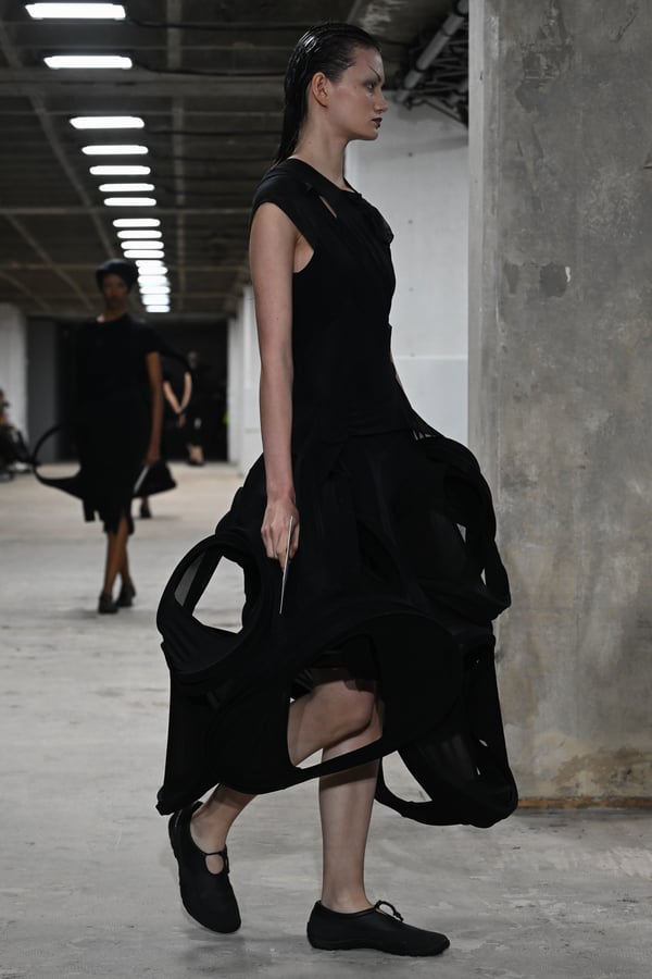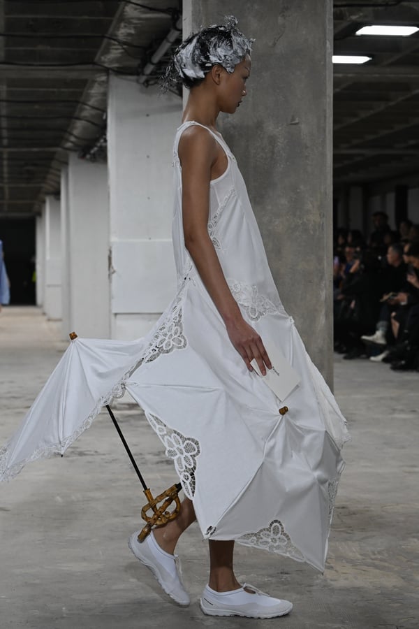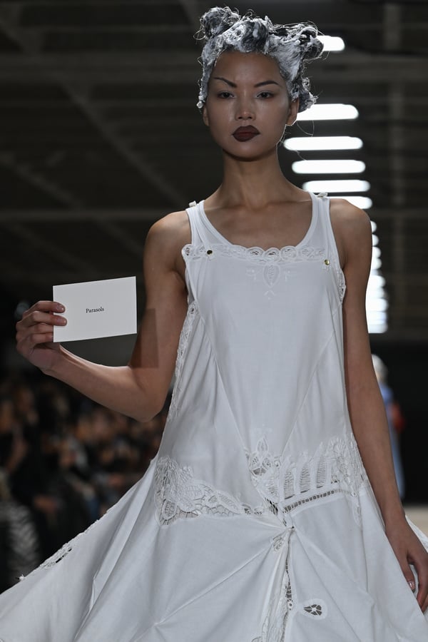 渡辺淳弥が手掛ける「ジュンヤ ワタナベ(JUNYA WATANABE)」の2026年春夏コレクションを発表した。ショーは、ランウェイで何度も立ち止まってポーズを取り、観客にルックを表す言葉が書かれたカードを見せる演出で、既製品やオブジェクトを素材として扱うコレクションを披露した。