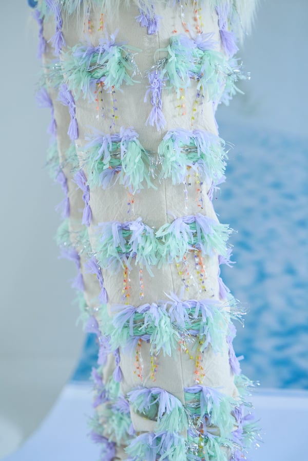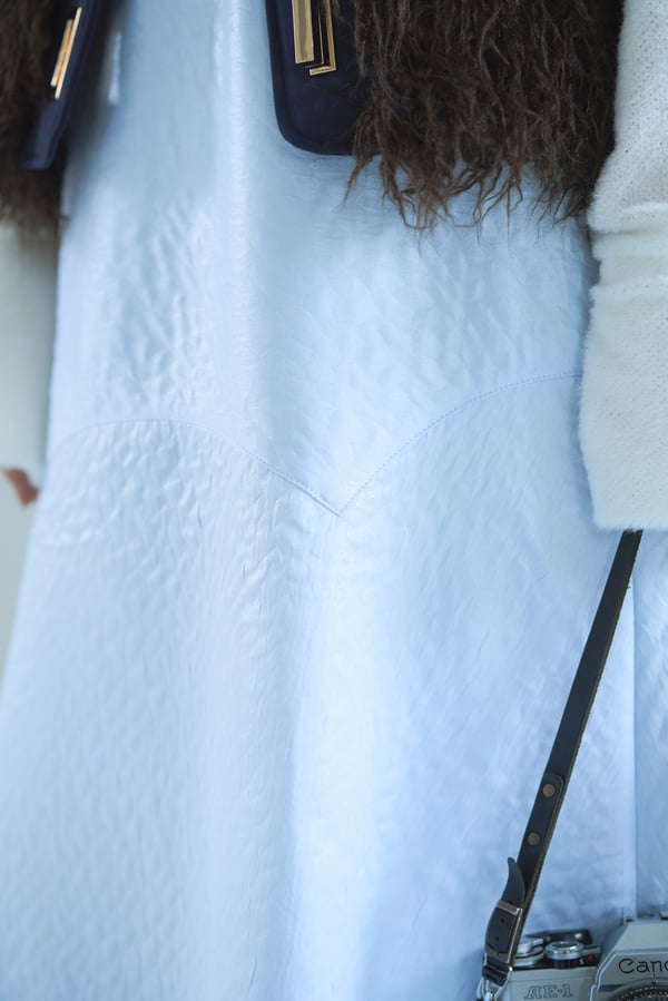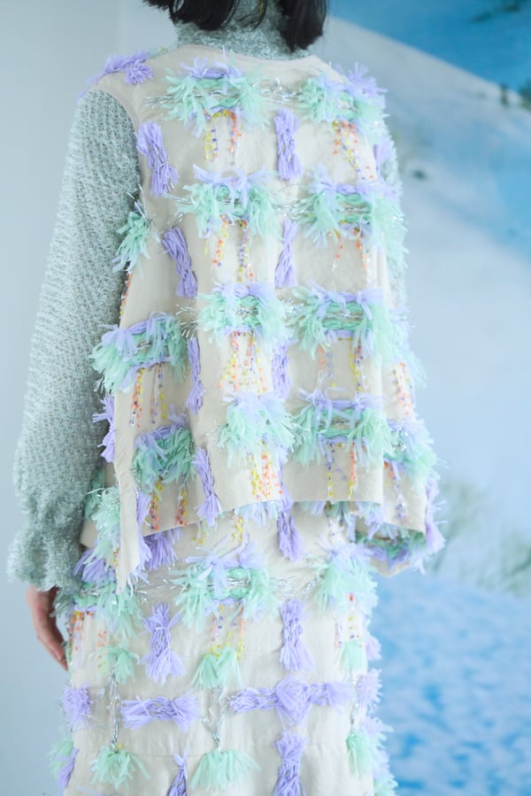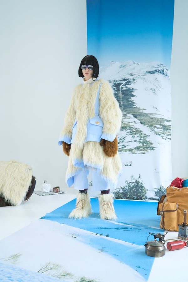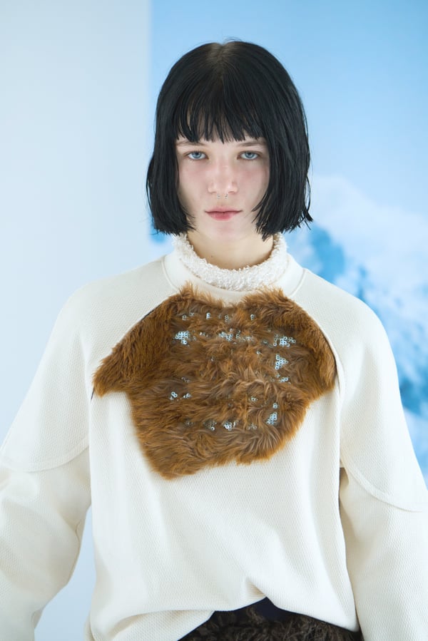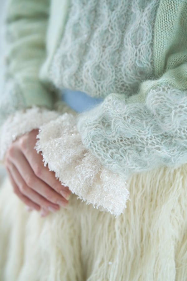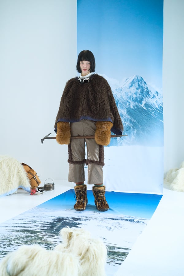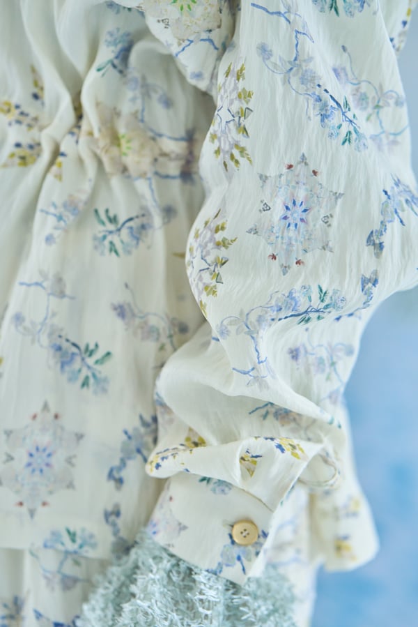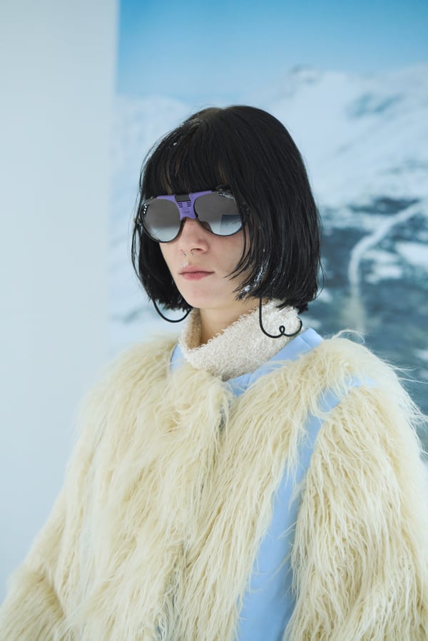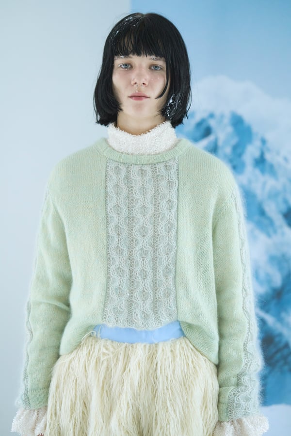 「ケイコ ニシヤマ(KEIKO NISHIYAMA)」が発表した2026年秋冬コレクション「- Cartography of Curiosity - 好奇心の地図製作」。氷の現象から着想を得た世界観を、尾州のカナーレジャパンとの協業で手掛けたオリジナルテキスタイルなどを用いて表現。