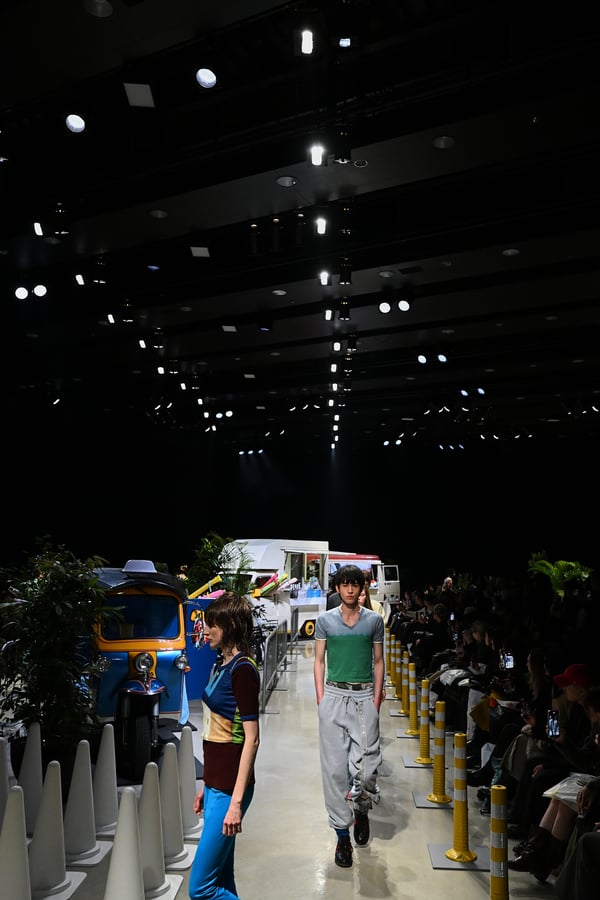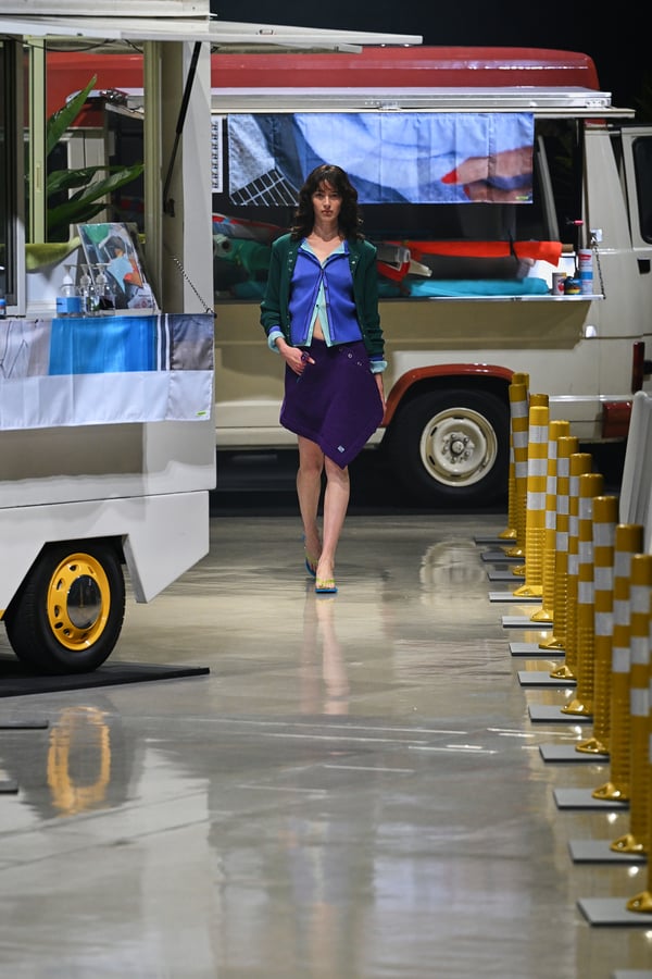 横澤琴葉が手掛ける「コトハヨコザワ(kotohayokozawa)」が、Rakuten Fashion Week TOKYO 2026 A/Wで2026年秋冬コレクションをランウェイショー形式で発表した。渋谷ヒカリエホールAを舞台に、反射ポールや観葉植物、自転車、フードトラックなどが並ぶ旅先のような雑多でリラックス感のある空間とBGMの中、ショーが行われた。