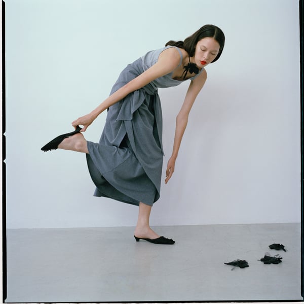 「ラインヴァンド(LEINWÄNDE)」はロンドン在住の日本人デザイナーによって2017年に設立されたウィメンズブランド。「大人のワードローブに加える1着」をコンセプトに、遊び心あるリアルクローズへと落とし込んでいる。「ラインヴァンド」はドイツ語で"キャンバス"を意味しており、自由に絵を描けるキャンバスのようなブランドであってほしいというデザイナーの願いが込められている。