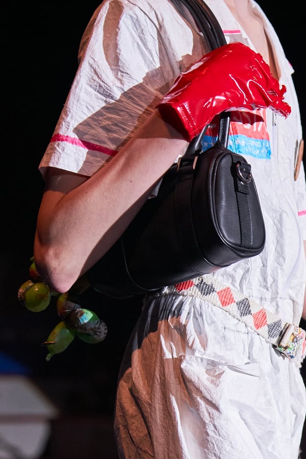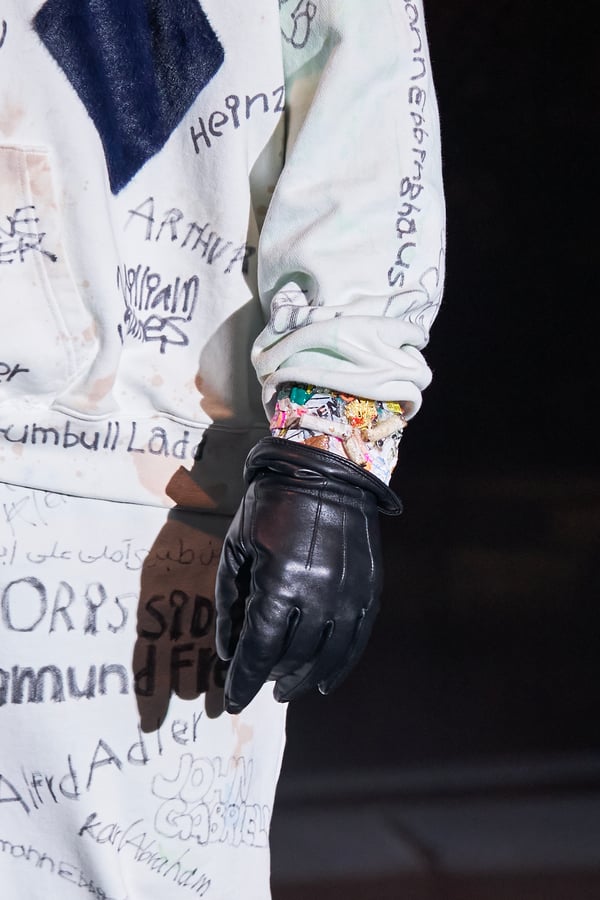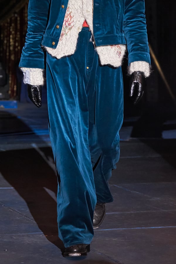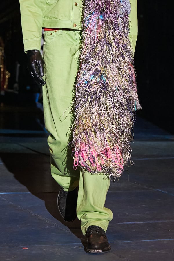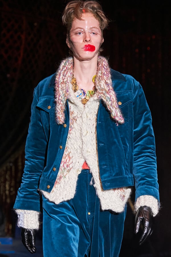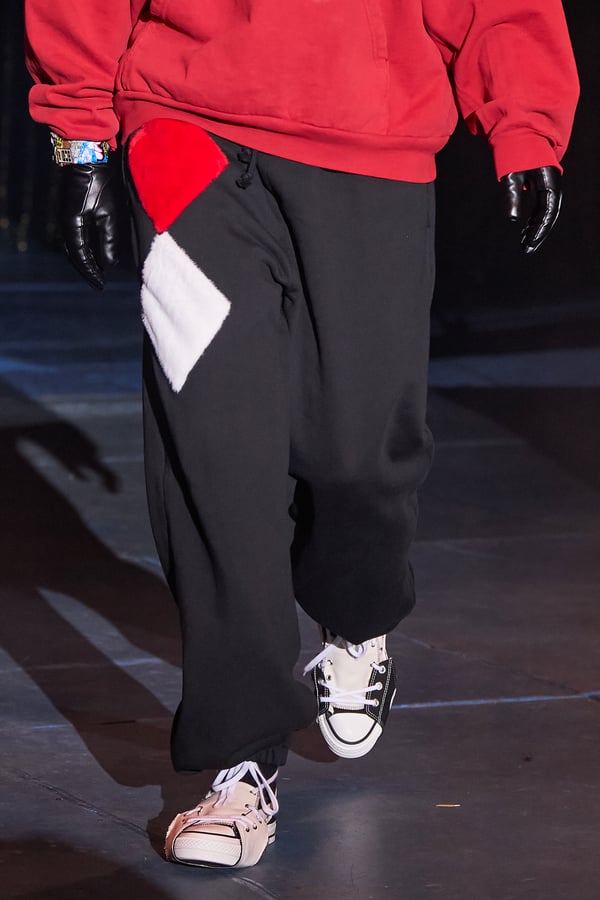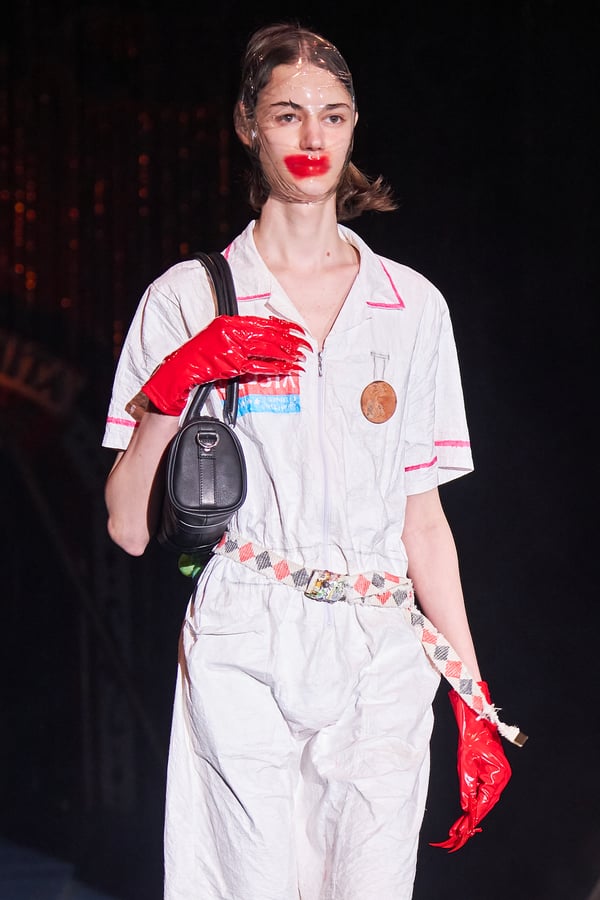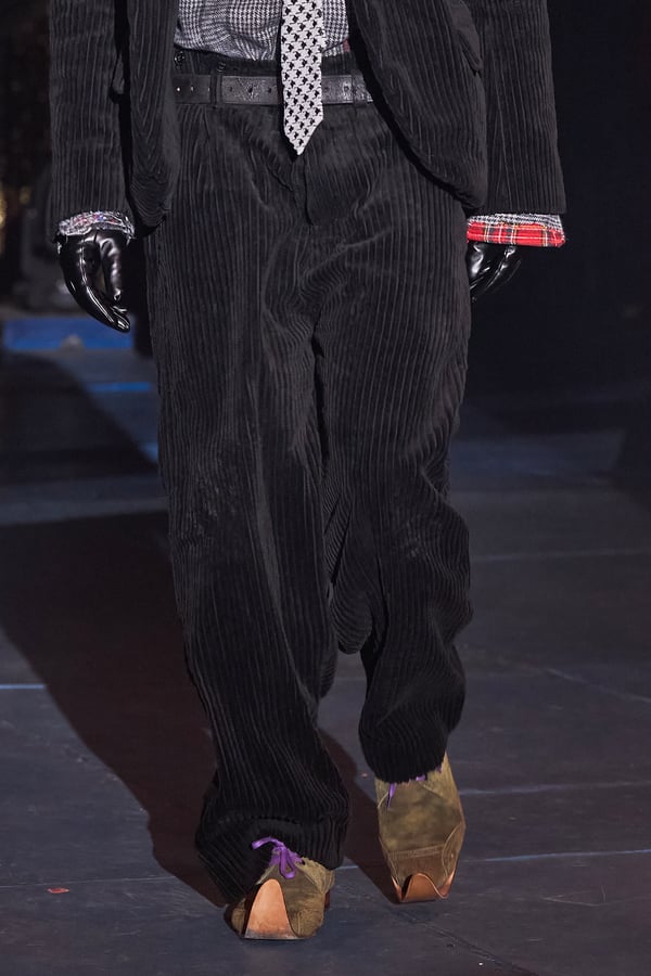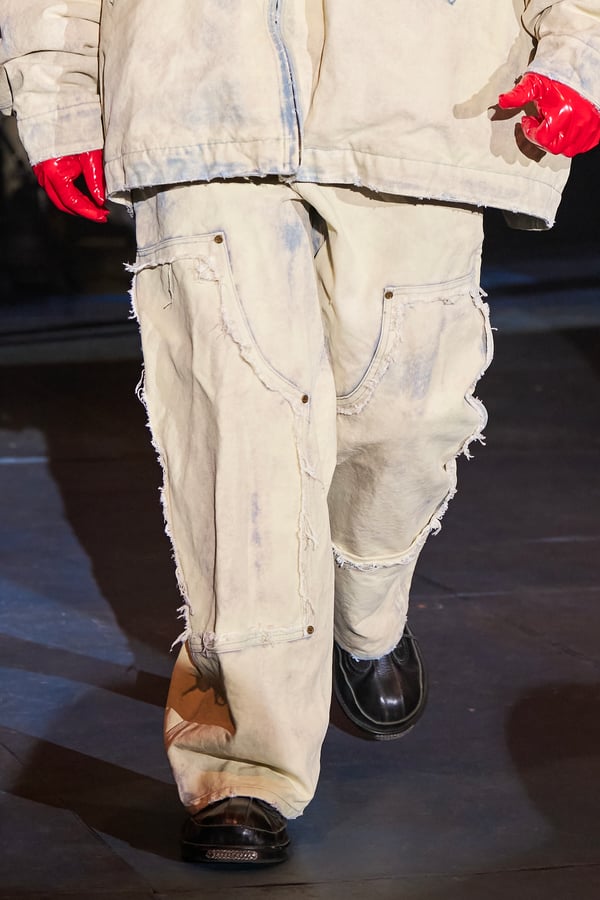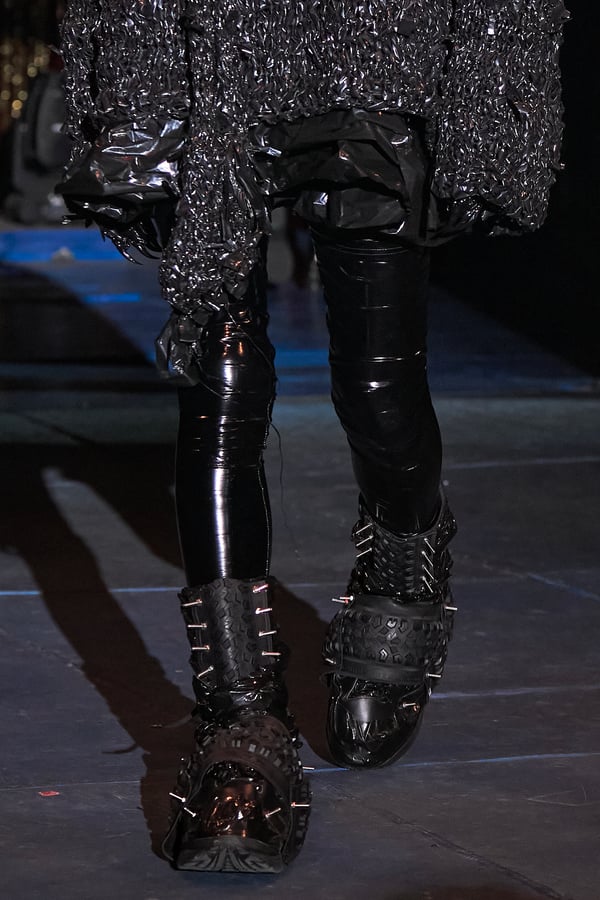 今季のテーマは「MADNESS IS LIKE GRAVITY」。デザイナー川西が20年前ロンドンに渡った際に抱いたファッションの世界への憧れと、それからの20年間に経験したことを融合させ、クリエイションに落とし込んだ。ランウェイでは、ペイントやダメージ加工のデニム、ラメ、フリンジ、ハーレクイン柄など、装飾性が高いルックをピエロを彷彿とさせるヘアメイクと合わせて発表した。