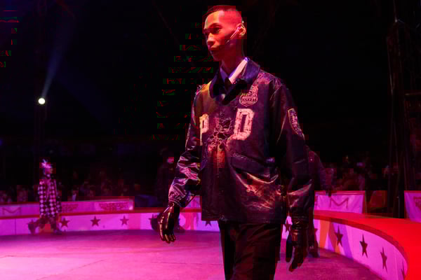 会場は、木下大サーカス立川立飛 特設会場。開演前にはゲストにポップコーンを配り、ショーの舞台であるテントの入り口付近では出店で会場限定Tシャツやパーカを販売。さながら本物のサーカス公演のように来場者を出迎えた。