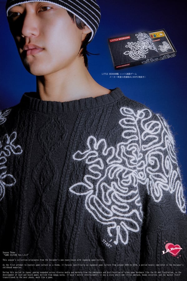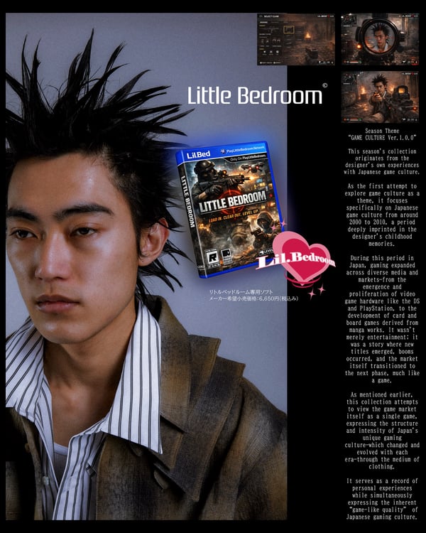 デザイナー国分寺大空が手掛ける「リトル ベッドルーム(LITTLE BEDROOM)」が発表した2026年秋冬コレクション。テーマは「GAME CULTURE Ver.1.0.0」。