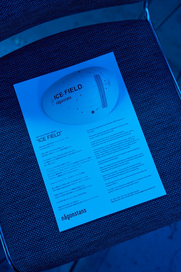 テーマは「Ice Field(氷原)」。植田がかねてよりアイスランドに強い憧憬を抱いていたことからスタートし、氷原の澄んだ空気と静けさ、雄大な自然のイメージを膨らませていったという。そこに、厳しい冬の気候をアクティブに楽しむ、アイスホッケーやスピードスケート、フィギュアスケートといったウィンタースポーツの要素とユニフォームのディテールを融合した。