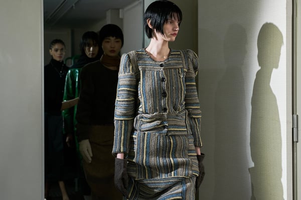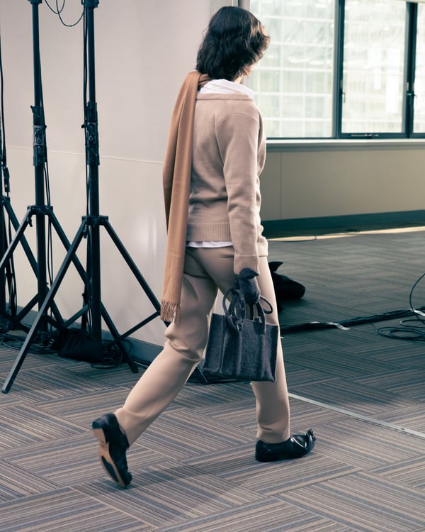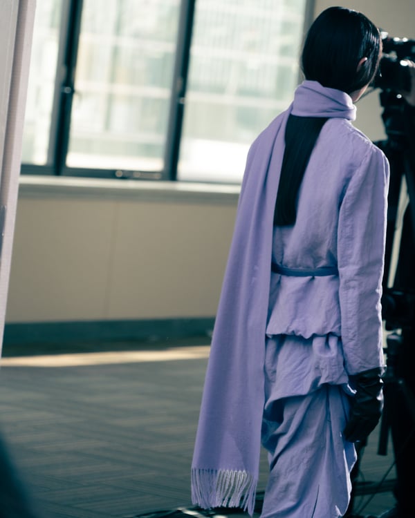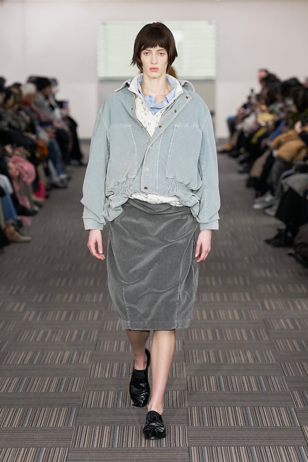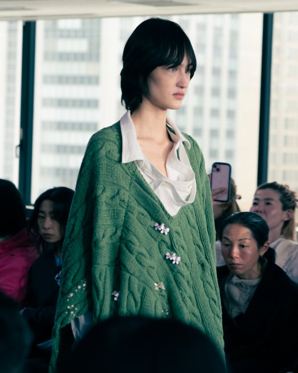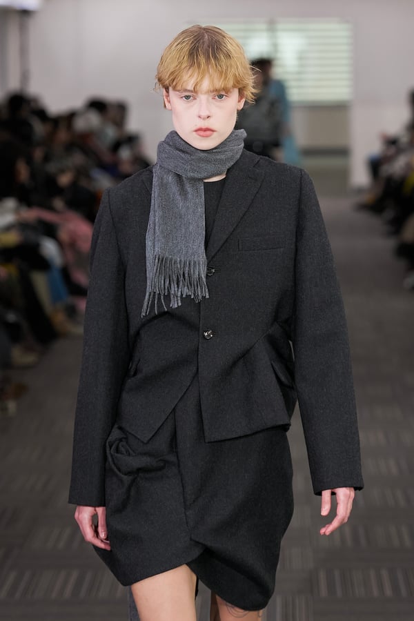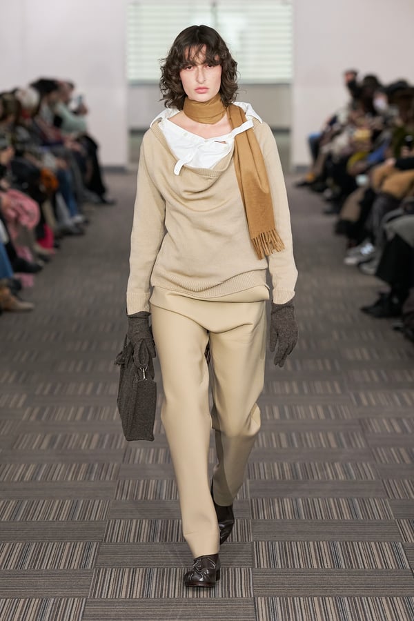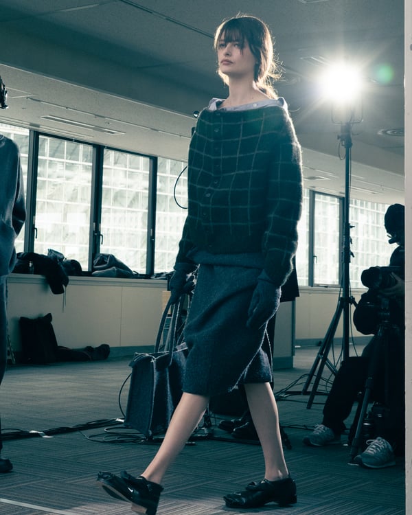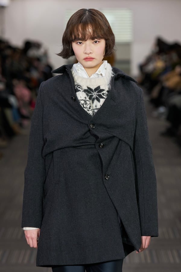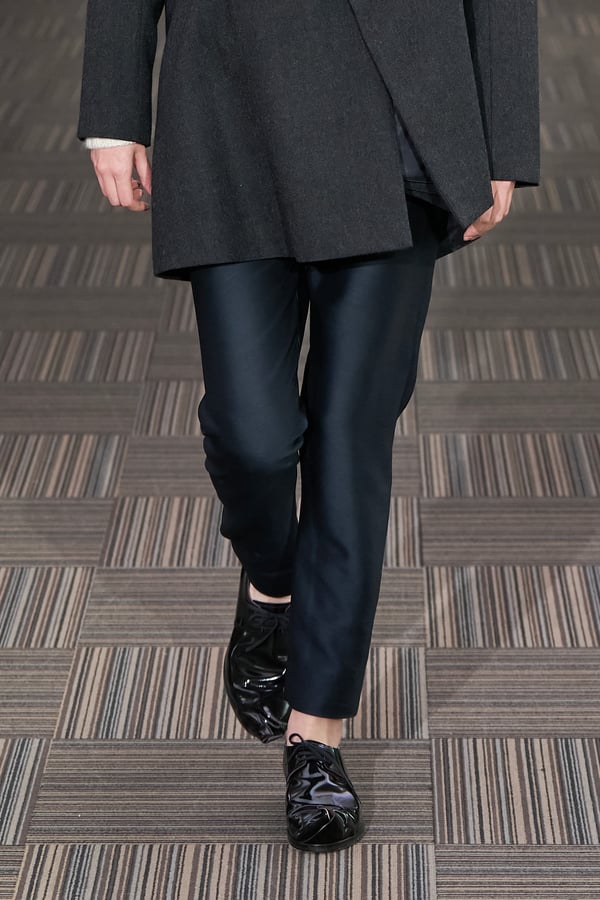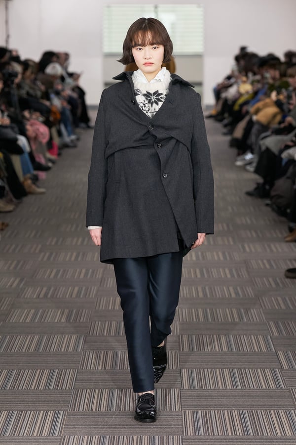 13回目となるコレクションのタイトルは、「Landscapes」。前シーズンに引き続き「日本の何気ない日常の服」をテーマに掲げつつも、前回のような具体的でリアルな人物像ではなく、より俯瞰的な視点から東京の街や人を見つめることを意識。曖昧な記憶や朝方に見る不条理な夢のような、嘘か現実かわからない、その両方が入り混じった世界を想像しながら製作したという。