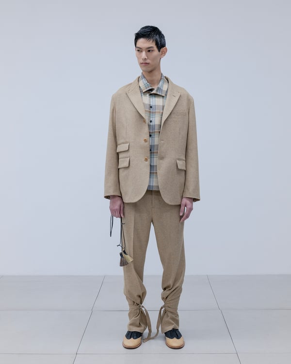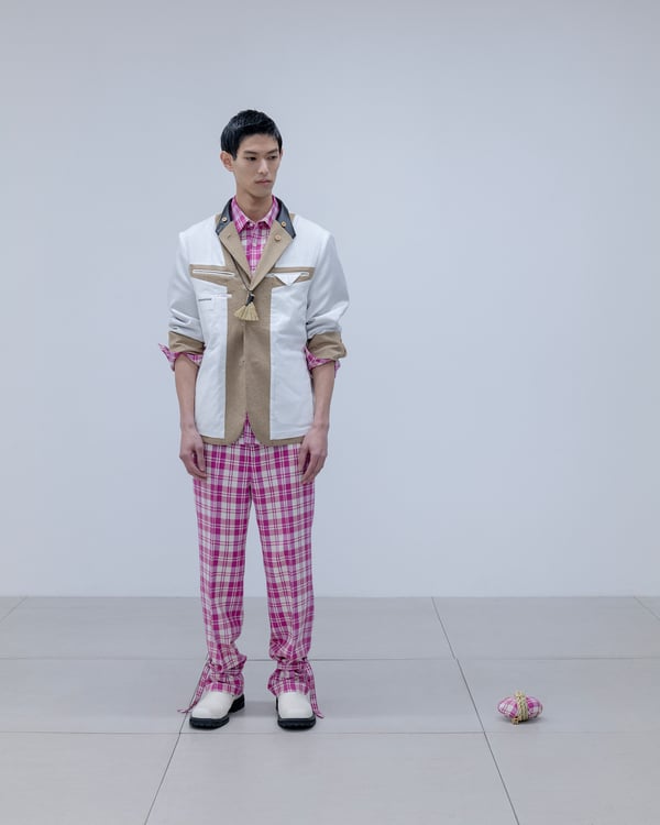 デザイナー 河村慶太がとグラフィックデザイナー 菅家悠斗によるメンズブランド「クアジエクスペリメンタル(Quasiexperimental)」が発表した2026年秋冬コレクション。