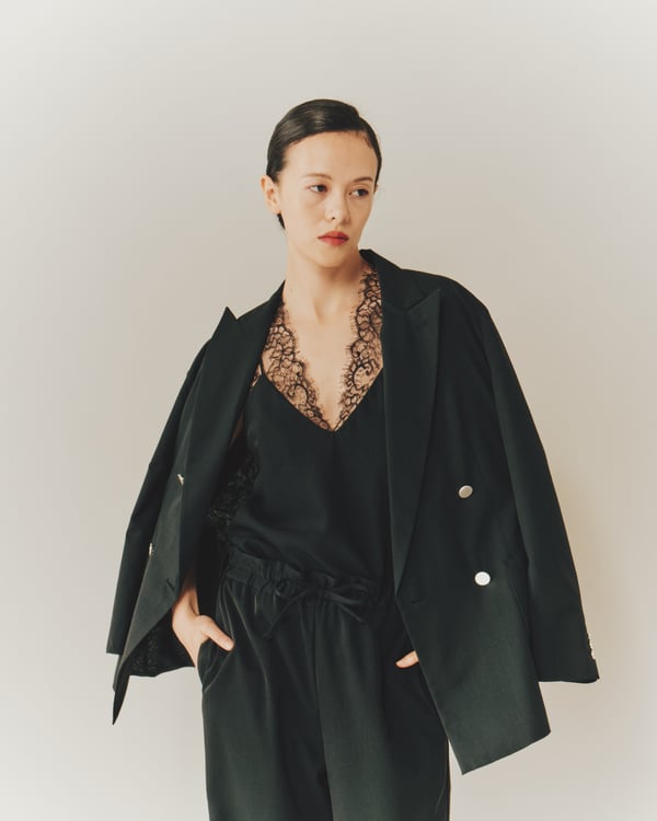 デザイナー小島直子が手掛ける「ルーム エイト(Room no.8)」から派生したライン「ルームエイト ブラック(Room no.8 / BLACK)」が発表した2026年春夏コレクション。