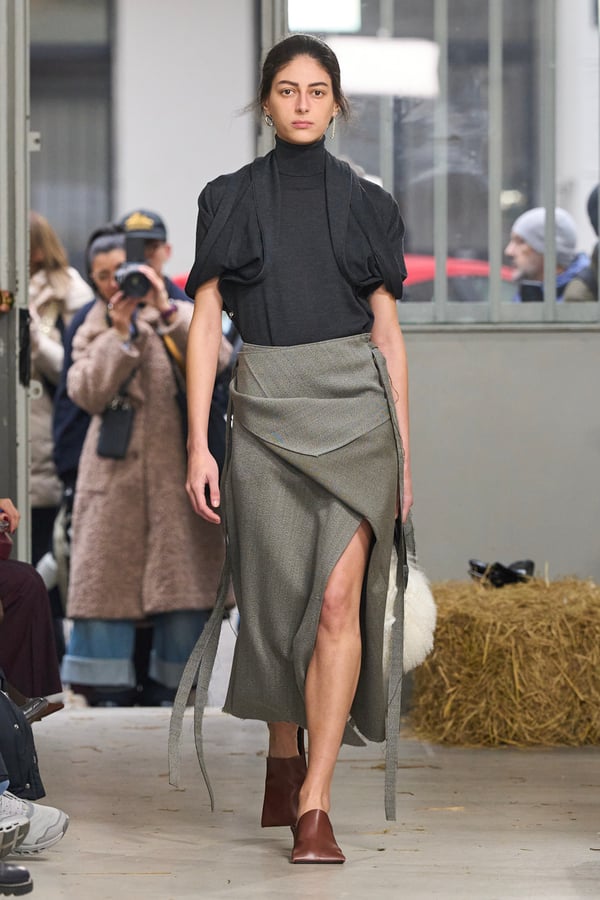 桑田悟史が手掛ける「セッチュウ(SETCHU)」が、ミラノの新オフィスにて2026年秋冬コレクションを発表した。今回はランウェイショーを行わず、デザイナー自らが来場者にクリエイションを解説するプレゼンテーション形式を採用。「ハウスウォーミング」を意図した空間で、衣服の構造と哲学が提示された。