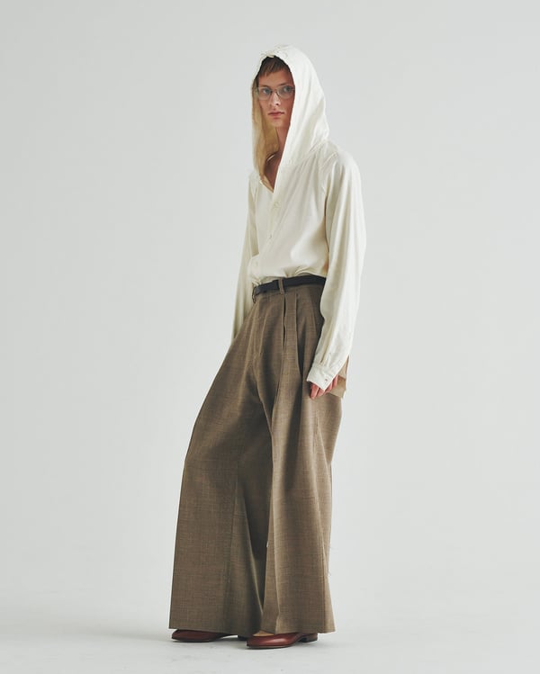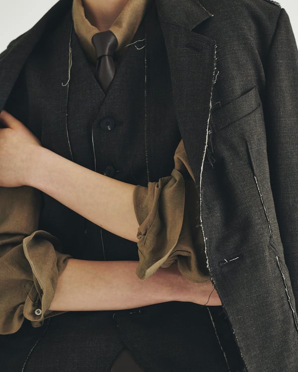 デザイナーの中村泰貴は、銀座のテーラーやデニムメーカーで縫製や生産のノウハウを培う。 2020年に「サブレーションズ」をスタート。ブランド名の由来は、哲学用語の“Aufheben(止揚)”。ブランドコンセプトの「相反する要素の融合」には、PR出身の金山とモノ作りに精通する中村という、正反対の2人の「知見の融合」という意味も込められている。