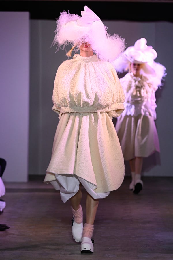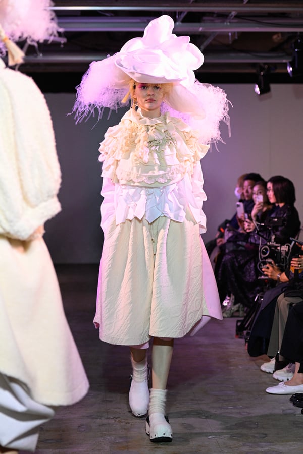 ラストパートでは照明が落ち、ショーは幻想的なムードへ。雲のように輪郭があいまいで、ふわふわとしたシルエットが浮かび上がり、「ABSTRACT SHAPE」というテーマを印象的に体現した。
