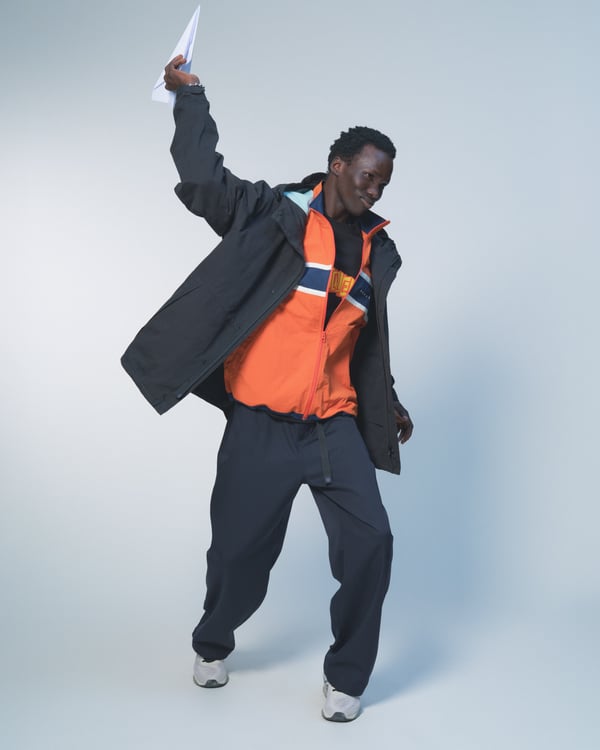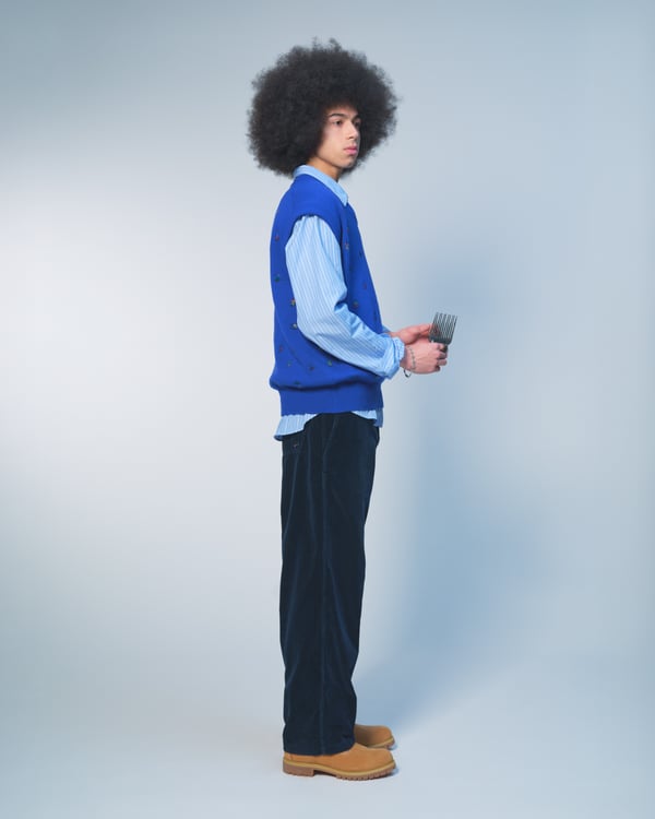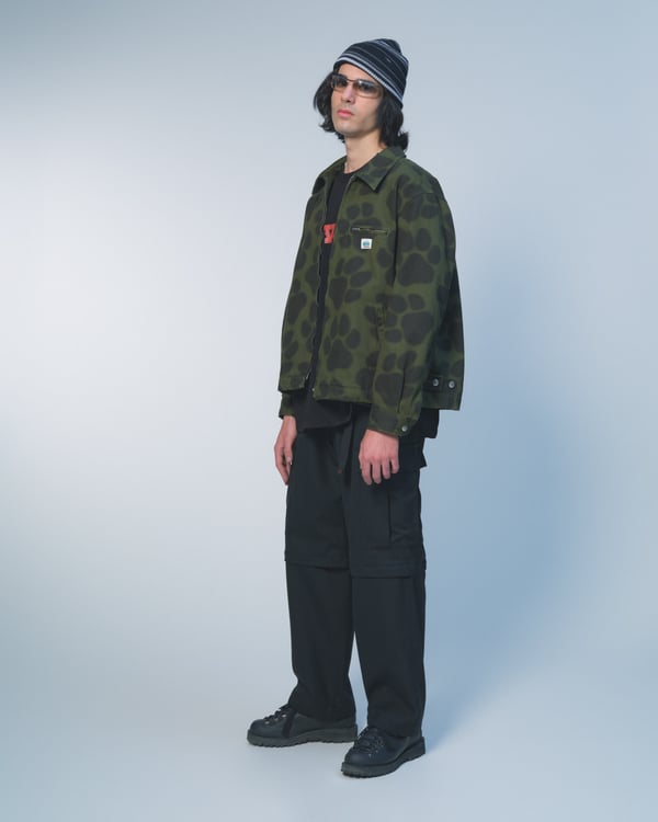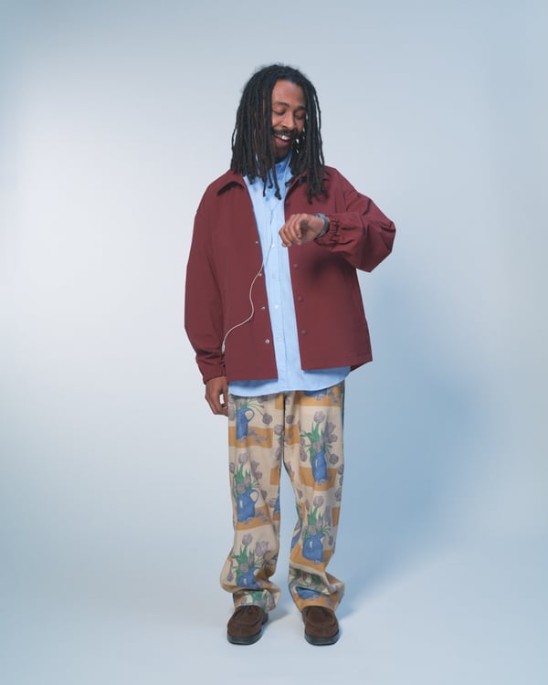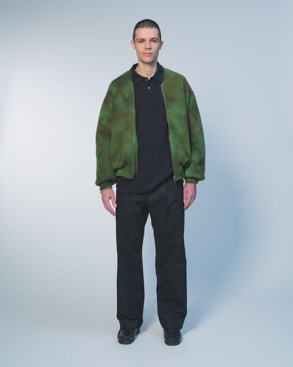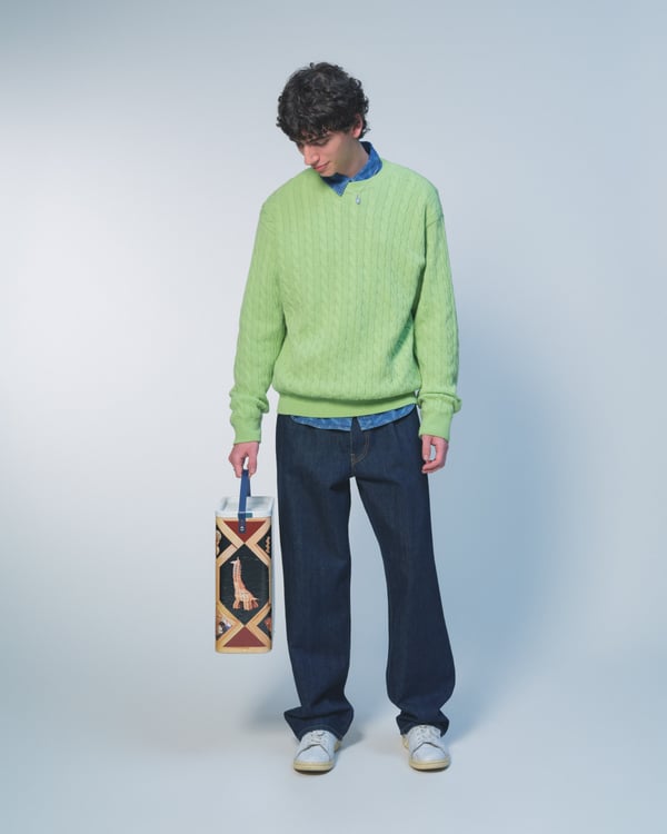 今季はモスグリーンやバーガンディといった深みのある色彩に、マリーゴールドやアイシーブルーがアクセントに。画家 Frans Everbagのチューリップ画などのモチーフを採用し、ダブルブレストのスーツやオーバーコートといったクラシックなテーラリングに、独自のひねりを加えた。また、カモフラージュ柄で再解釈した定番のニットボンバーや、実用的なシェルジャケット、充実したレザーグッズなど、都市生活から週末の旅までをシームレスに繋ぐラインナップを展開した。