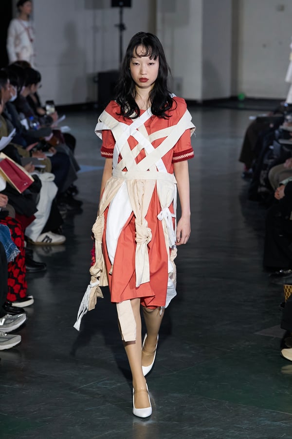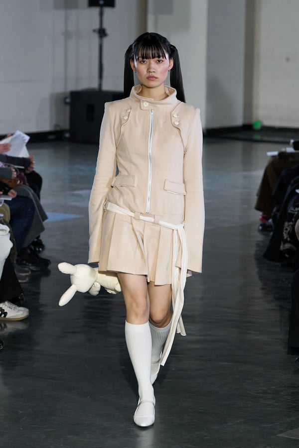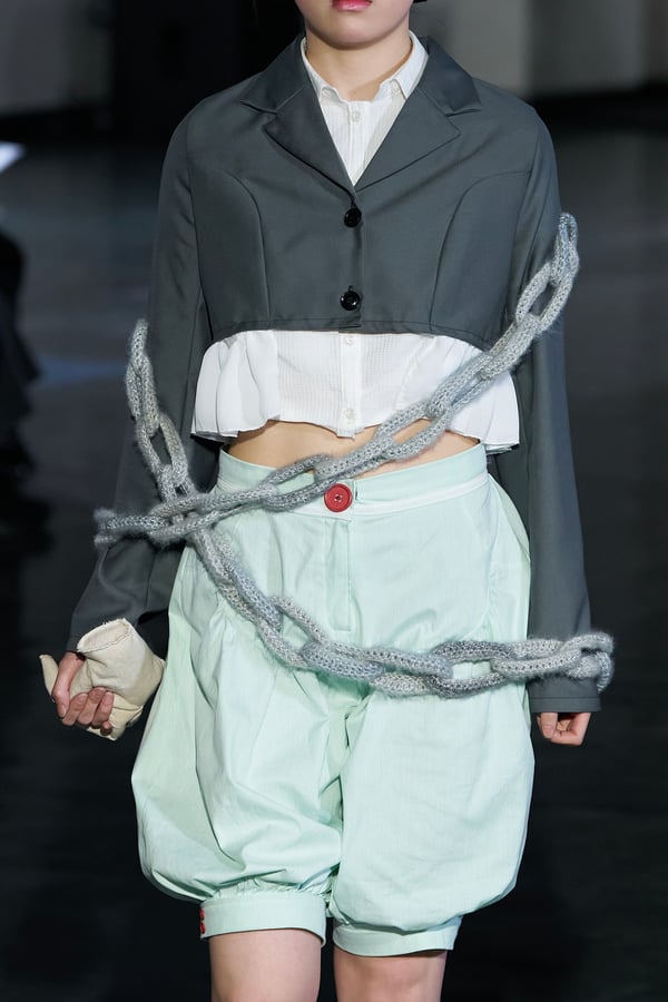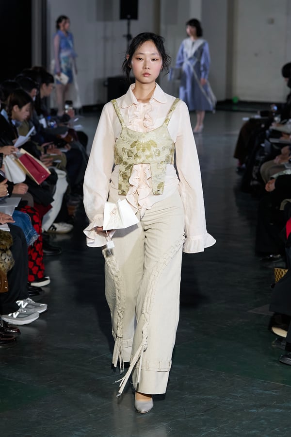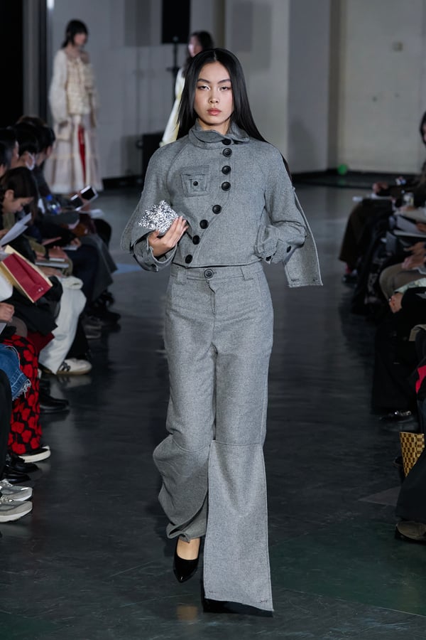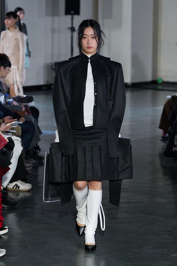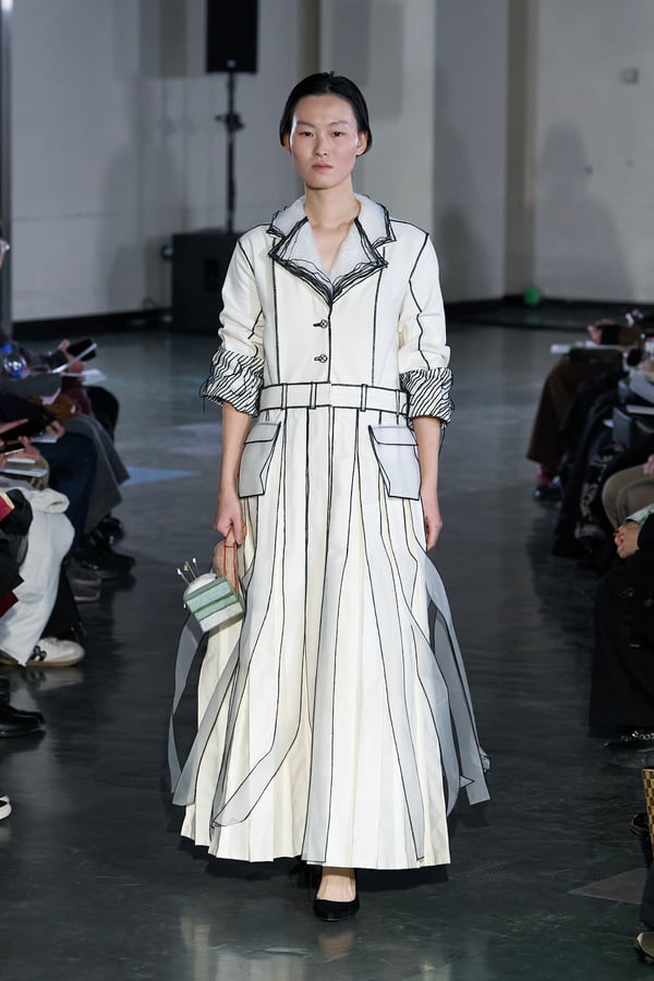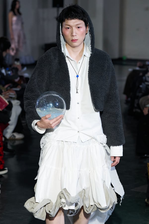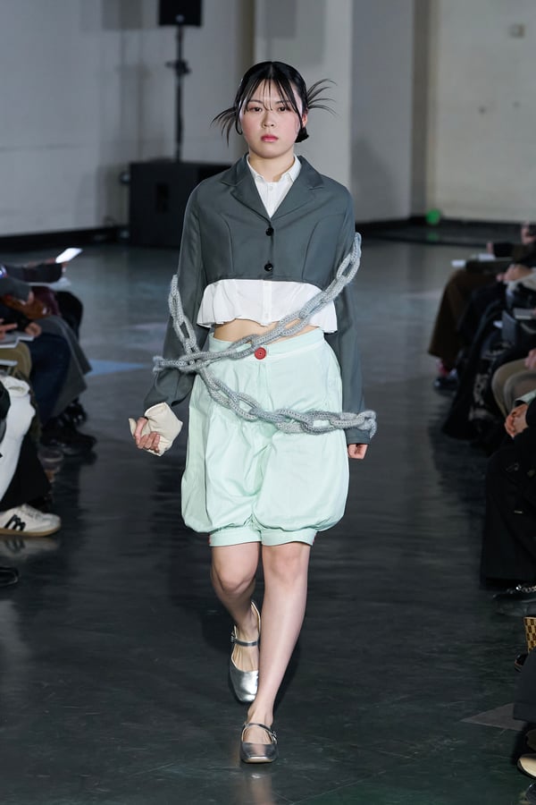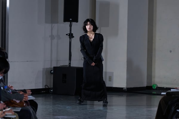 しかし、同研究会のスタンスは単なる「アンチ・トレンド」や「懐古主義」ではない。流行の速度自体は現代社会の不可避な前提として受け入れつつ、それに受動的に飲み込まれる個人の態度を問い直す。「全てに従うのでもなく、また全てを拒絶するのでもなく、流れの中に立ちながら、それと冷静に対峙すること」。この哲学が、全29体のルックを通して表現された。