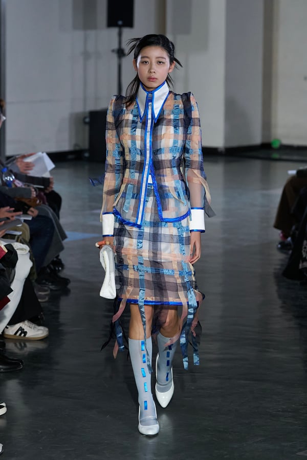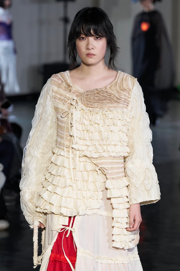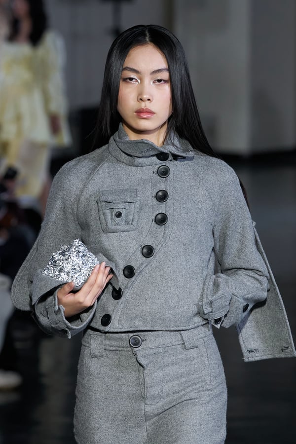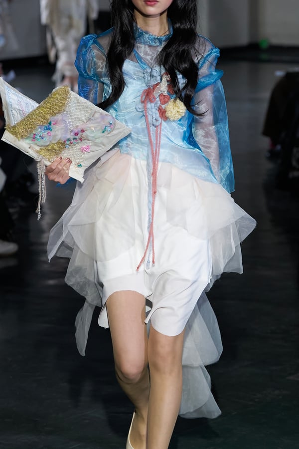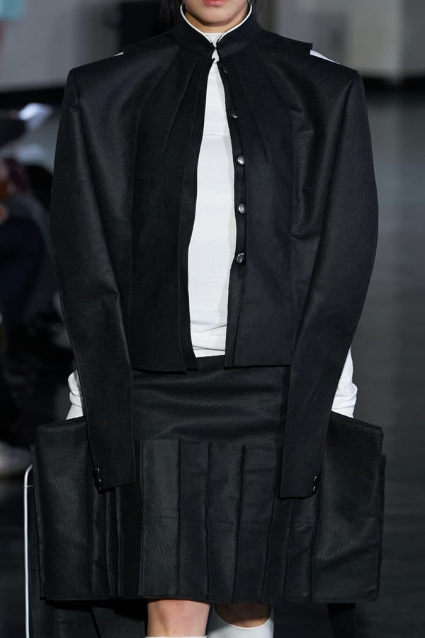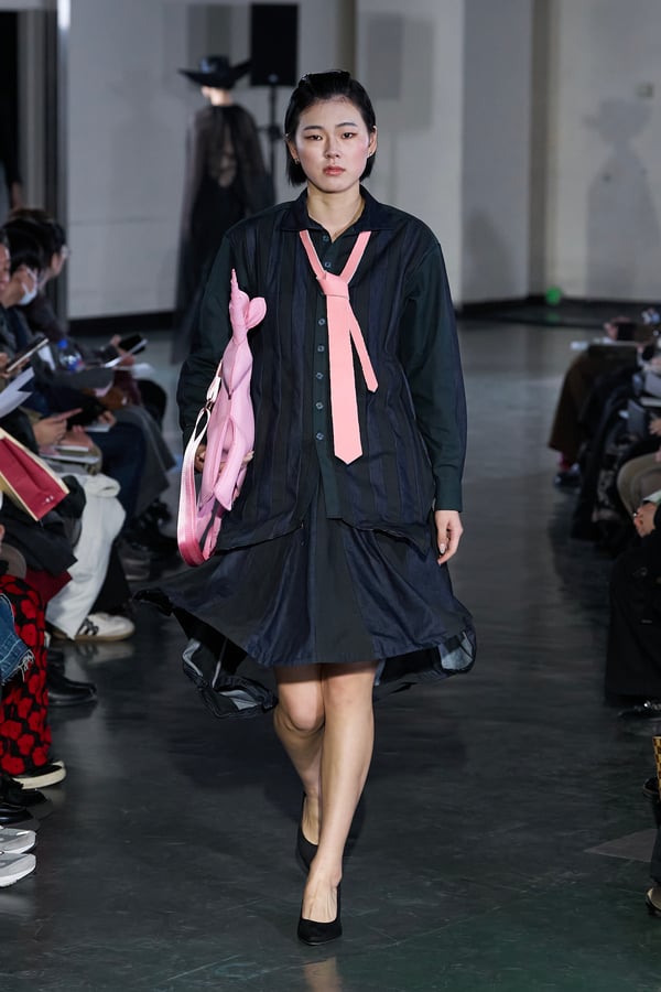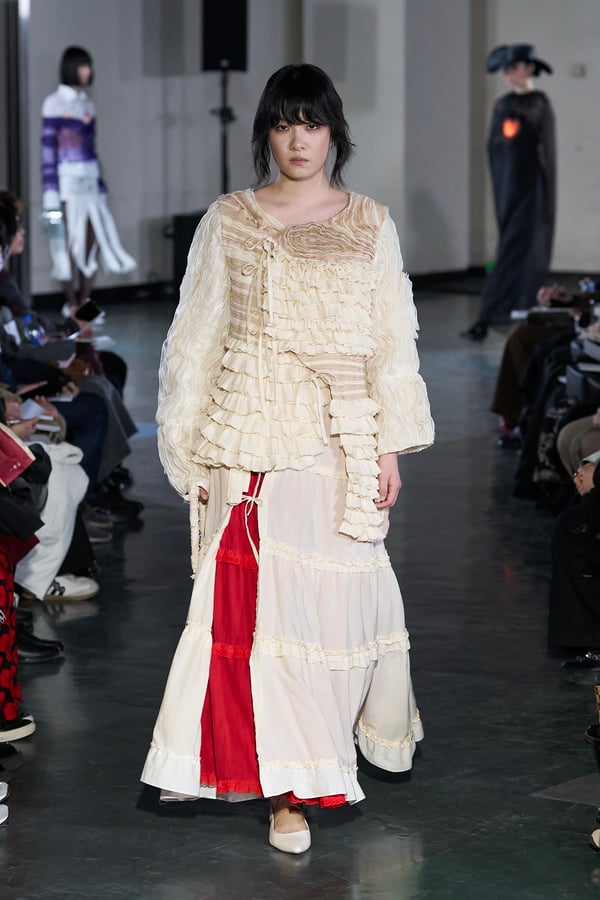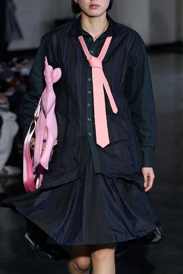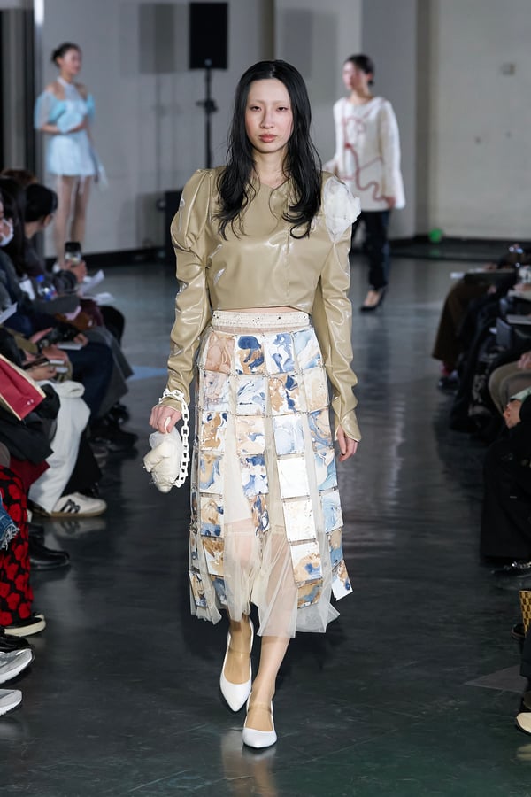 しかし、同研究会のスタンスは単なる「アンチ・トレンド」や「懐古主義」ではない。流行の速度自体は現代社会の不可避な前提として受け入れつつ、それに受動的に飲み込まれる個人の態度を問い直す。「全てに従うのでもなく、また全てを拒絶するのでもなく、流れの中に立ちながら、それと冷静に対峙すること」。この哲学が、全29体のルックを通して表現された。
