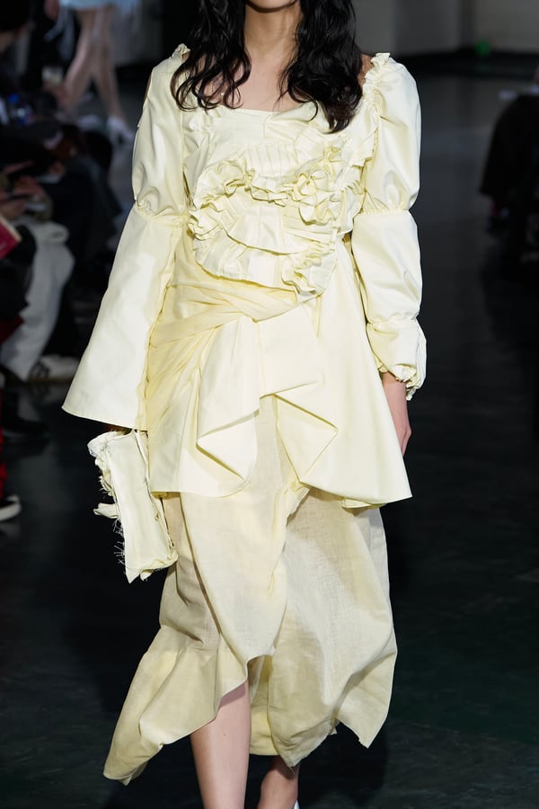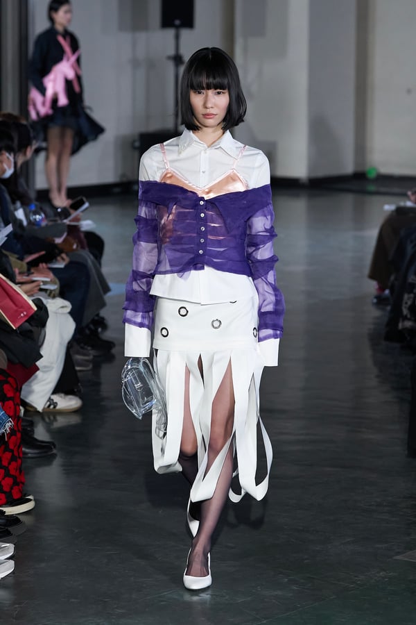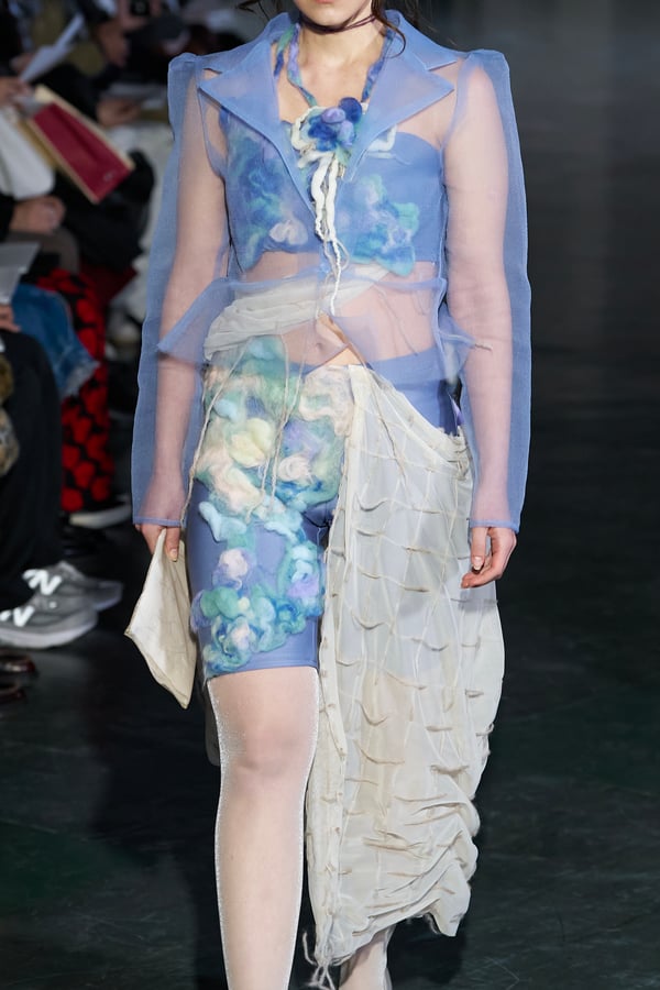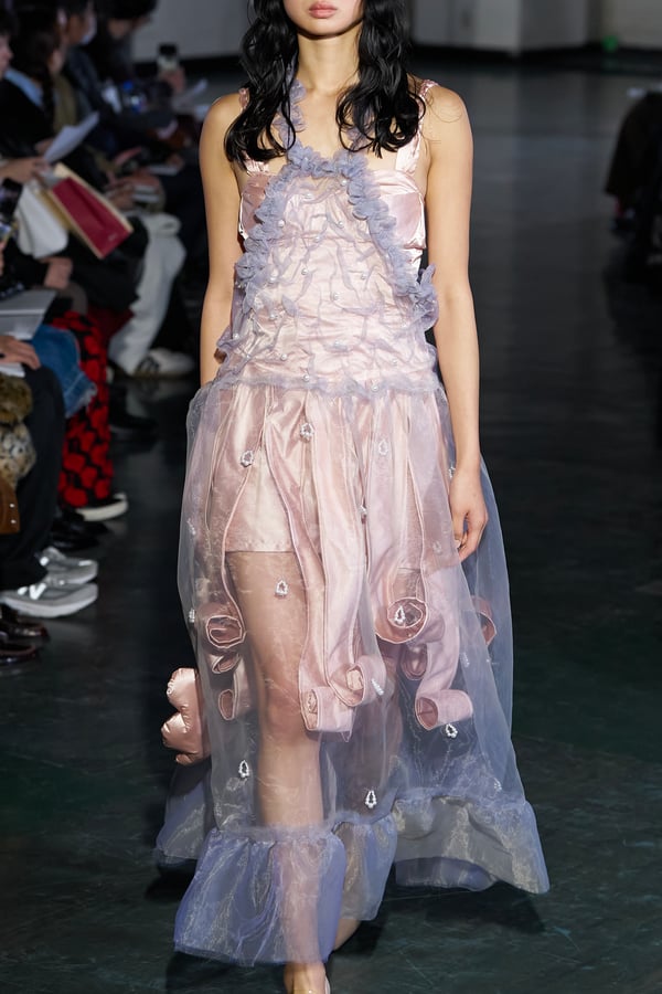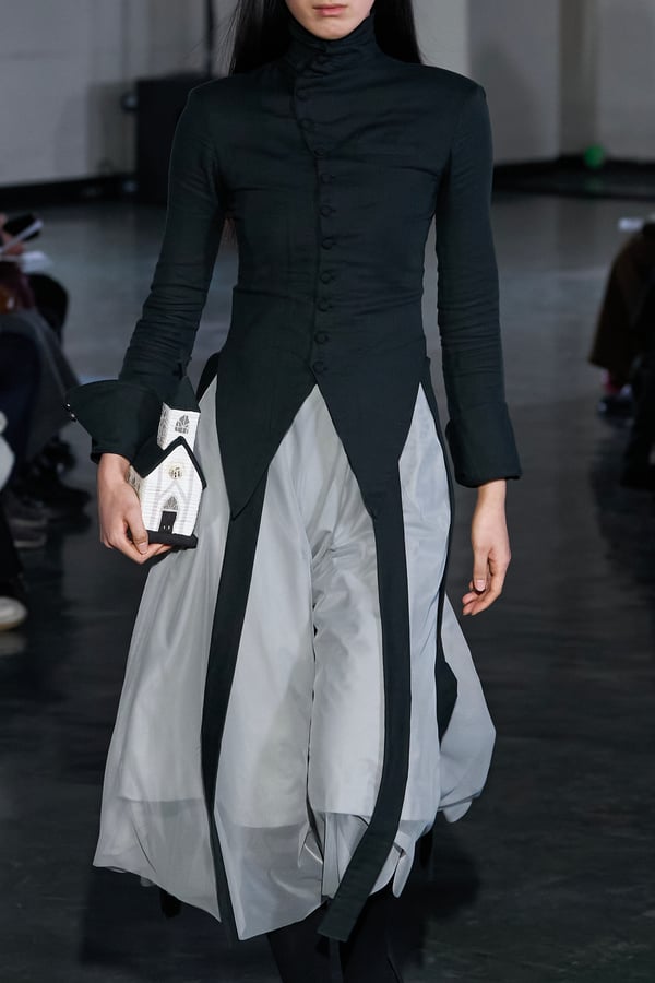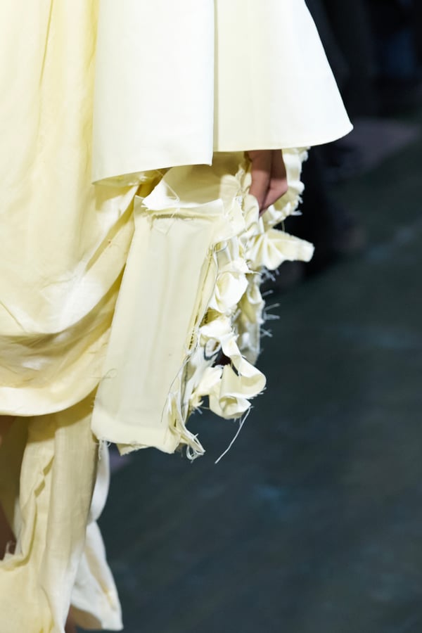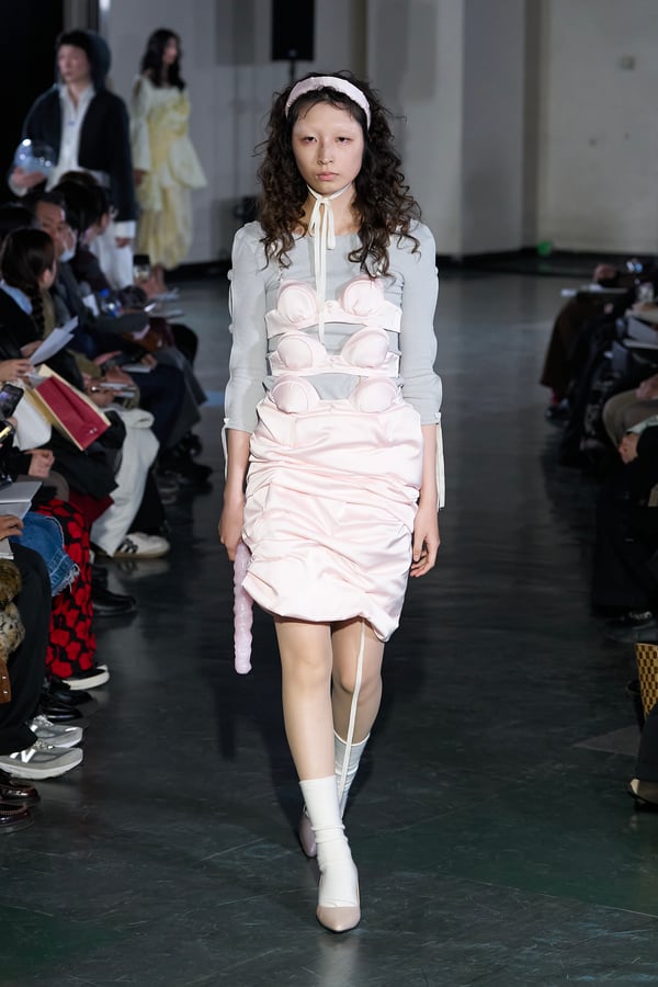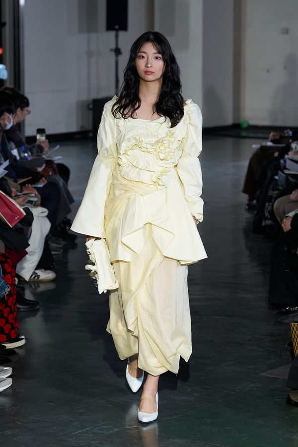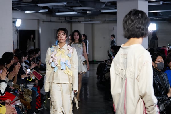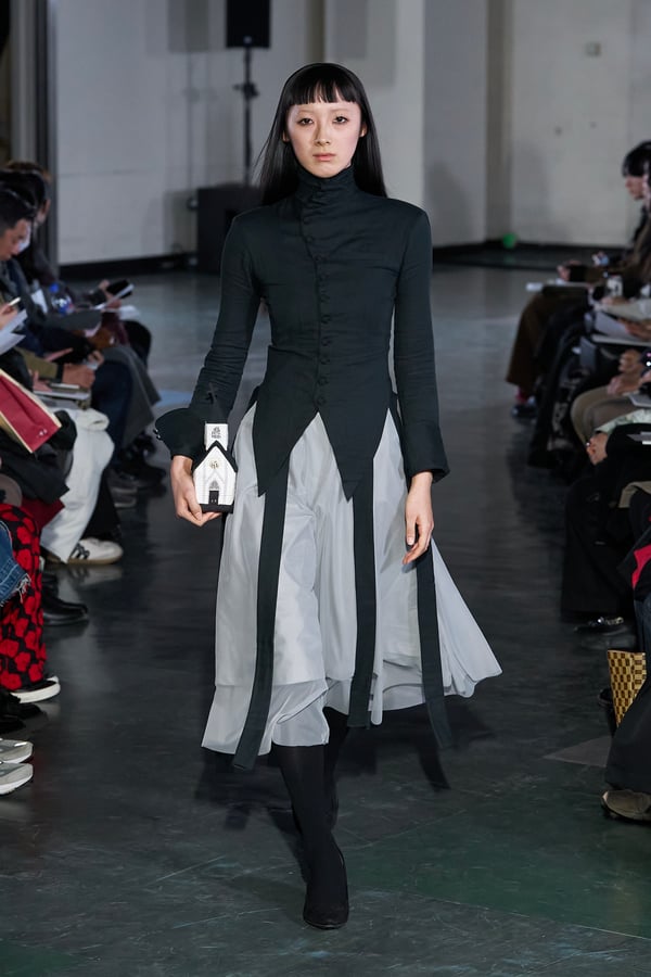 ショーの根底に流れるのは、SNSの発達とファストファッションの普及によって、かつてない速度で加速する流行サイクルへの危機感。配布されたステートメントには、「変化の速さに無自覚なまま翻弄されてしまうとき、私たちは速度の奔流に飲み込まれるようにして、気づかぬうちに大切なものを失ってしまうかもしれない」という警鐘が記されていた。