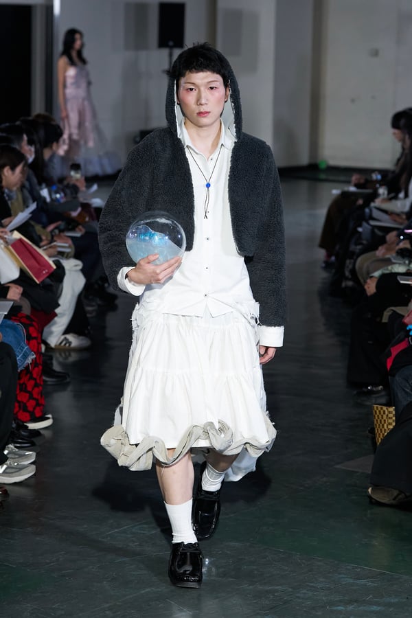 「早稲田大学繊維研究会」が、2025年度のファッションショーを東京・千代田区にある科学技術館で開催した。テーマは「それでも離さずにいて」。