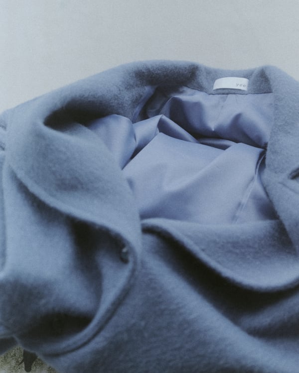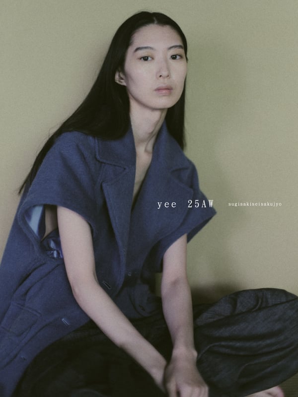 デザイナー杉崎悟とテキスタイルデザイナー杉崎愛が手掛けるブランド「イィ(yee)」が発表した2025年秋冬コレクション。テーマは「なにより」。