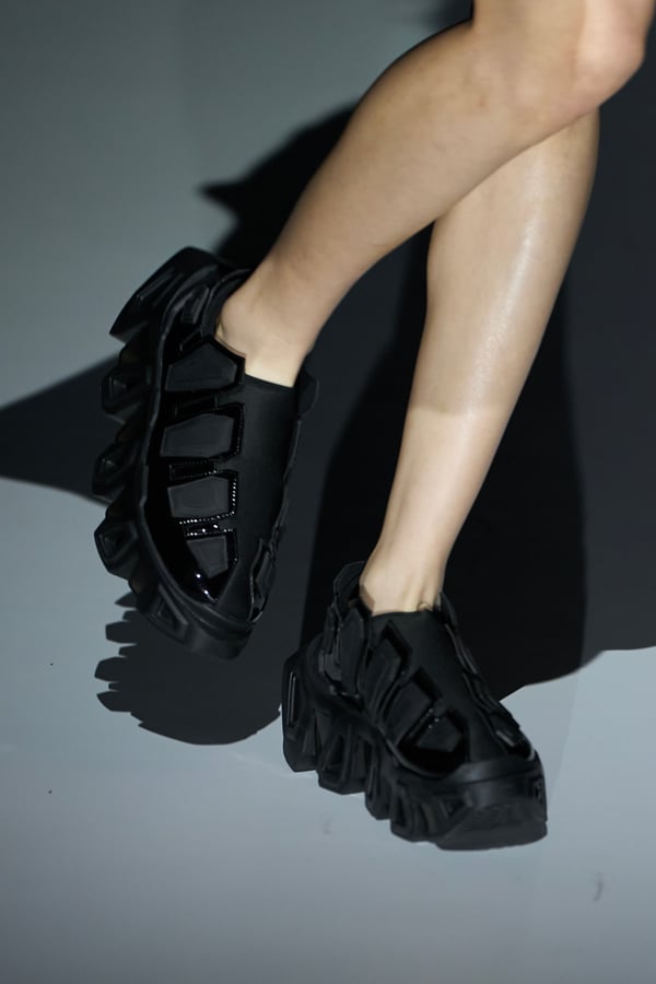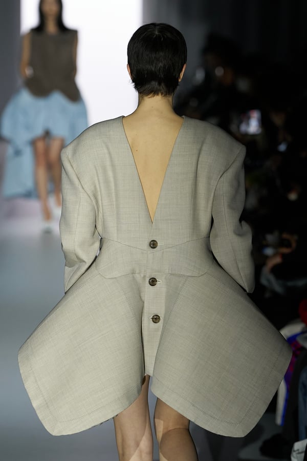コレクションのタイトルは、理想宮を意味する「Ideal Palace」。フランスの郵便配達員が、自身がつまずいた石の形に魅了されたことをきっかけに33年かけて独力で築いた石の宮殿「シュヴァルの理想宮」から着想を得て、自身のファッションとの出会いや創作への姿勢を重ね合わせたという大野。今季はその初期衝動に立ち返り、かつて自身が憧れた「得体の知れない知性」としてのファッションを表現することを目指したという。