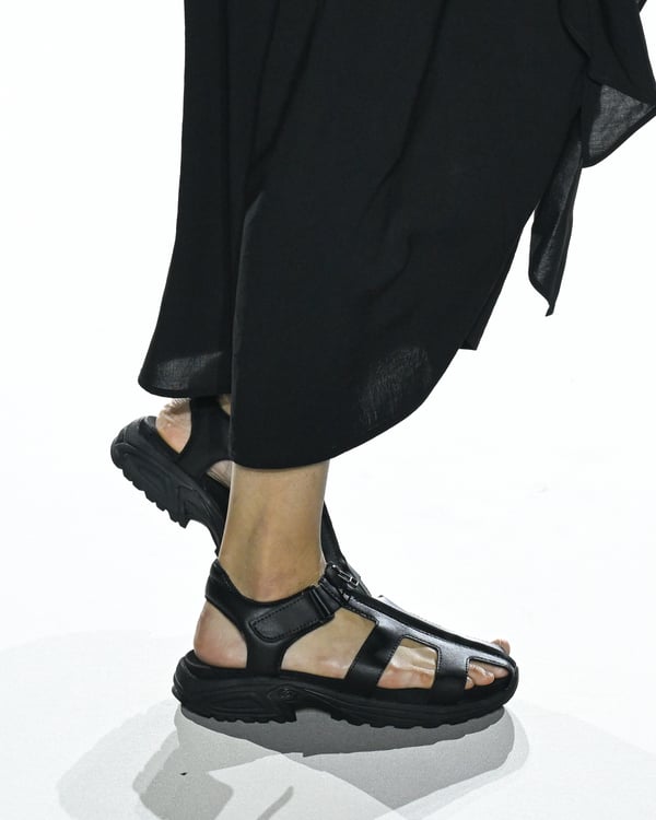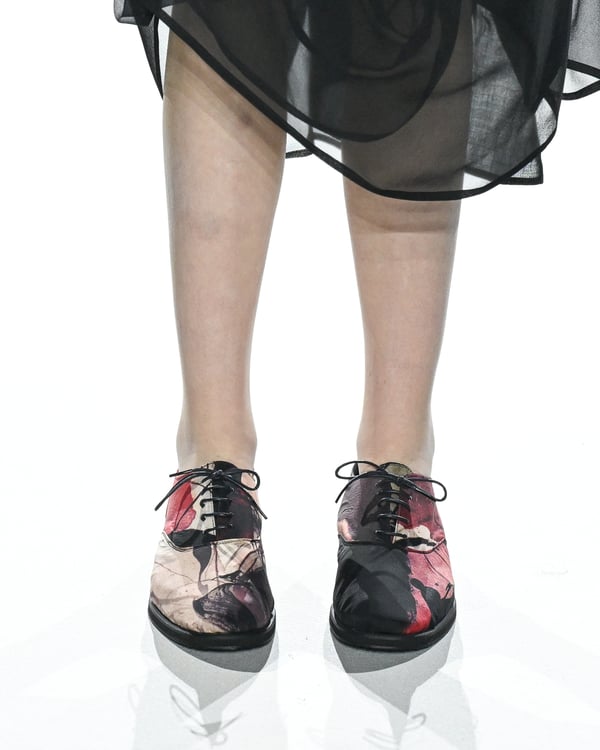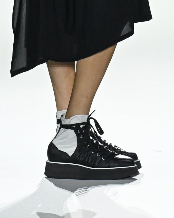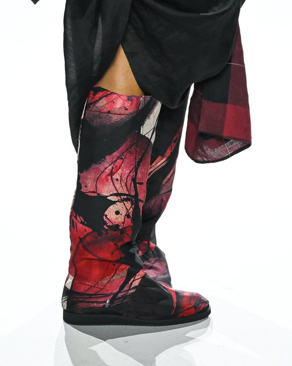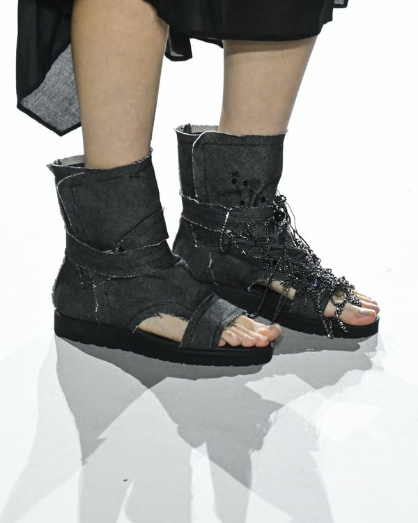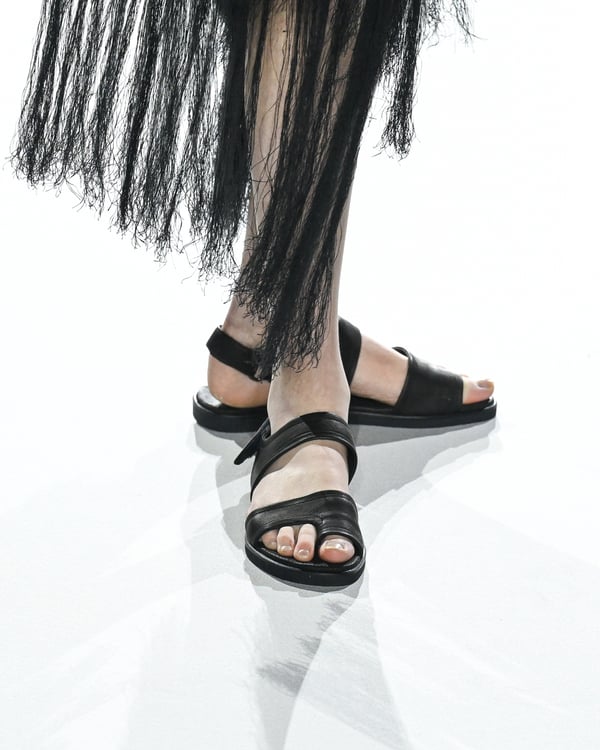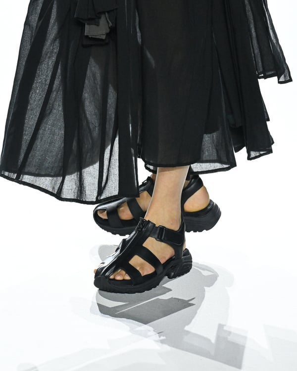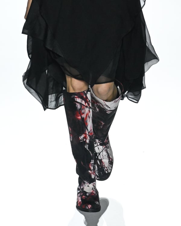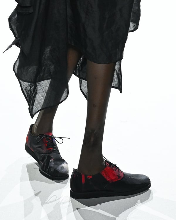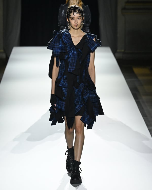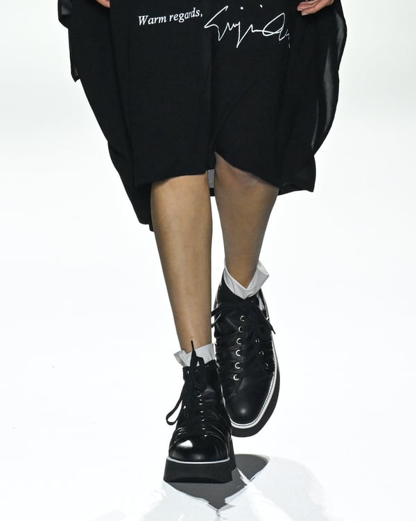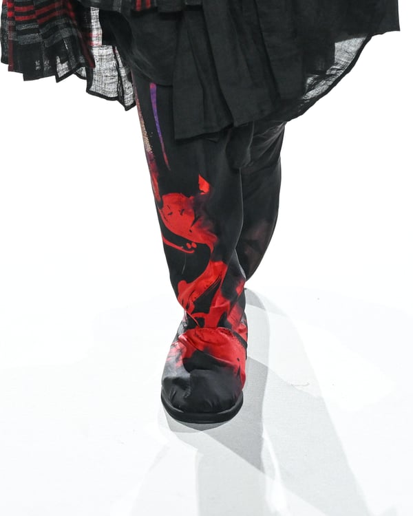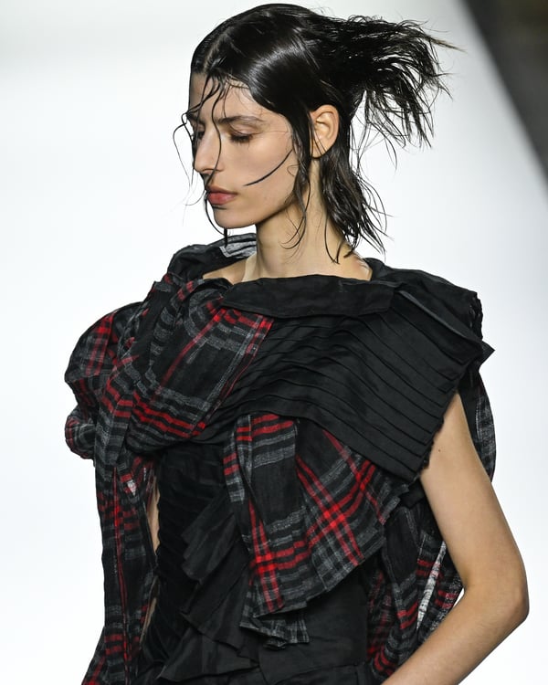 「ヨウジヤマモト(Yohji Yamamoto)」が、パリ市庁舎で2026年春夏コレクションを発表した。書道を思わせる黒地に白の大胆なプリントが施されたドレスにはじまり、織地から糸を引き抜いてフリンジ状にしたセットアップ、テキスタイルを捻ったり編み込むなどして形作ったドレスといった、彫刻的なシルエットを提案。中盤の白の3体は、透き通るほど極薄の素材を幾重にも重ねて、繊細な造形美を見せた。