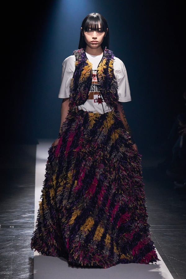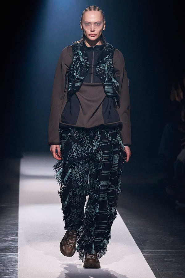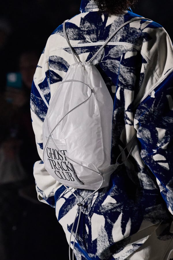 また、サンダルと民族衣装で山道を走るメキシコの先住民族 タラウマラ族から着想を得たアイテムとして、トライバルパターンを用いたハーネスやカラフルなジャカードのマキシスカートが登場。そのほか、架空のランニングチーム「GOHST RUN CLUB」のロゴを配し、近年急成長するランカルチャーにフォーカスしたアイテムを披露した。