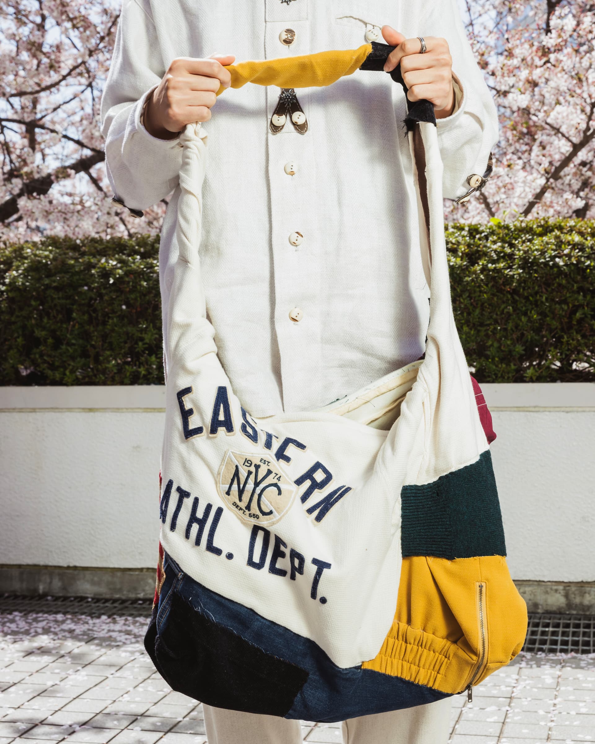 徹夜で作った自作のリメイクバックを際立たせる白のチロリアンセットアップ