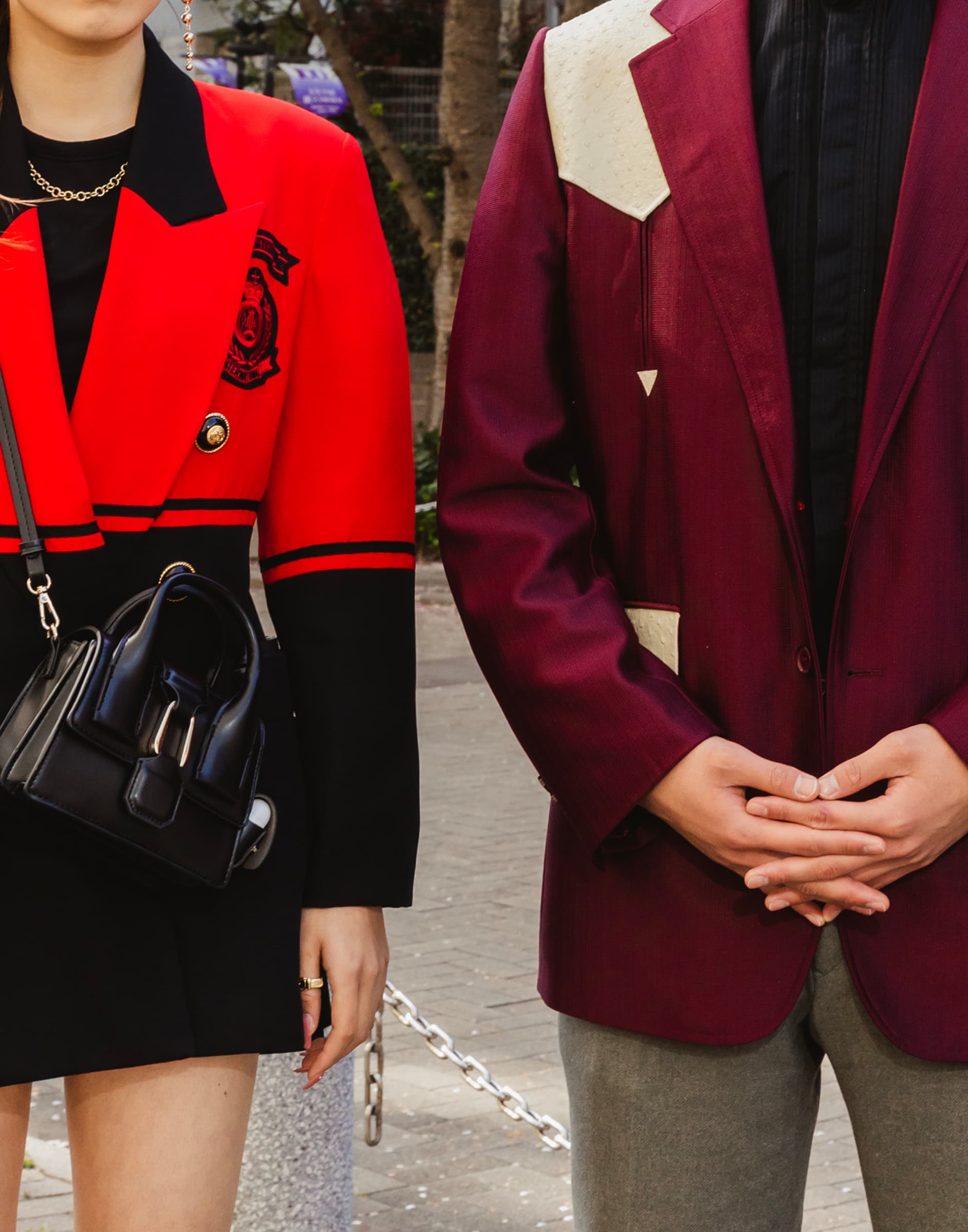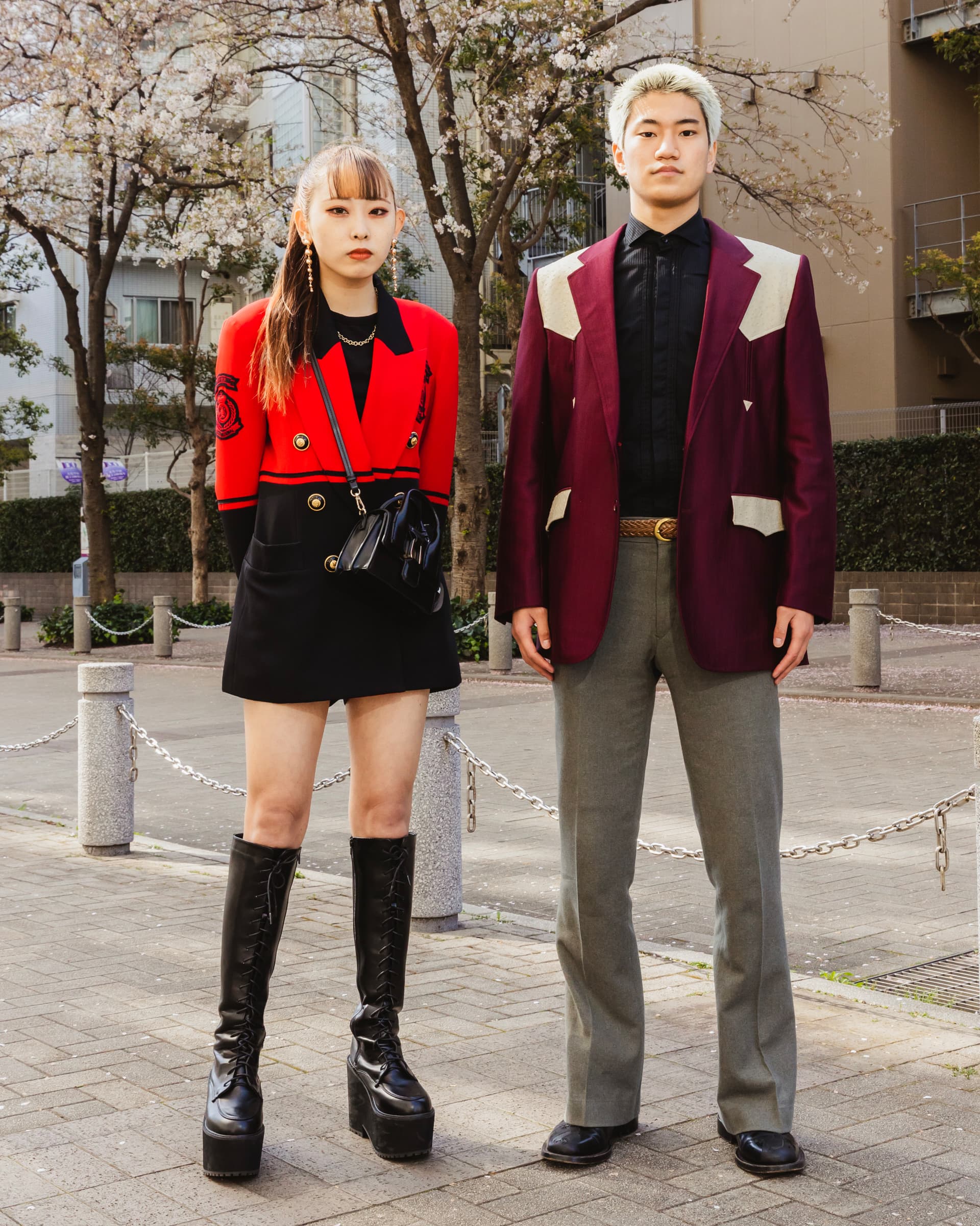 (左)ジャケット・パンツ・シューズ:町田の古着屋で購入/バッグ:ZARA